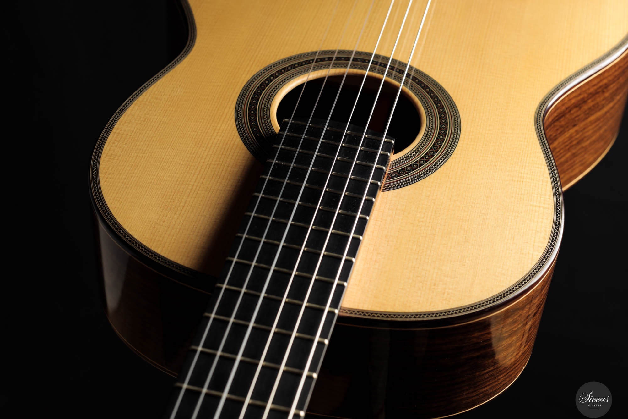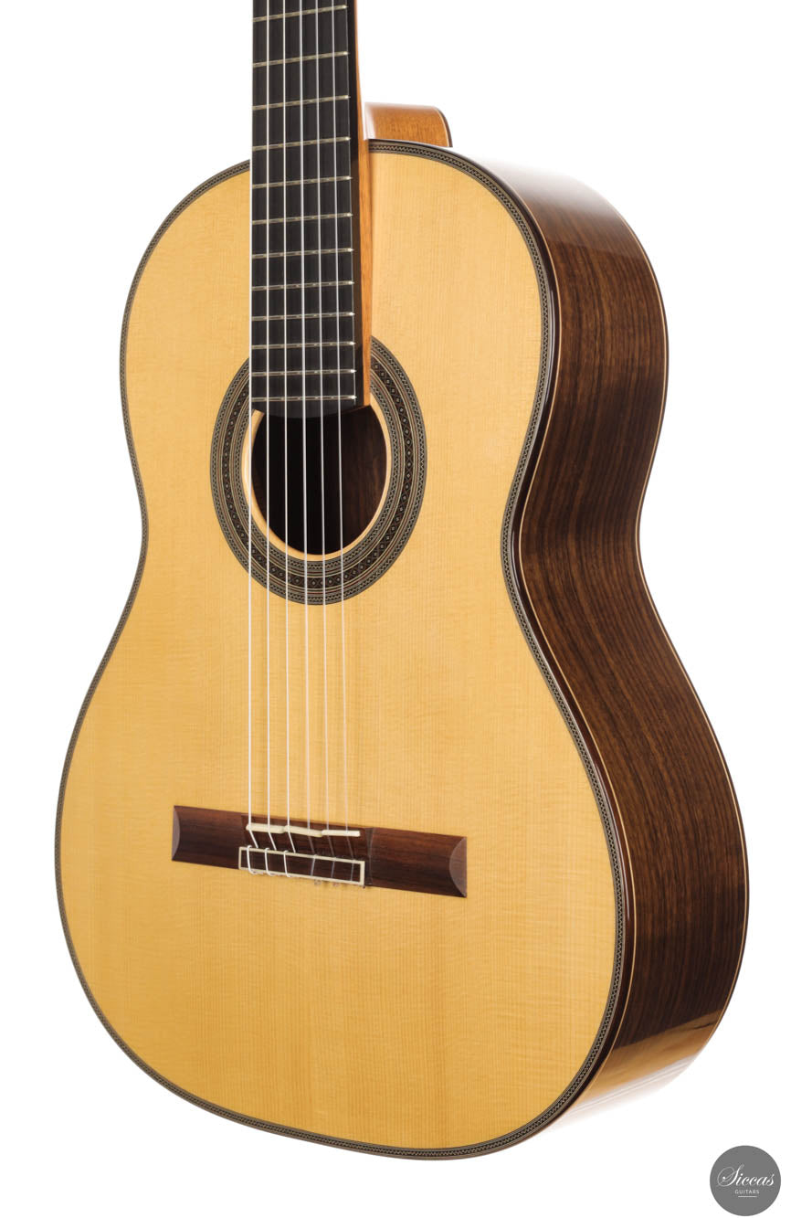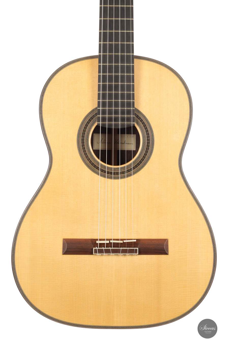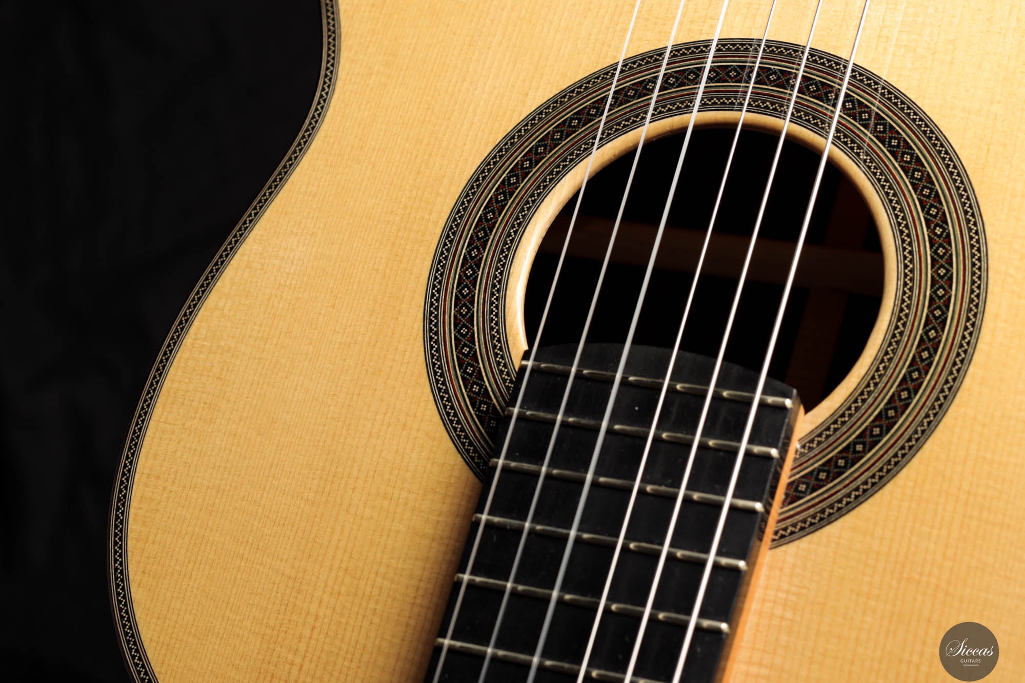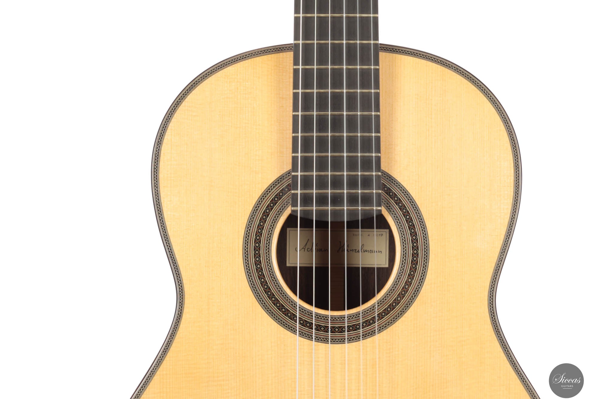 Adrian Heinzelmann is one of his generation’s most talented German luthiers. His guitars are of great finesse with an aesthetic that combines the Spanish tradition and the modernity for which German luthiers are universally recognized. His guitars are played by many brilliant teachers, soloists, and students and have already proven themselves in major European concert halls. His craftsmanship and the way Adrian designs his soundboards are unique. Many narrow parallel trenches are carved inside the cedar soundboard to optimize its weight and flexibility. Combined with lightweight lattice bracing, this technique gives an instrument of great sensitivity and impressive volume. Playing Adrian Heinzelmann’s guitar gives confidence and pushes the guitarist beyond his limits.