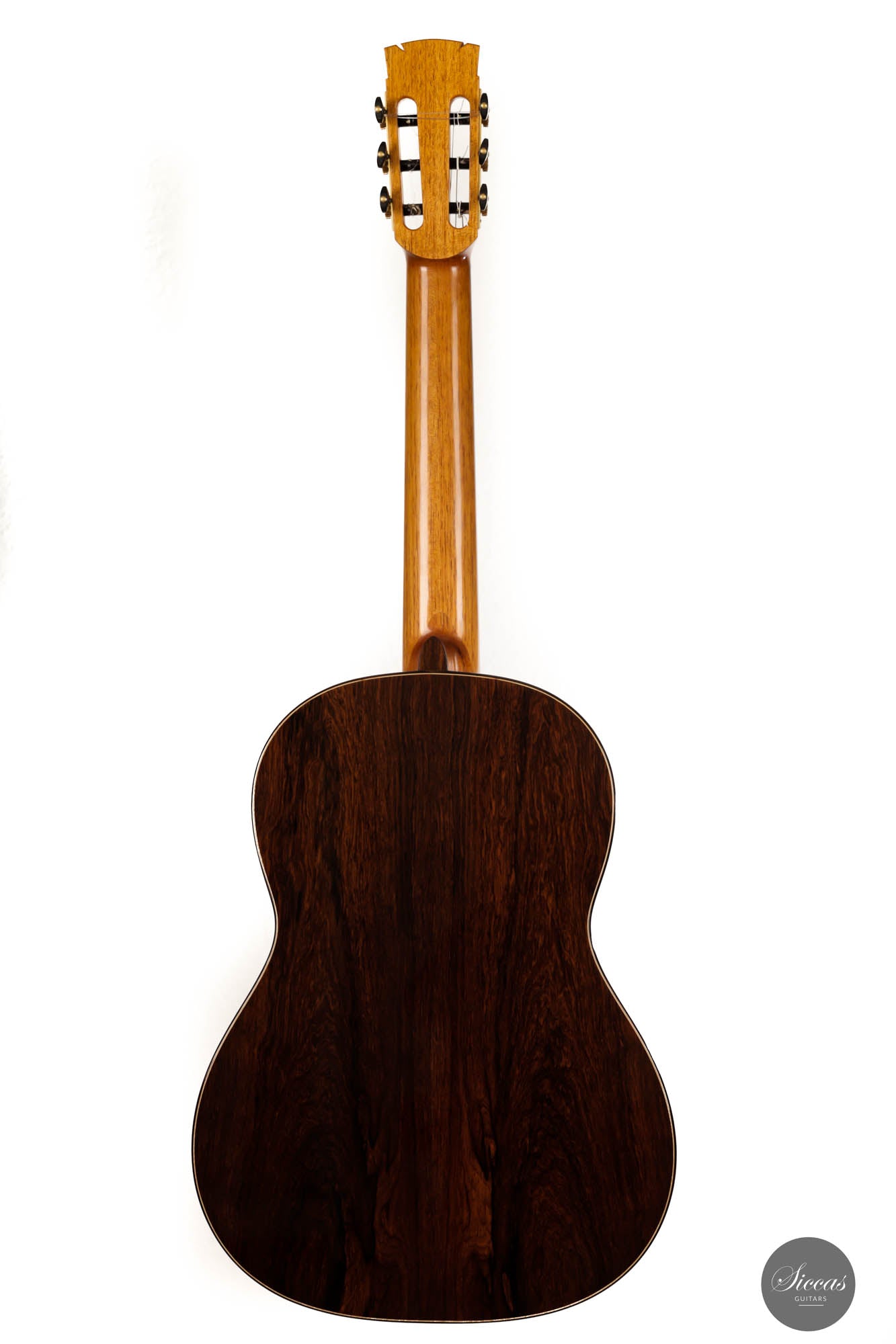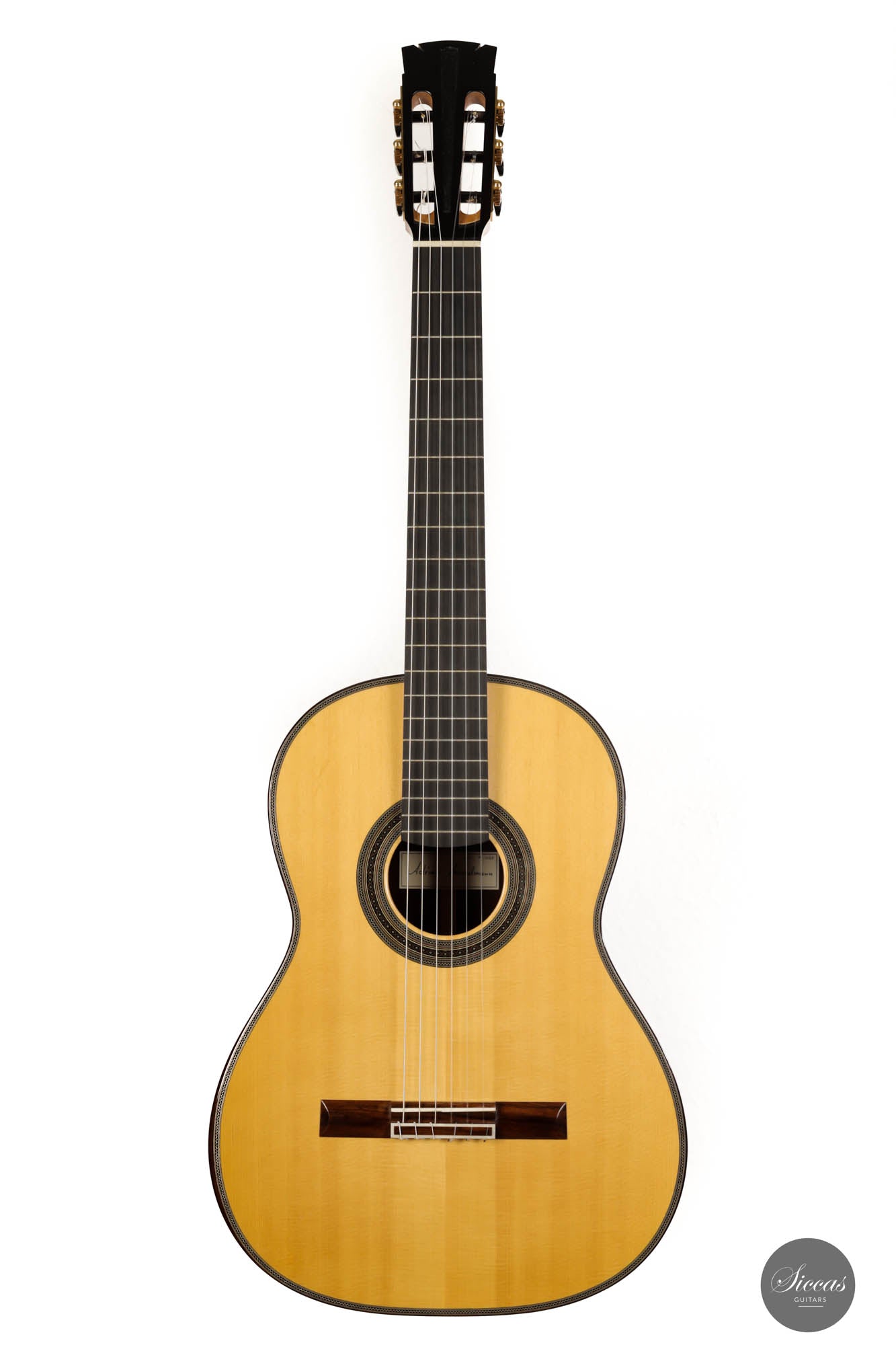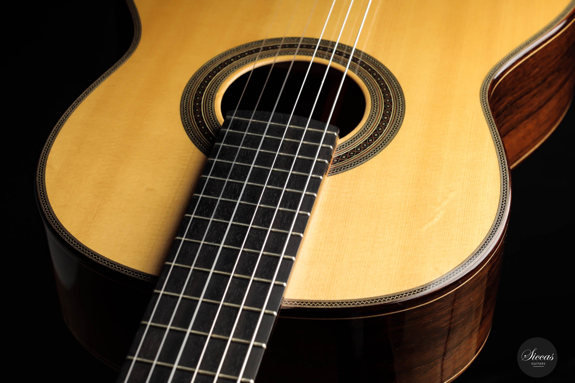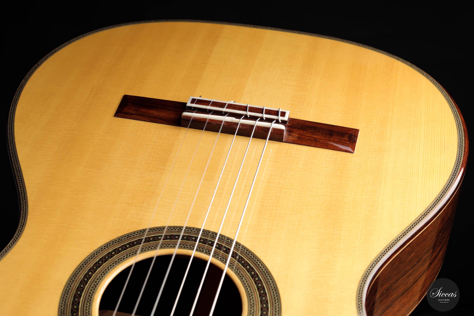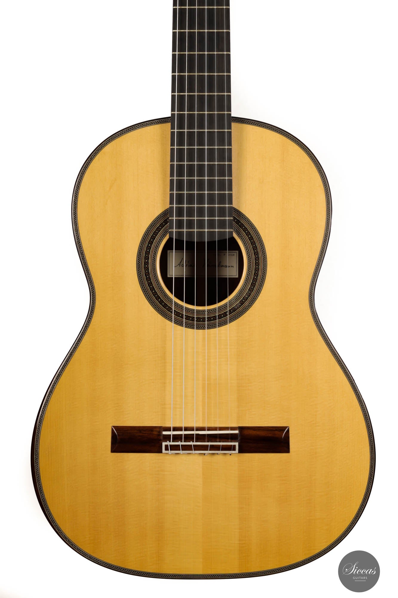Adrian’s guitar is very a versatile concert instrument of the highest grade. Every aspect of this guitar is simply impressive, both tonally and aesthetically. Great care was taken in the selection of the spruce top, as well as the choice of stunning Madagascar rosewood back and sides. Its craftsmanship perfectly reflects the luthier’s outstanding skills as a craftsman. This guitar has an excellent price-performance ratio and will also meet the needs of guitarists of any level. As a pre-loved instrument, it is in excellent condition with only superficial playing wear. Furthermore, this Heinzelmann offers excellent playability due to its great neck shape. As a result, it is a very comfortable instrument for a long practice session or concert program.