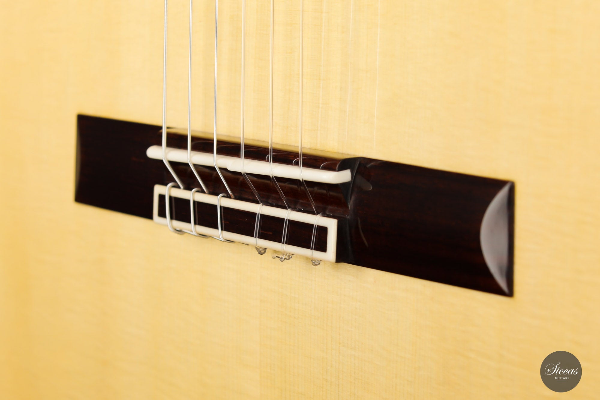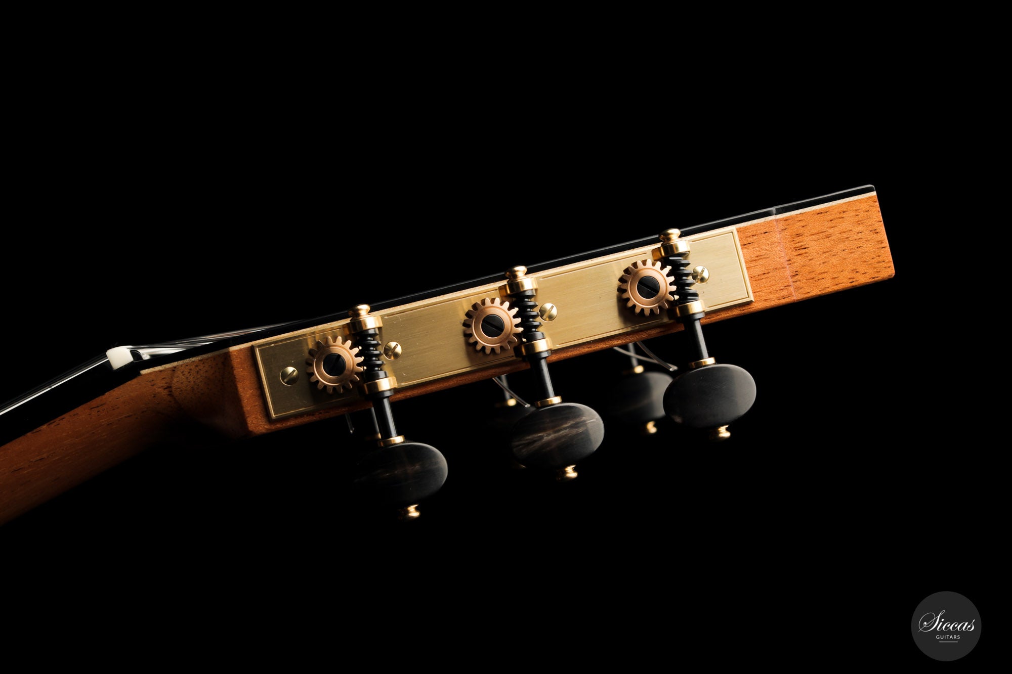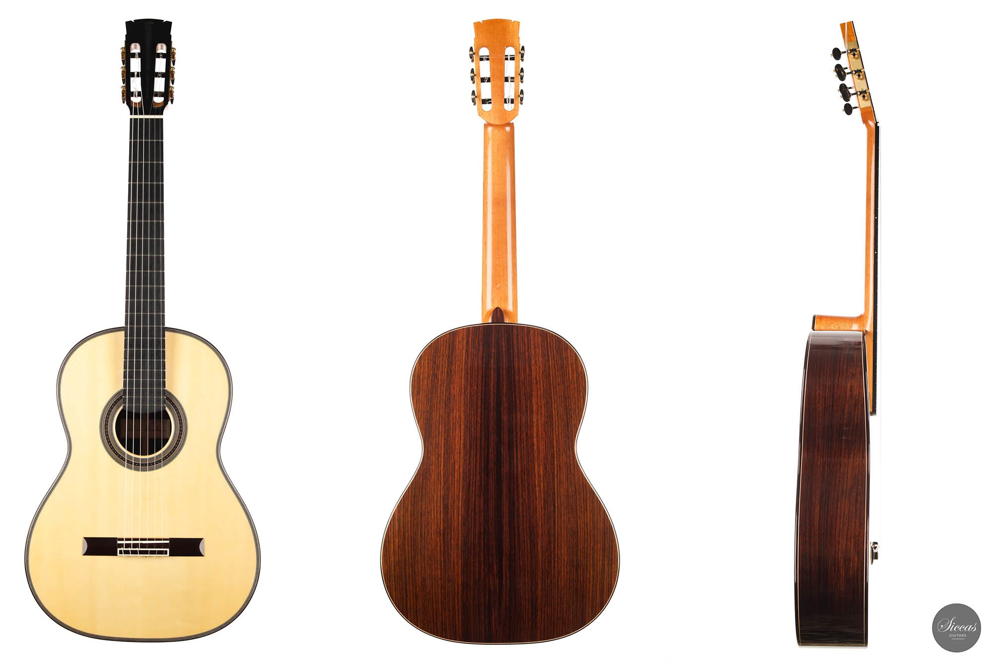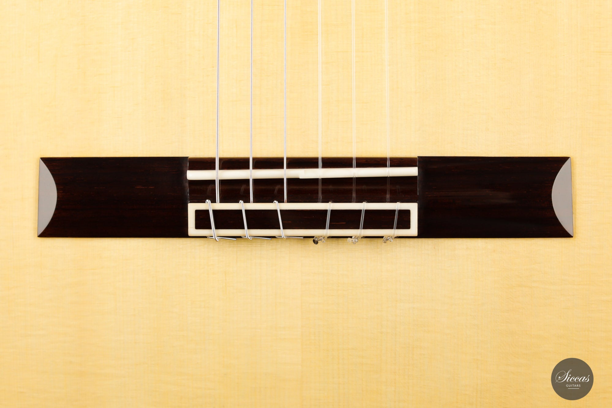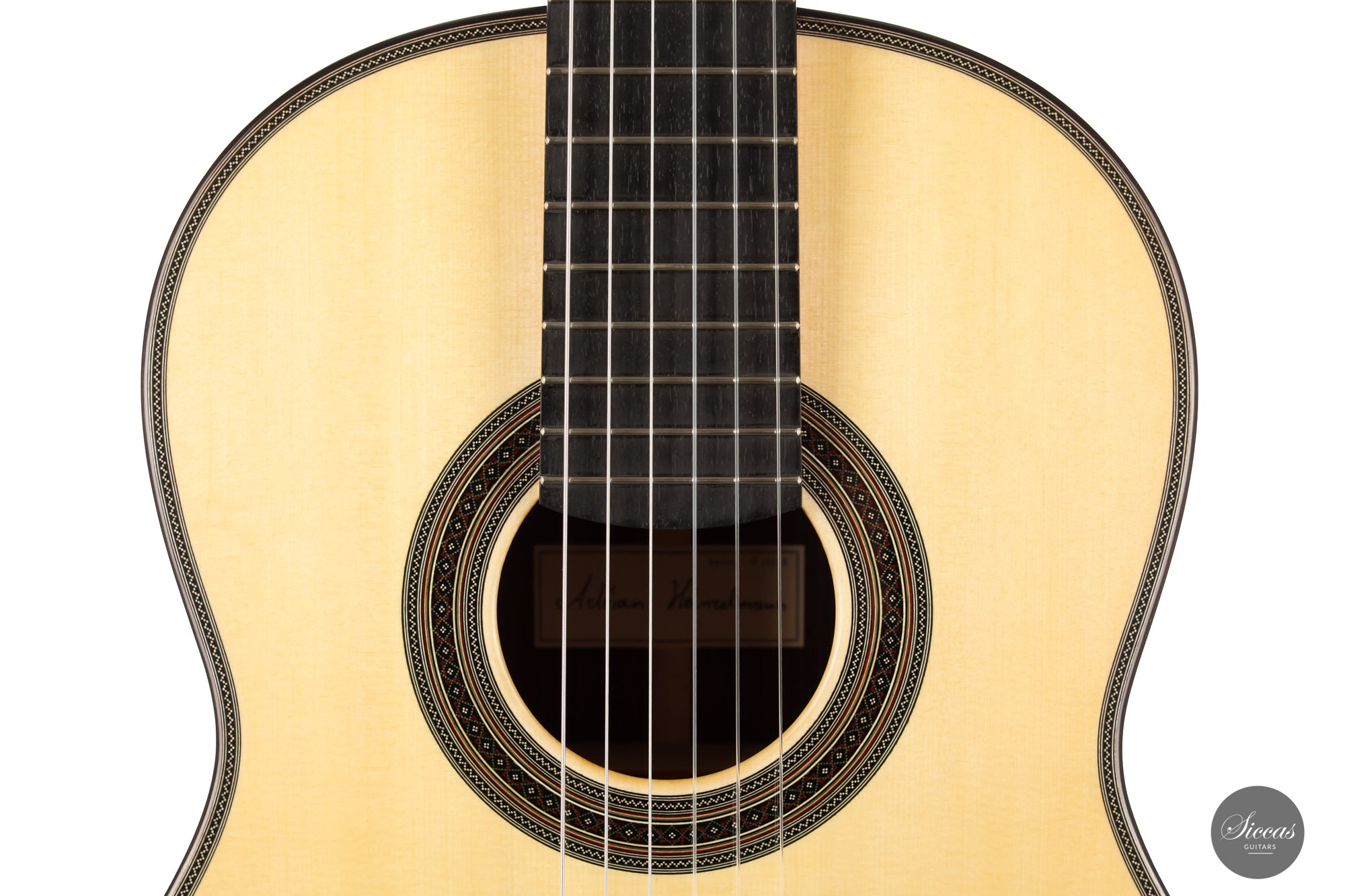 His craftsmanship and the way Adrian Heinzelmann designs his soundboards are unique. Many narrow parallel trenches are carved in the inside of the cedar soundboard to optimize its weight and flexibility. This technique, combined with a lightweight lattice bracing, gives an instrument of great sensitivity and impressive volume. Playing Adrian Heinzelmann’s guitar gives a feeling of confidence and pushes the guitarist to go beyond his limits.