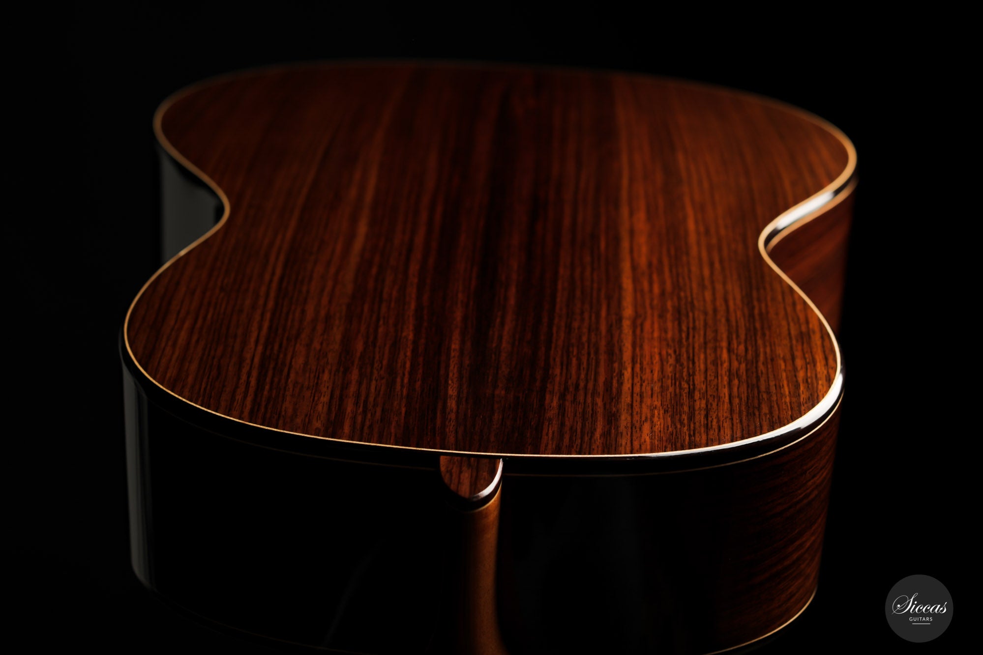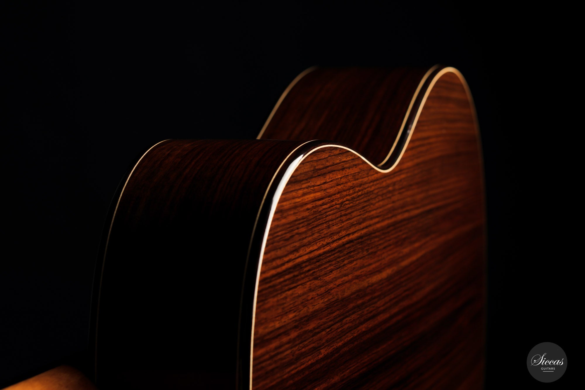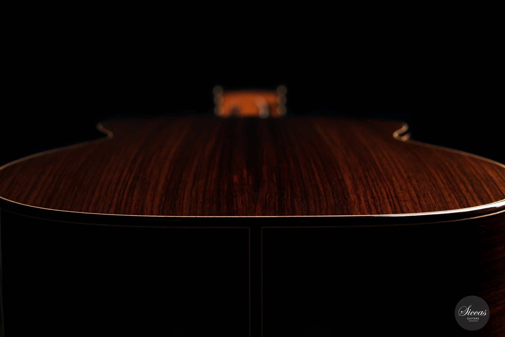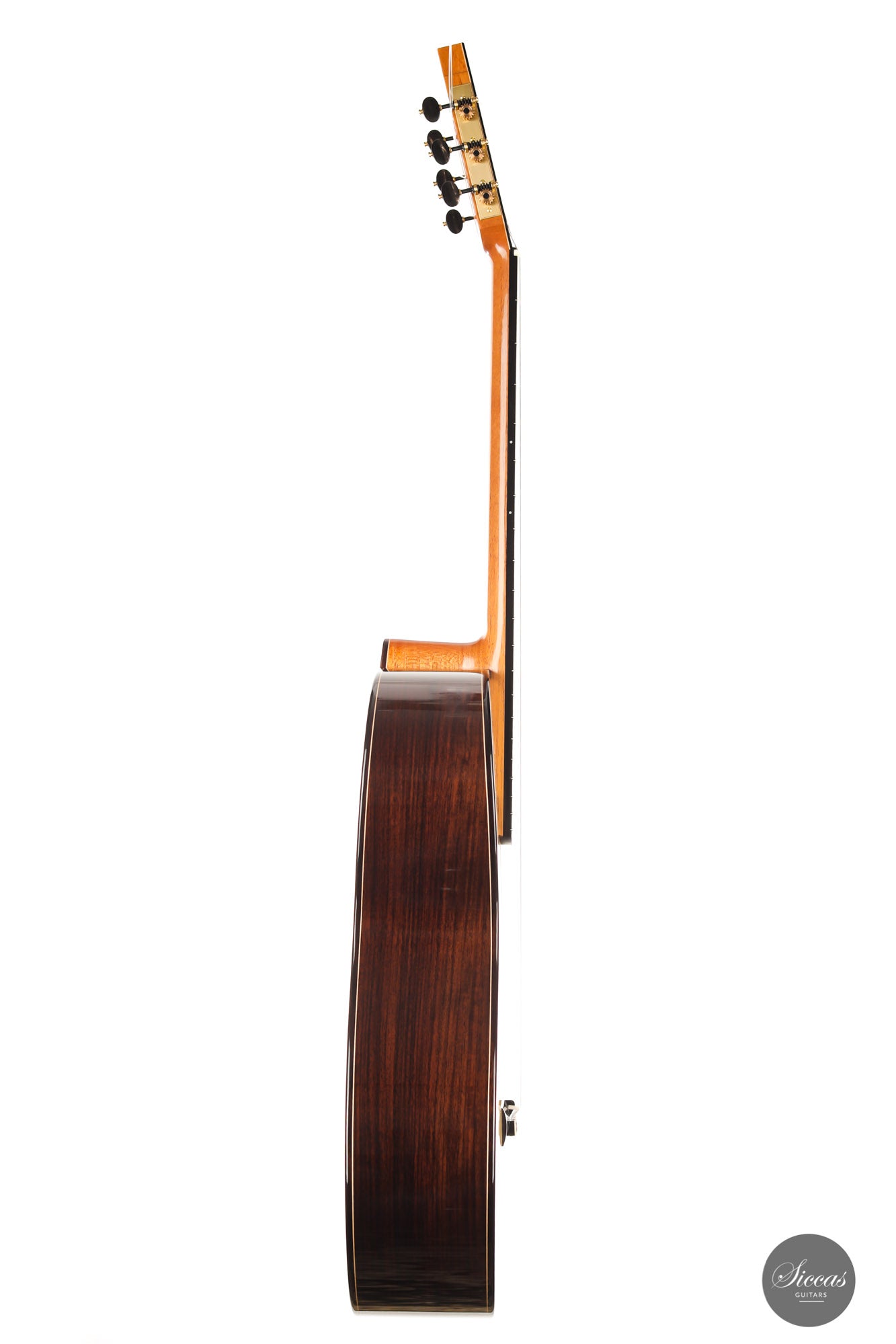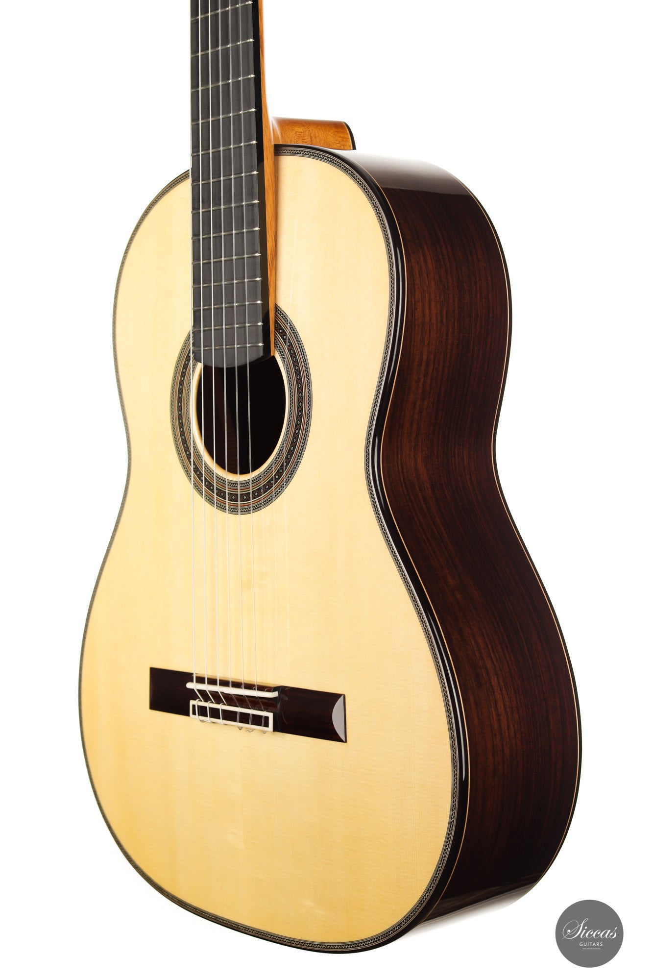 His craftsmanship and the way Adrian Heinzelmann designs his soundboards are unique. Many narrow parallel trenches are carved in the inside of the cedar soundboard to optimize its weight and flexibility. This technique, combined with a lightweight lattice bracing, gives an instrument of great sensitivity and impressive volume. Playing Adrian Heinzelmann’s guitar gives a feeling of confidence and pushes the guitarist to go beyond his limits.