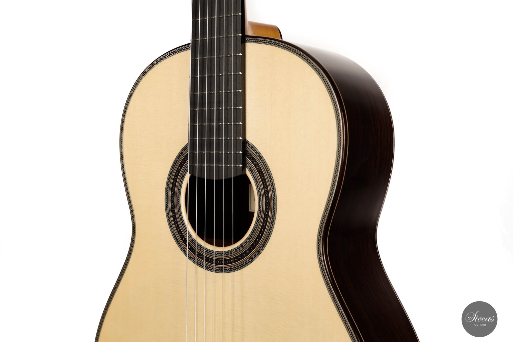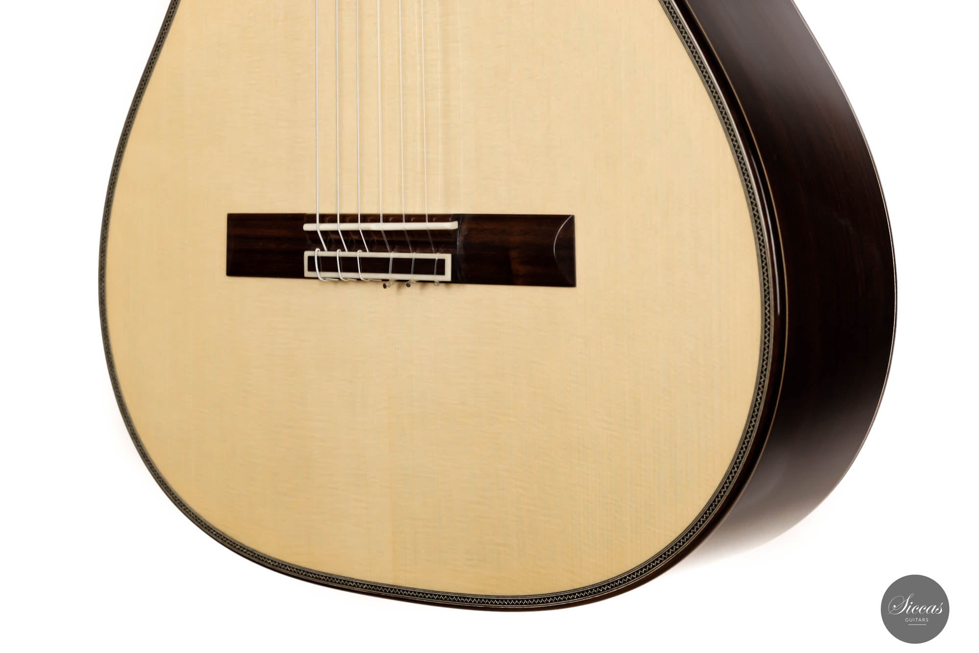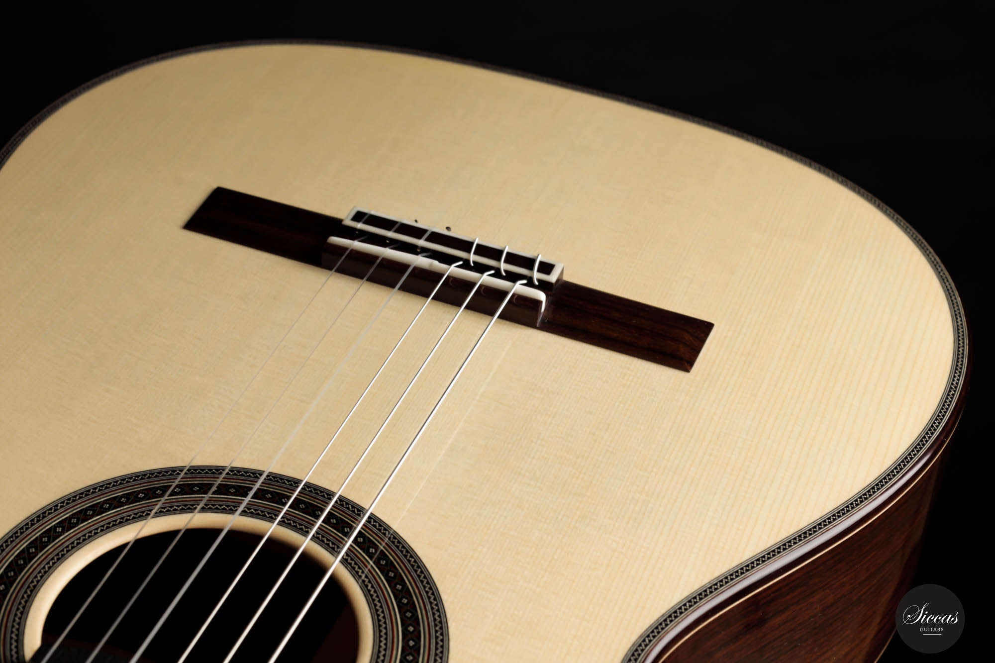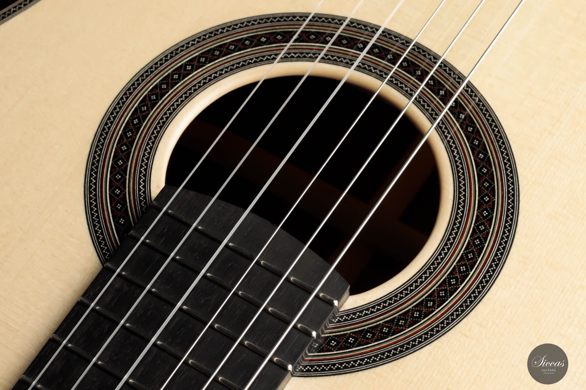 His craftsmanship and the way Adrian Heinzelmann designs his soundboards are unique. Many narrow parallel trenches are carved inside the cedar soundboard to optimize its weight and flexibility. This technique, combined with lightweight lattice bracing, gives an instrument great sensitivity and impressive volume. Playing Adrian Heinzelmann's guitar gives confidence and pushes the guitarist beyond his limits.