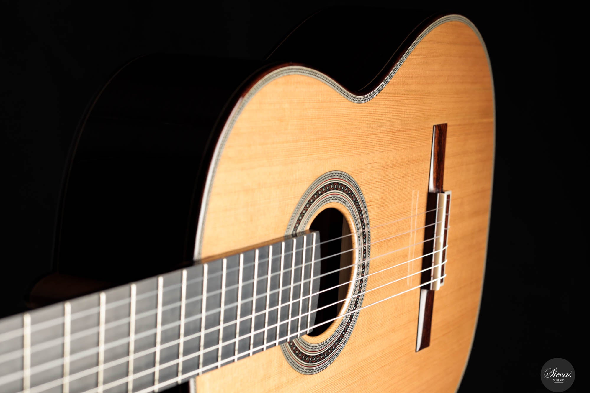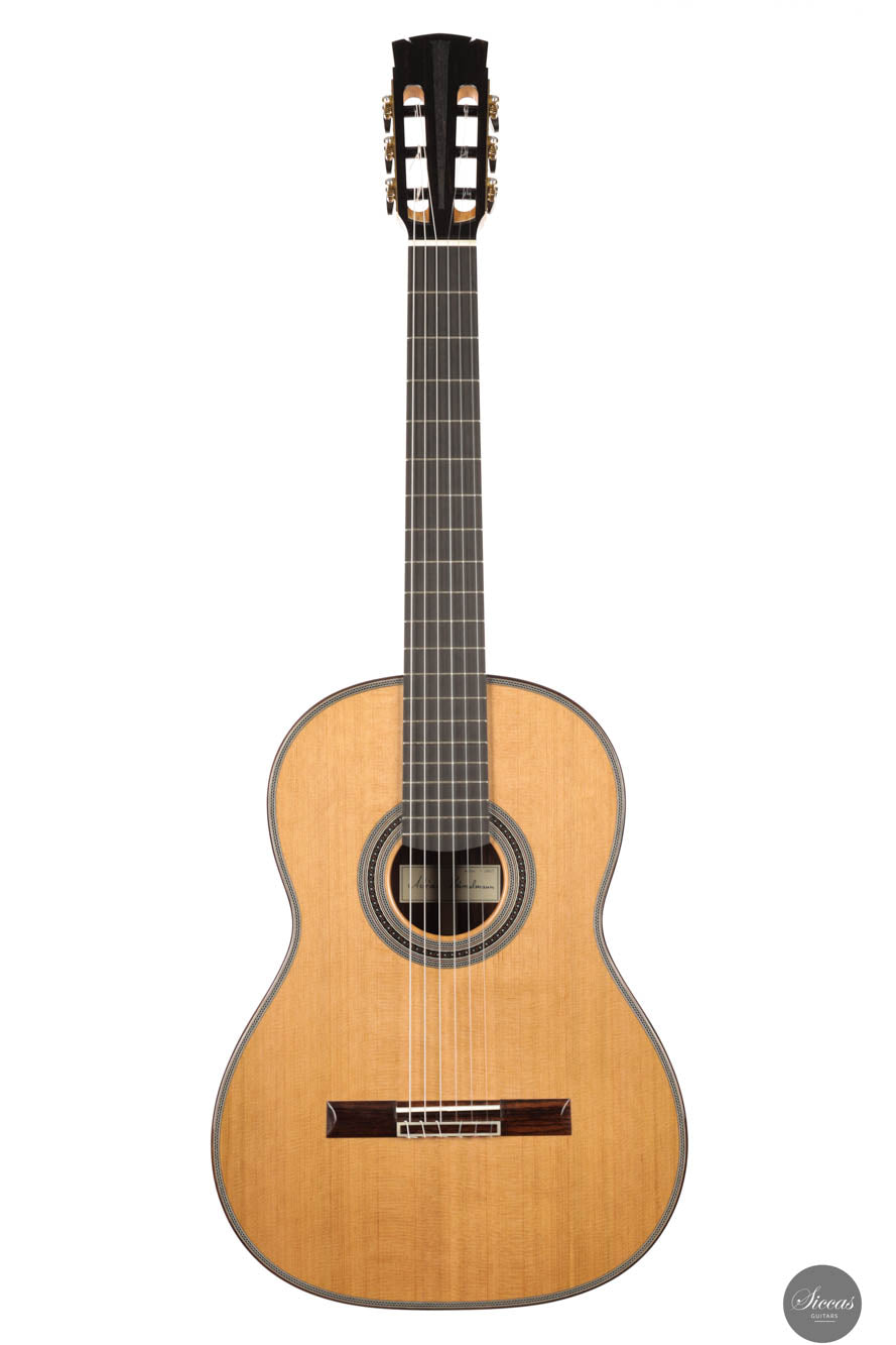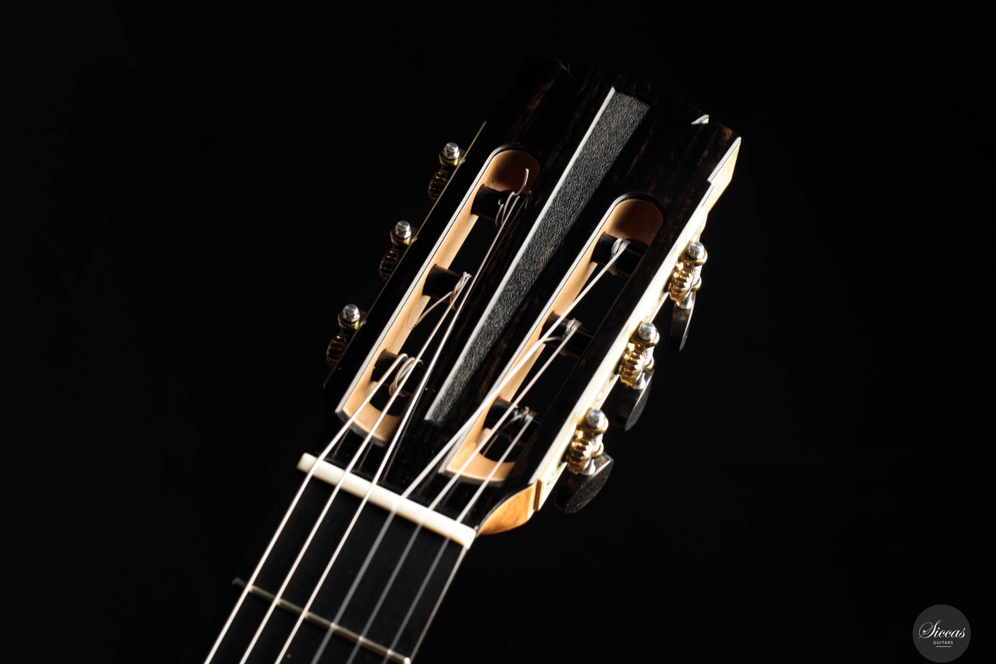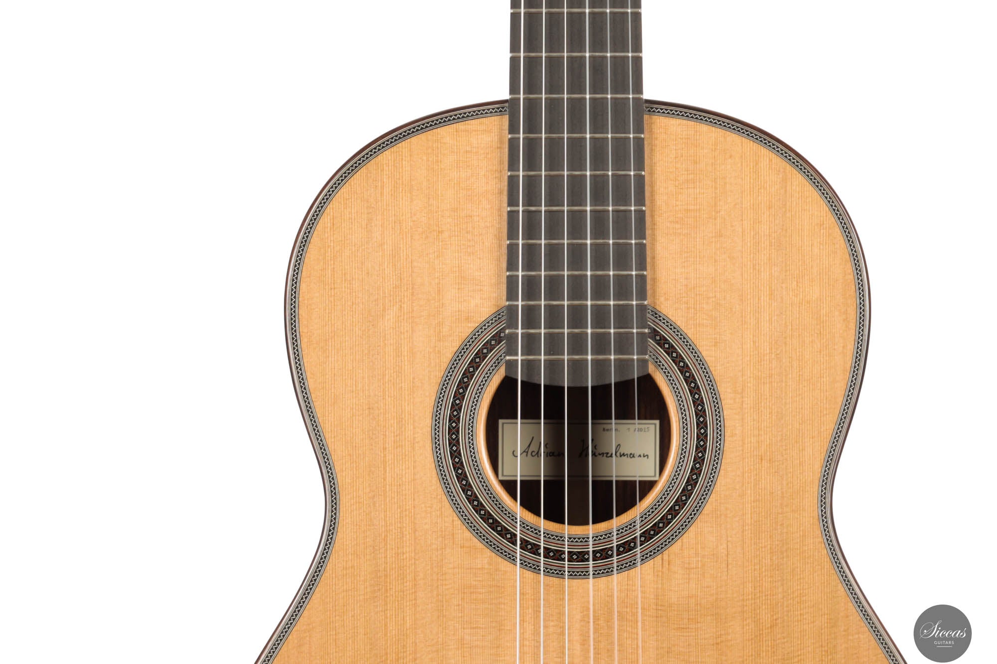Adrian Heinzelmann is one of his generation’s most talented German luthiers. His guitars are of great finesse with an aesthetic that combines the Spanish tradition and the modernity for which German luthiers are universally recognized. His guitars are played by many brilliant teachers, soloists, and students and have already proven themselves in major European concert halls. His craftsmanship and the way Adrian Heinzelmann designs his soundboards are unique. Many narrow parallel trenches are carved inside the cedar soundboard to optimize its weight and flexibility. Combined with lightweight lattice bracing, this technique gives an instrument of great sensitivity and impressive volume. Playing Adrian Heinzelmann’s guitar gives confidence and pushes the guitarist beyond his limits.