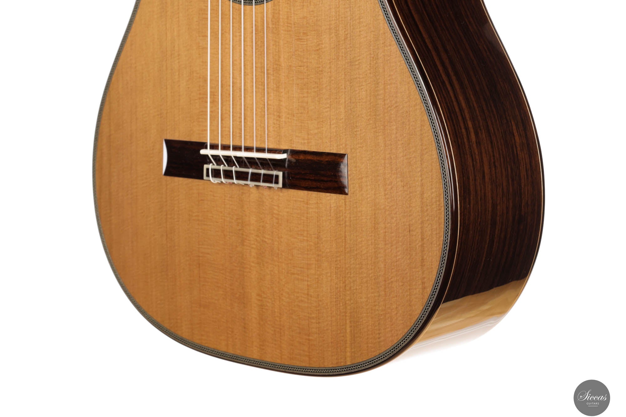 It clearly demonstrates that Adrian’s innovative “Groove Bracing” system is a major advancement in classical guitar making. Despite its impressive volume, the guitar retains a very natural tonal character, offering great sustain and rich overtones that give the sound depth and color.
