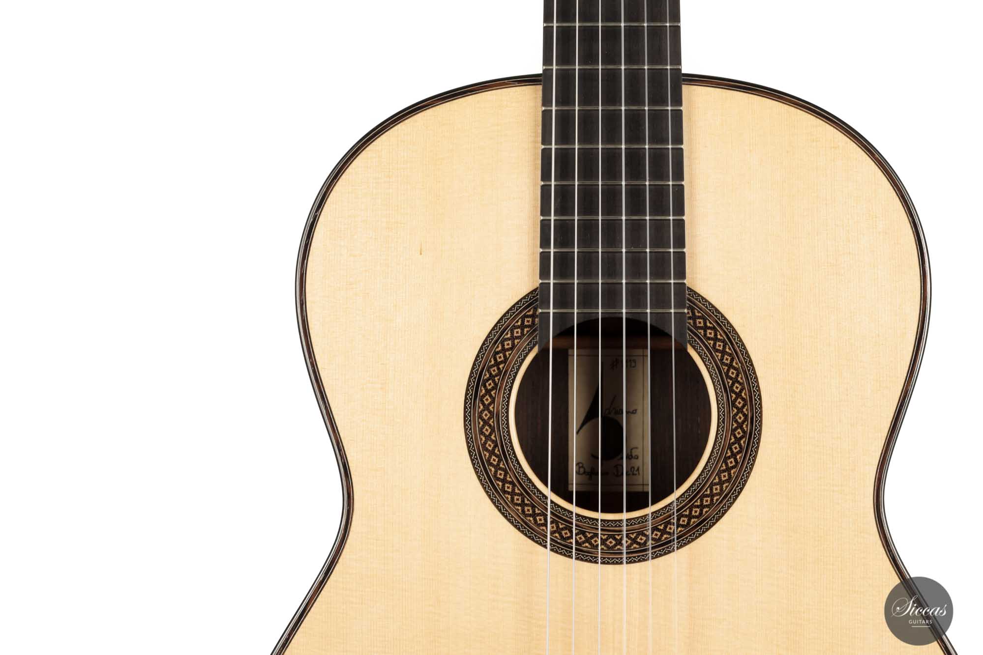 This brand new guitar numbered 2119, is a fantastic instrument built in the most authentic Italian style: precision, lightness, and elegance. Supposed to be finished at the end of 2021, hence the date on the label, this guitar was completed in 2022 and came directly to us from Adriano's workshop.