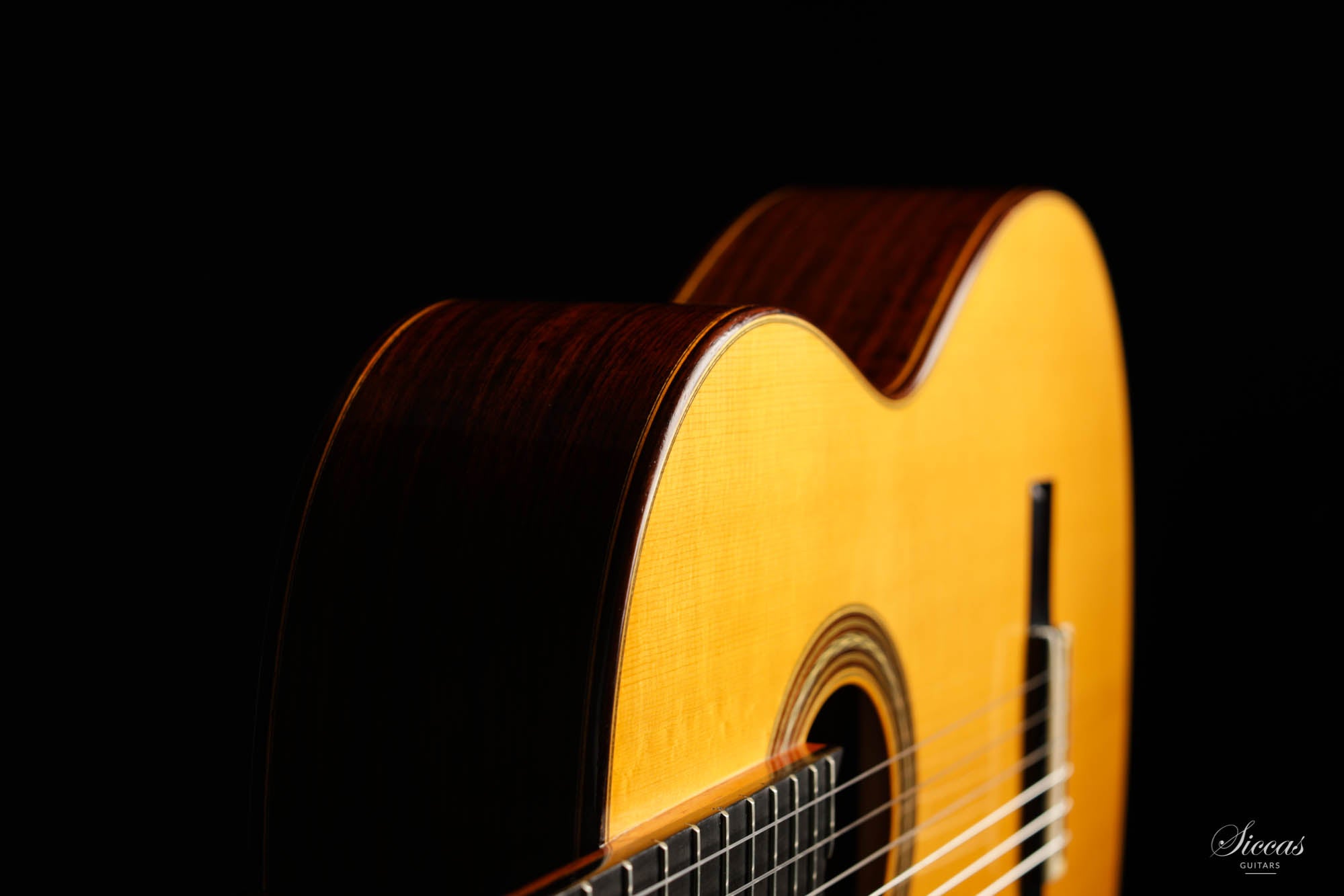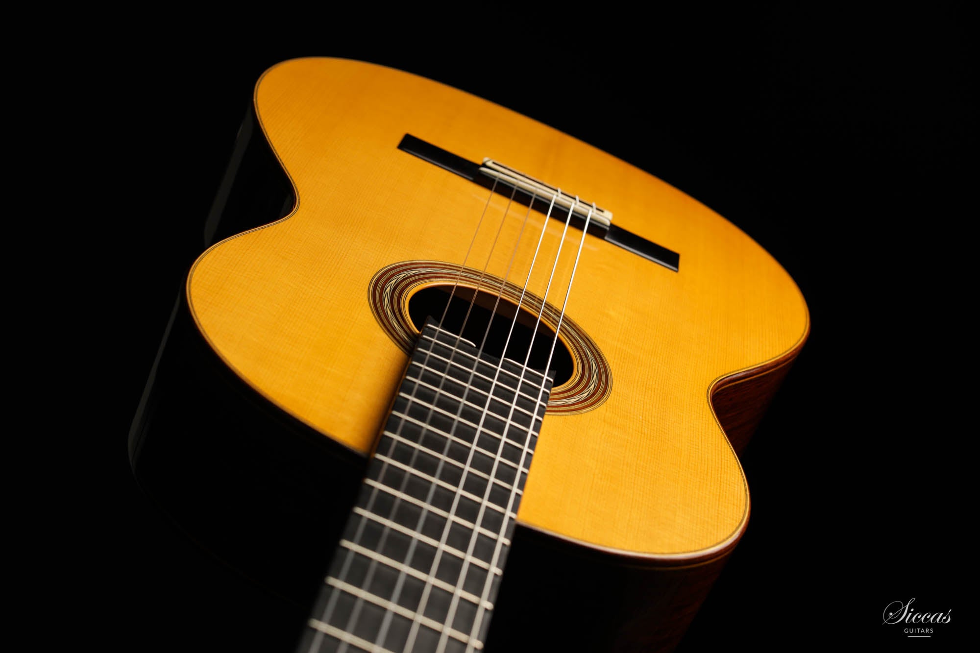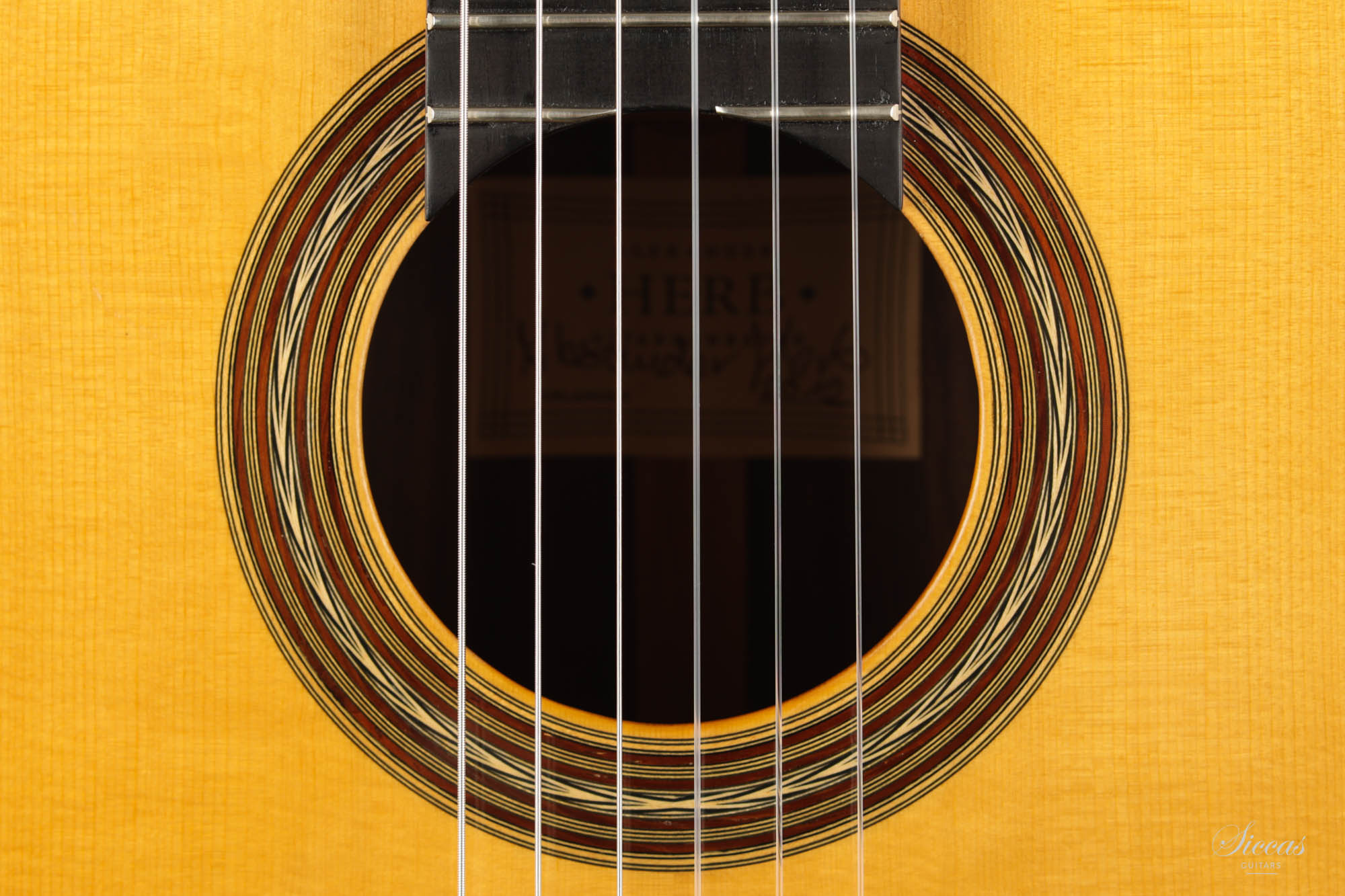 This instrument made by Alexander Herb is a great concert guitar with a powerful voice, the core of the tone is very profound. Clear and vibrant trebles paired with excellent bass response makes for an inspiring guitar to play on. It is very easy to play and you get the feeling that you do not need to work hard to produce a beautiful sound. During further investigation the guitar has one repaired crack under the bridge that is repaired professionally and it is perfectly stable.