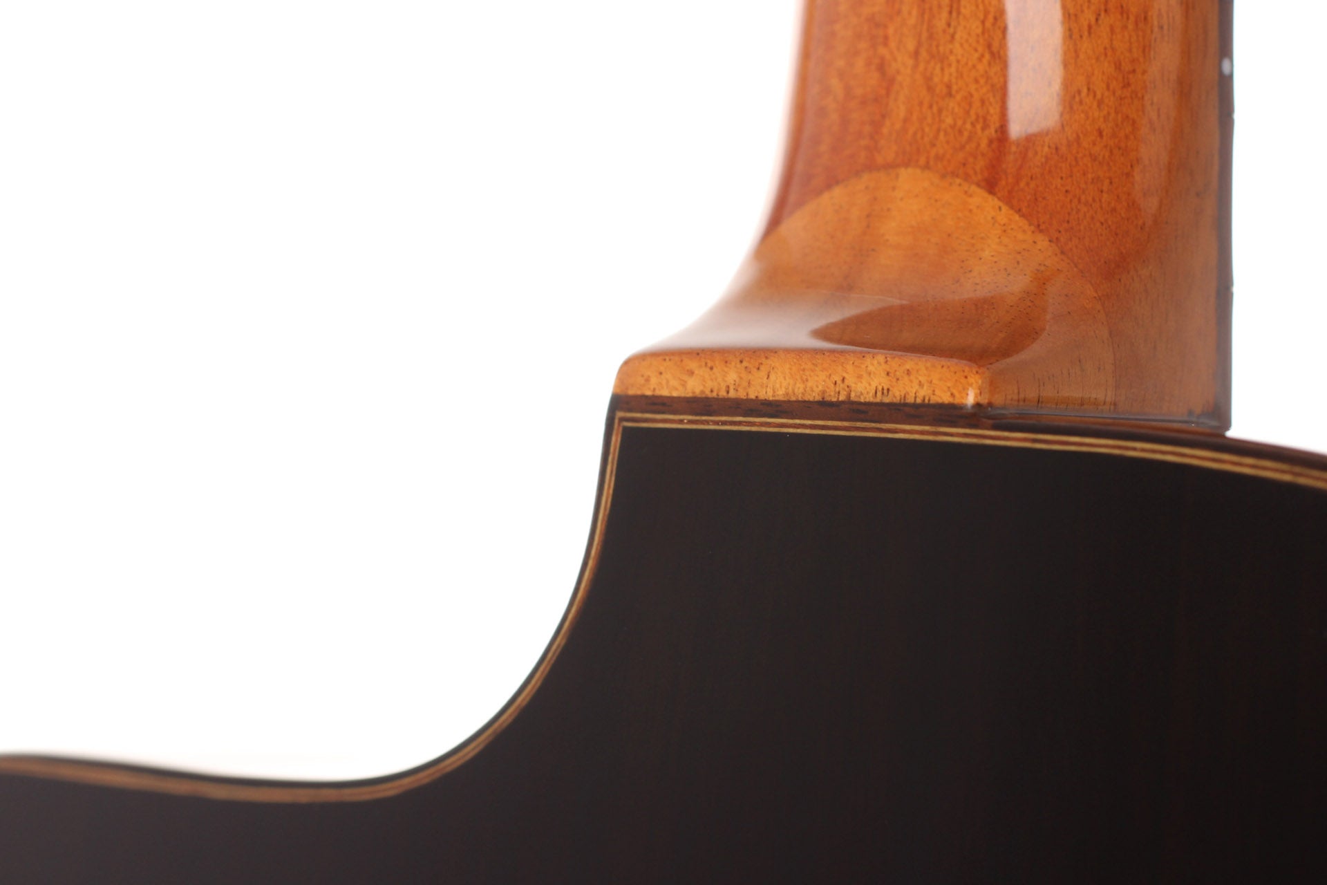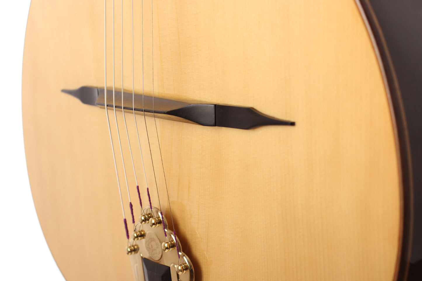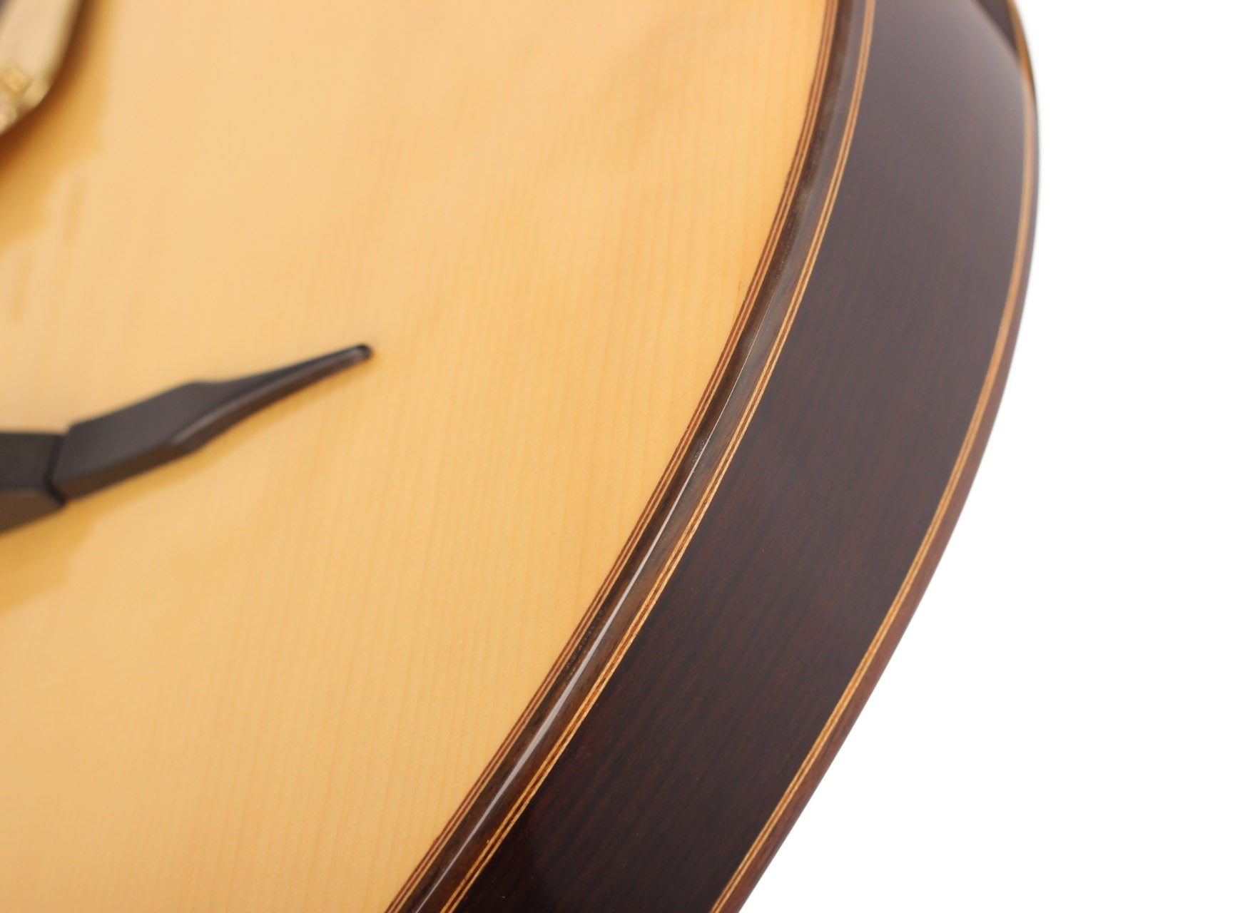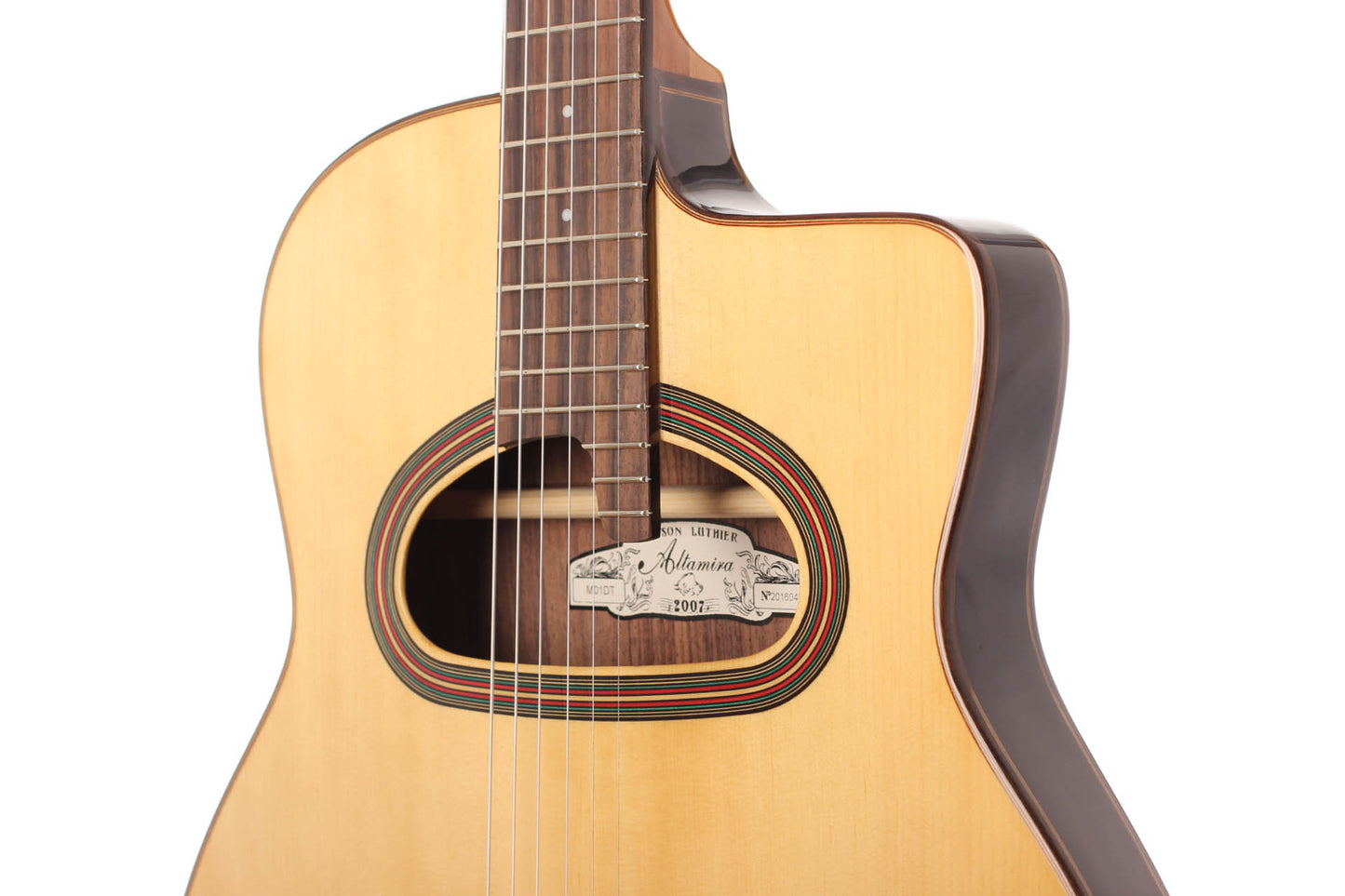 The Selmer-Style guitars by Altamira are fine instruments with an authentic sound and a great value for money. Due to their modern C-Shape neck they are also very comfortable to play. This Altamira M01DT Maccaferri style gypsy jazz guitar has a d-sound-hole and a high gloss finish. Quite traditional in sound with a rich and hearty tone. Due to its thinner body this model is very ergonomic without losing power or sound. Only the best woods were chosen to make this guitar: Finest German spruce and finer laminated Indian rosewood for back and sides. A Gewa Prestige hardshell case is included.