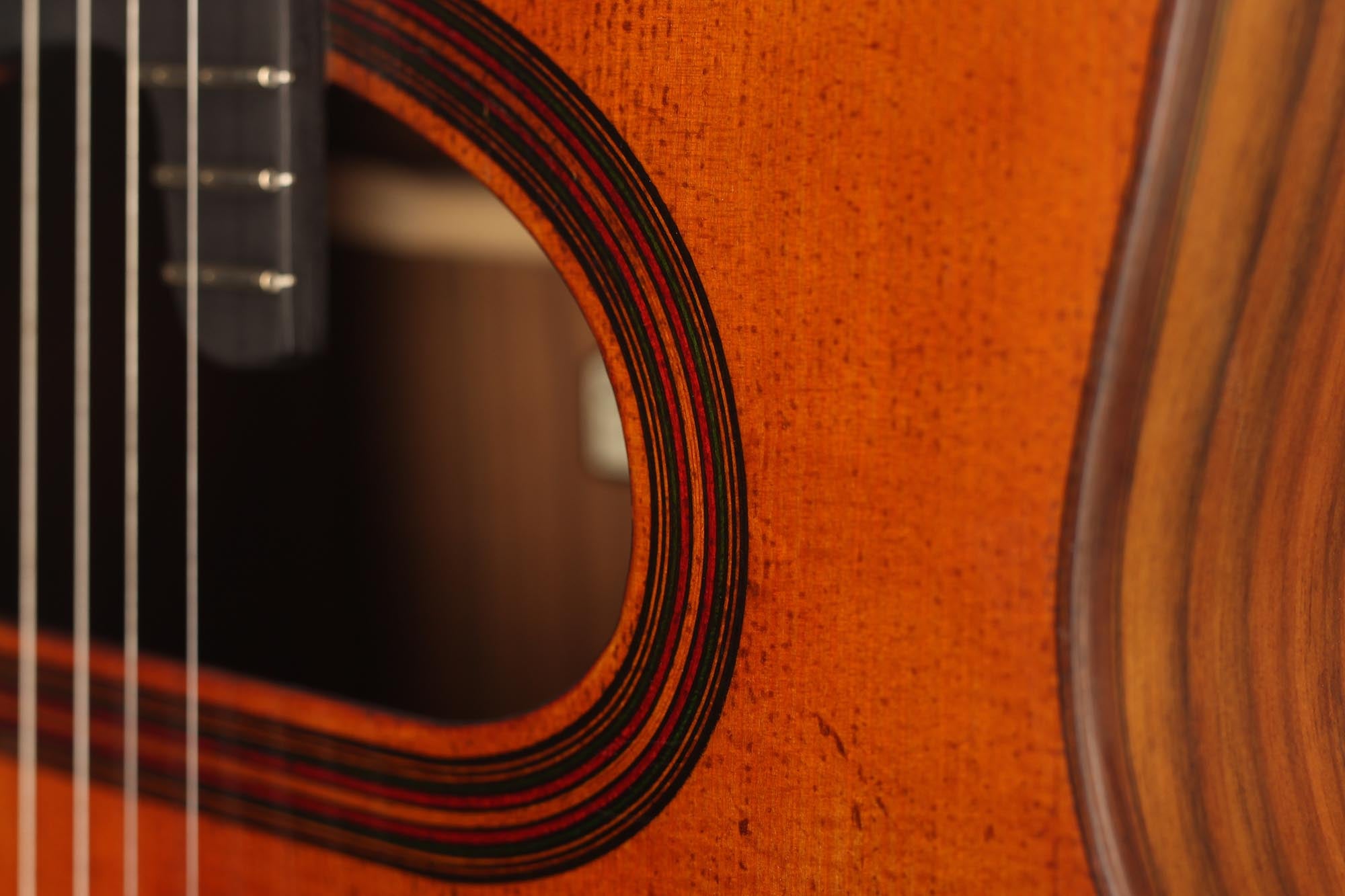 Price: 7.990 €Sale price 7.990 € Price:Unit price / per Tax free (0% DE)0 €Save: -7.990 €Luthier: Otto VowinkelConstruction Year: 2019Construction Type: TraditionalTop: CedarBack and Sides: Indian rosewoodSoundboard Finish: French polishBody Finish: French polishAir Body Frequency: G / G sharpWeight (g): 1590Tuner: SloaneCondition: Excellent -