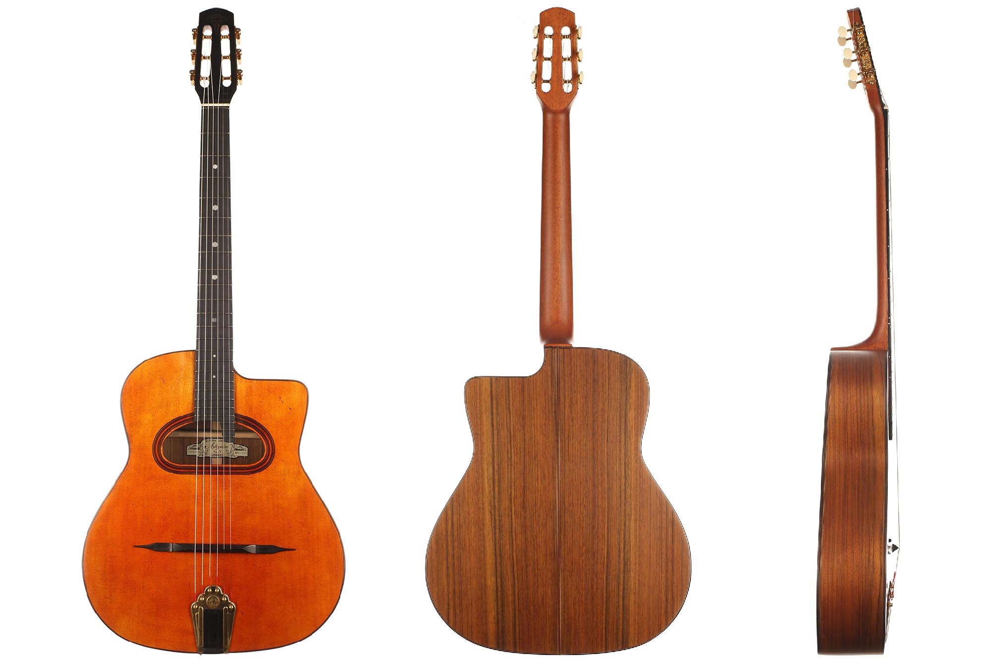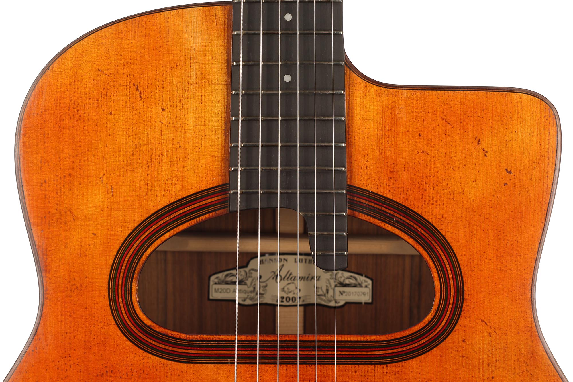 The M20D Antique is a fine quality Selmer copy from Altamira with the typical oval soundhole (grande bouche). Due to high-quality materials of this solid wood model, this guitar has an authentic and dry tone. Also, the Altamiras have a more modern, ergonomic C shaped neck, that makes playing nice and comfortable. The top is made of solid spruce. Back and sides are made of solid ovangkol. The neck is crafted of cedar and the fretboard of ebony. Hardshell case is included.