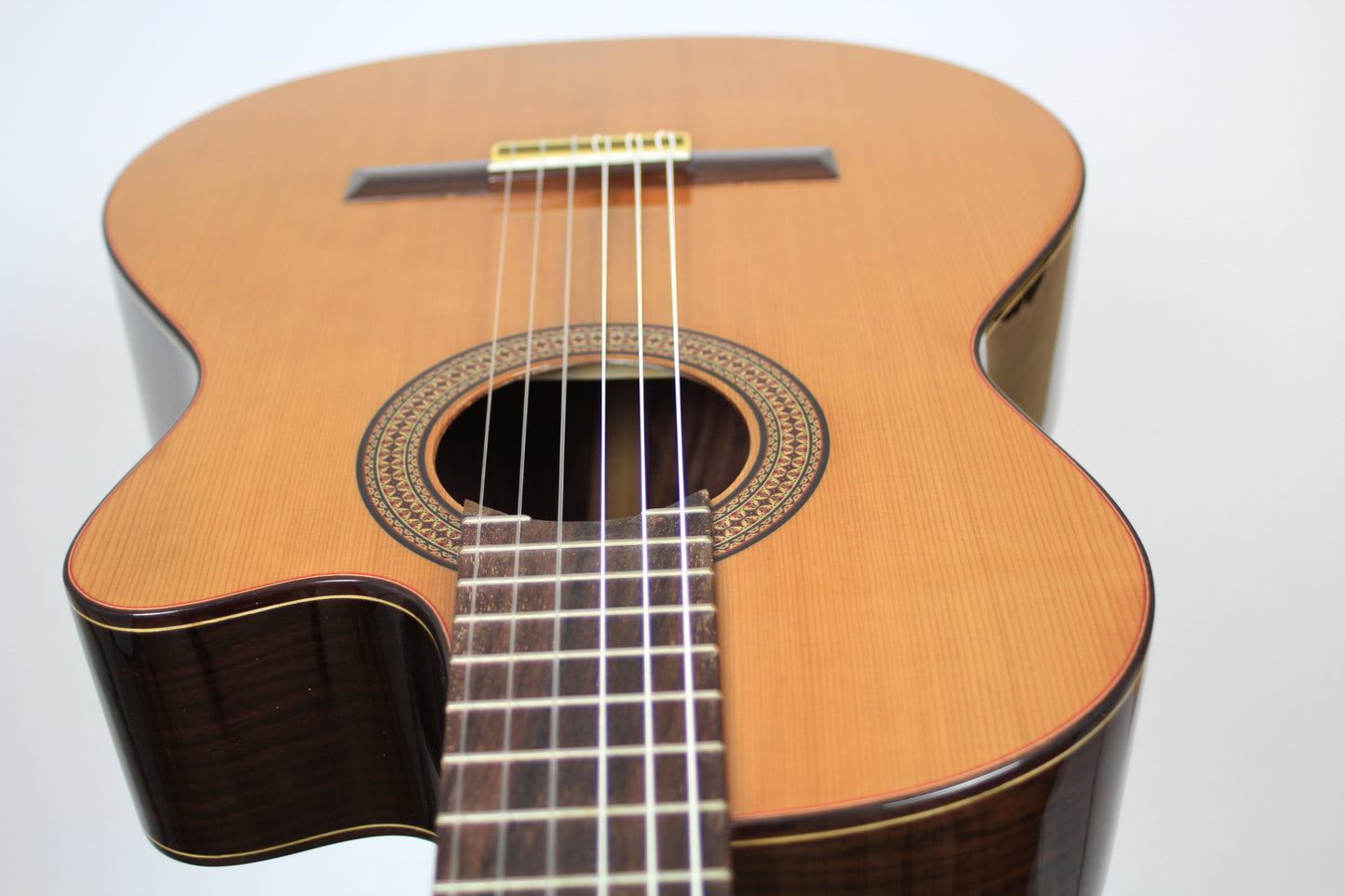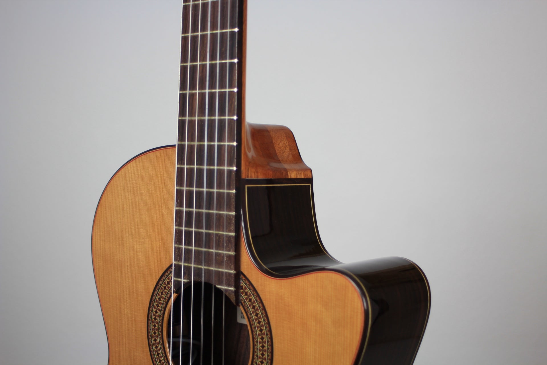 Price: 5.990 €Sale price 5.990 € Price:Unit price / per Tax free (0% DE)0 €Save: -5.990 €Luthier: Elvis PajaresConstruction Year: 2025Construction Type: Double TopTop: CedarBack and Sides: Indian rosewoodSoundboard Finish: French polishBody Finish: French polishAir Body Frequency: F / F sharpWeight (g): 1415Tuner: Kris BarnettCondition: New -
