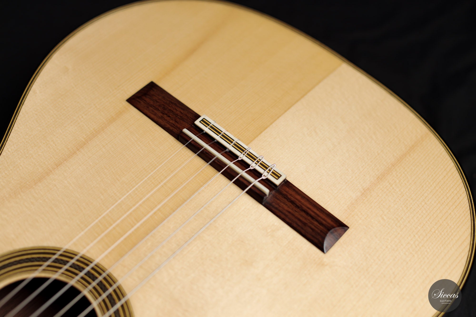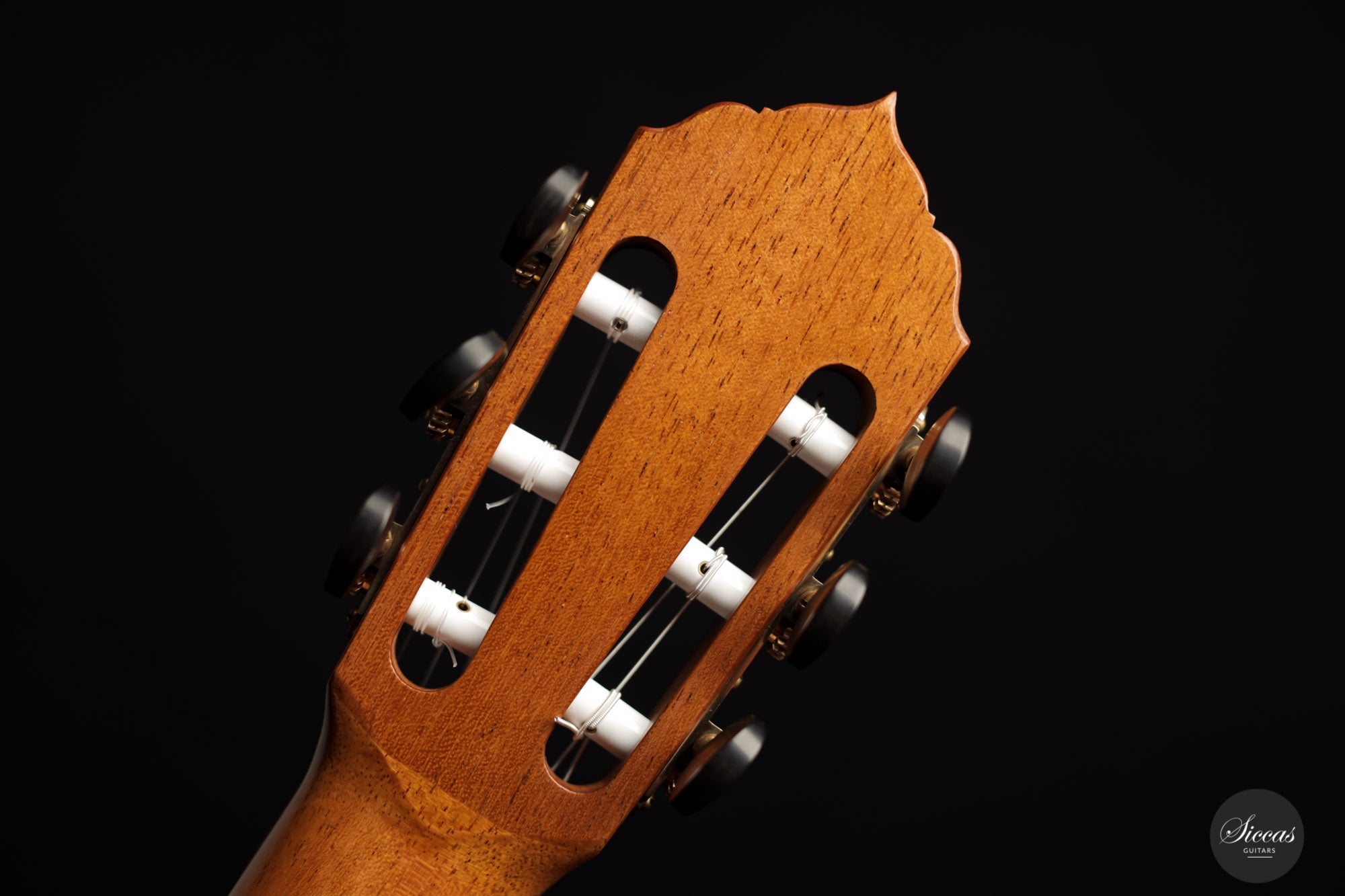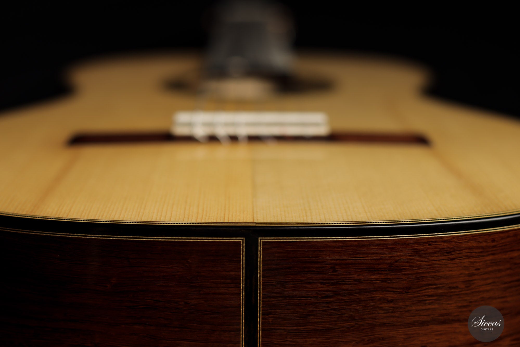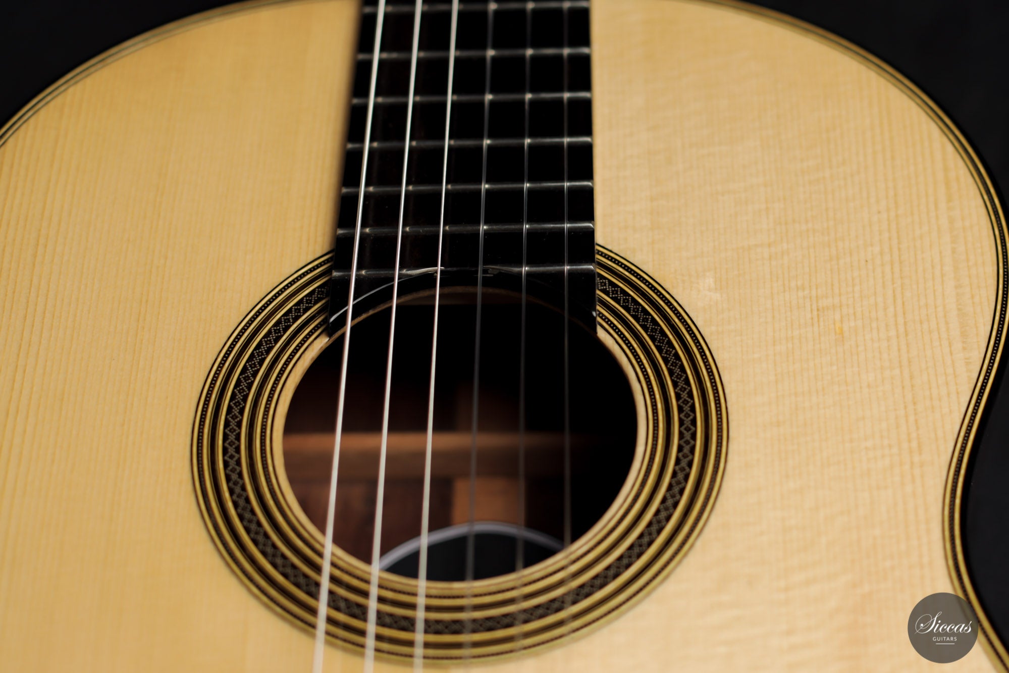 What a fascinating guitar that Amelie Bouvret has created here. For this model, just like the last instrument we received from her and had the pleasure of offering, she took inspiration from Robert Bouchet. The design is very elegant and classy and the sound is remarkably balanced and appealing. Due to the also very pleasant touch, this French guitar is quite versatile and brings great satisfaction when playing.
