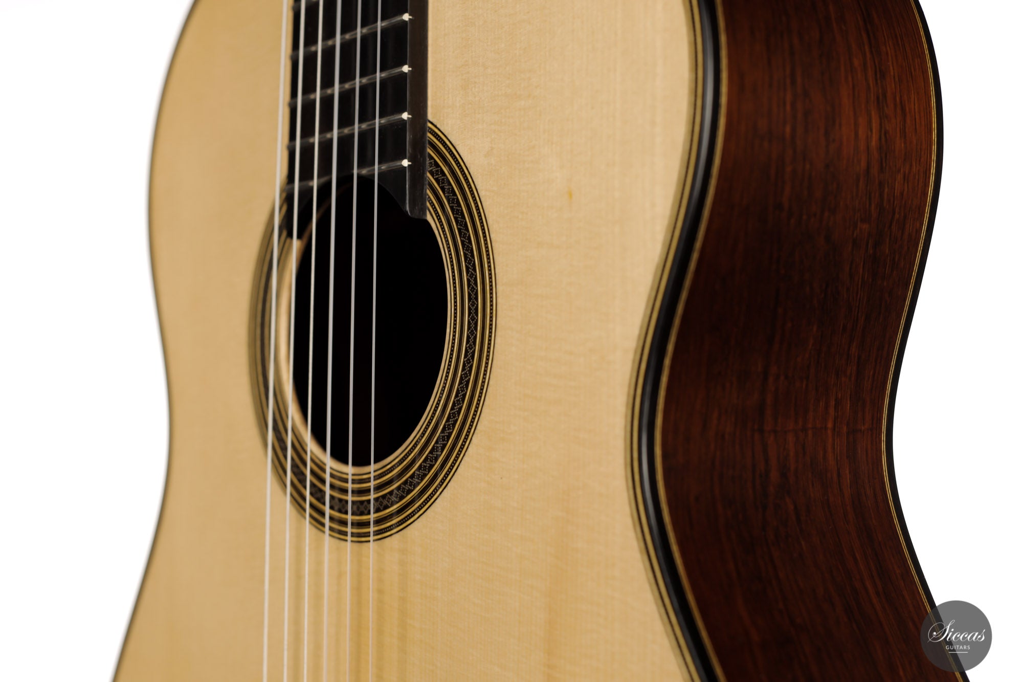 The classical guitar, with its soft nylon strings and characteristic timbre, has become a symbol of chamber music, Spanish tradition, and concert repertoire. Its modern form was shaped by Antonio de Torres in the 19th century, setting the standard for the body, fan bracing, and the 65-centimeter scale length that are still used today. Instruments in this category open up a rich palette from the refined Romantic miniatures of Tárrega to the majestic concertos of Rodrigo. Here you will find guitars that preserve historical continuity and at the same time inspire new interpretations.