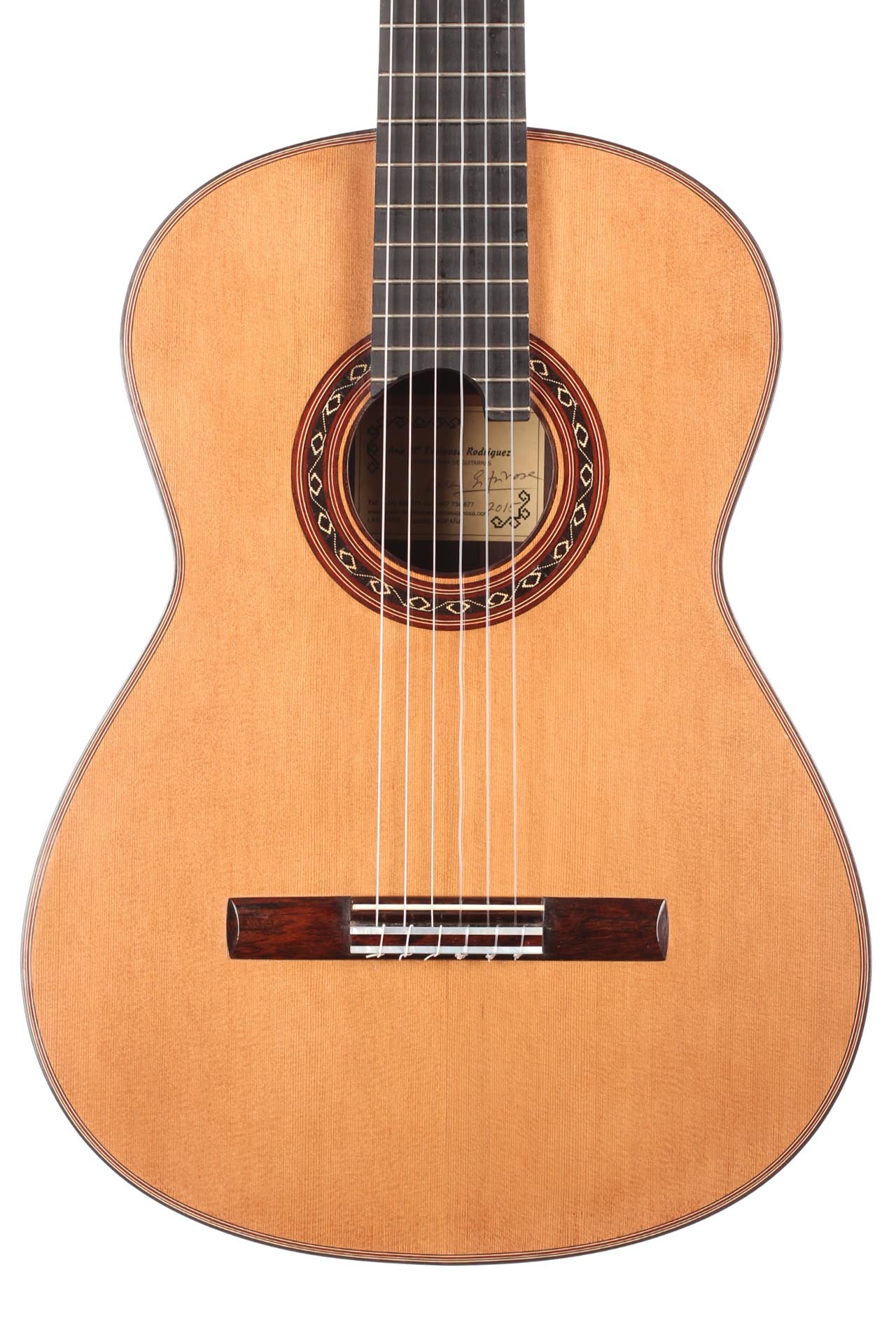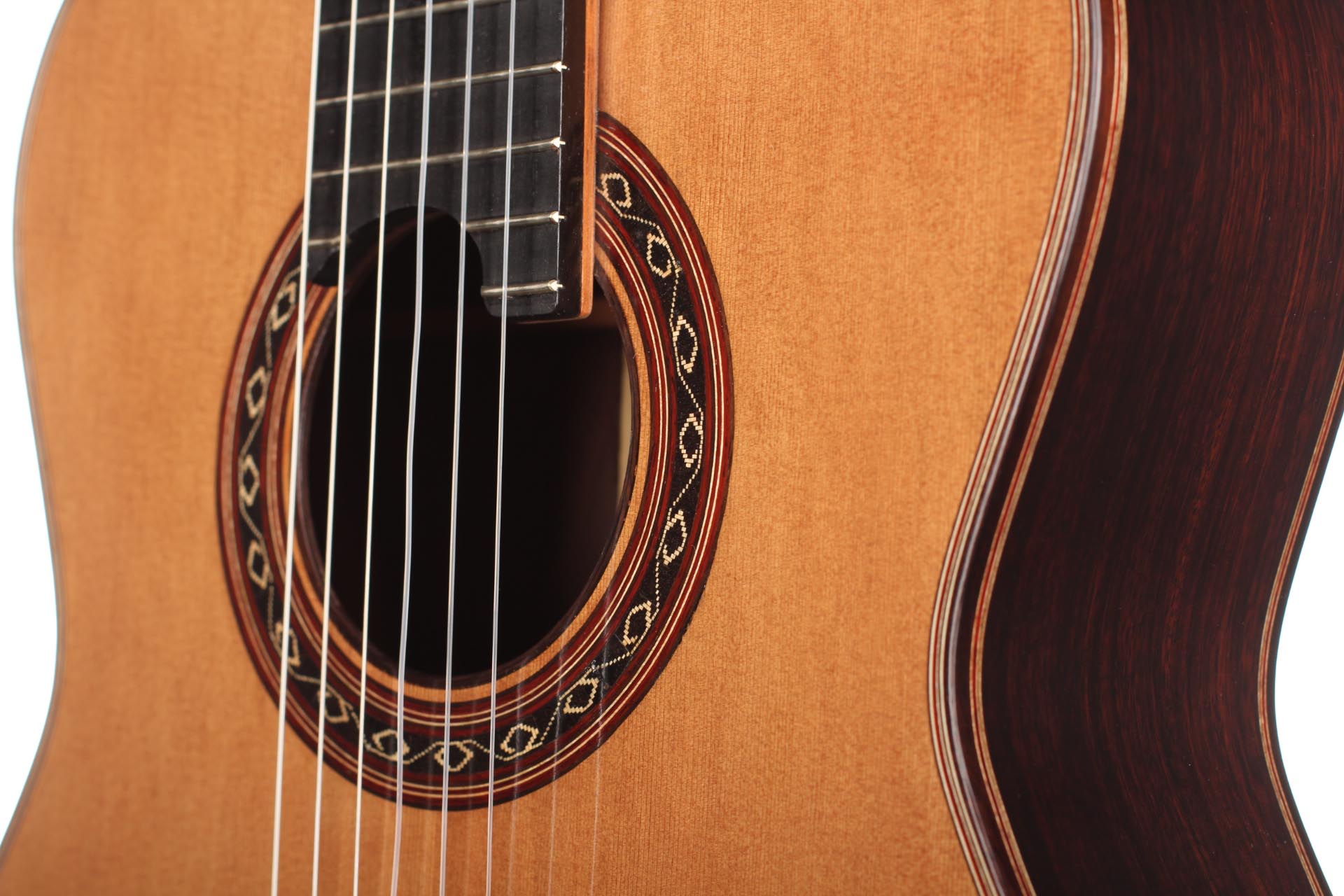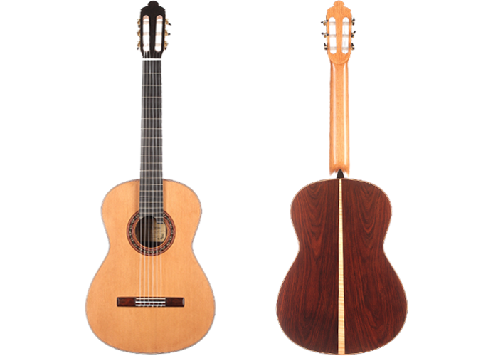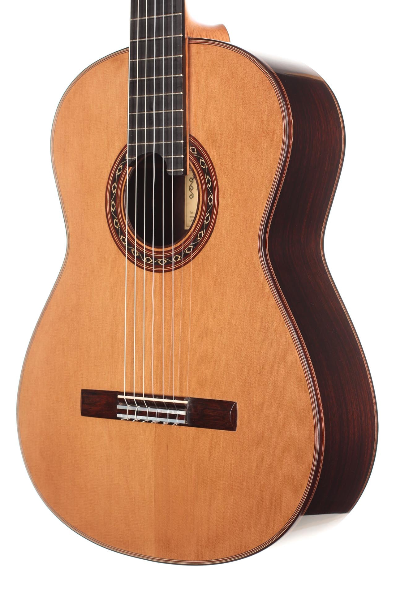 Price: 5.990 €Sale price 5.990 € Price:Unit price / per Tax free (0% DE)0 €Save: -5.990 €Luthier: Elvis PajaresConstruction Year: 2025Construction Type: Double TopTop: CedarBack and Sides: Indian rosewoodSoundboard Finish: French polishBody Finish: French polishAir Body Frequency: F / F sharpWeight (g): 1415Tuner: Kris BarnettCondition: New -