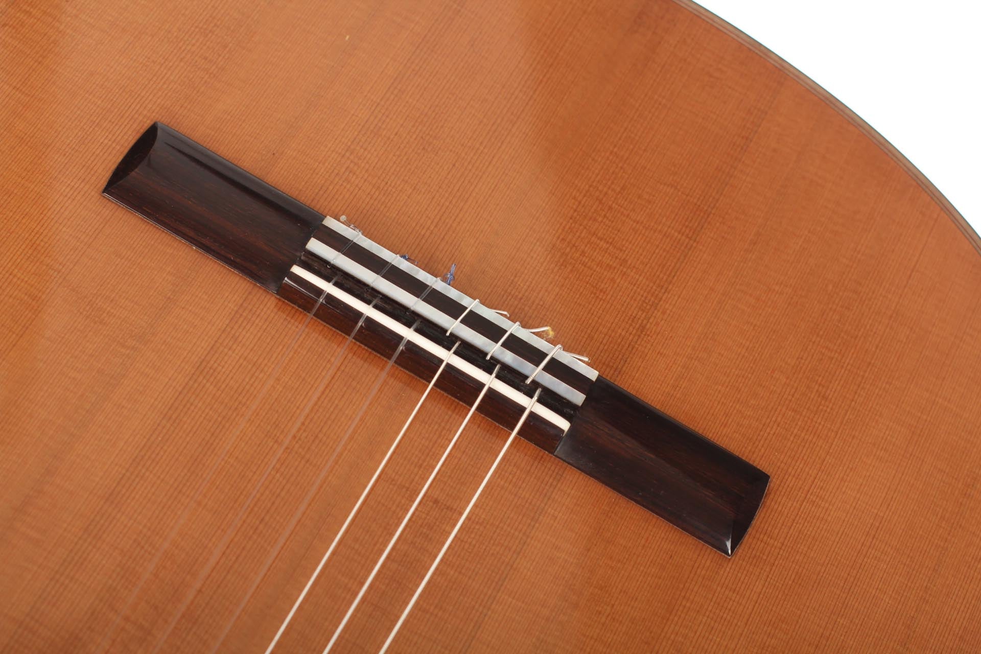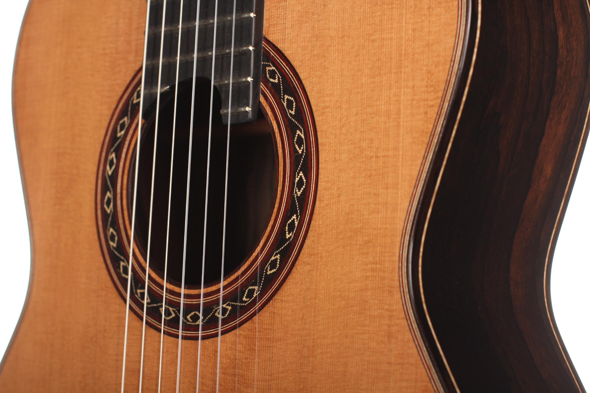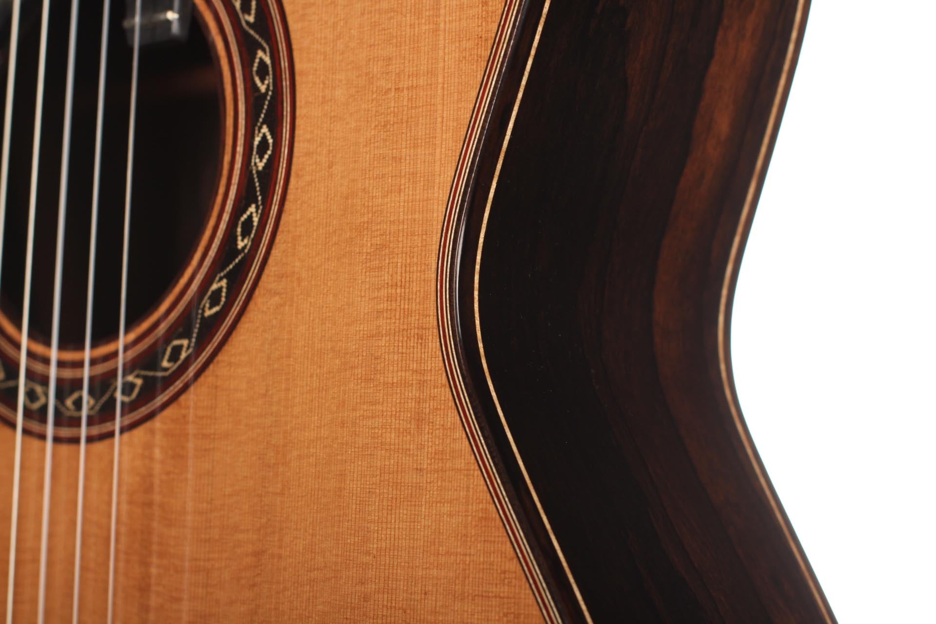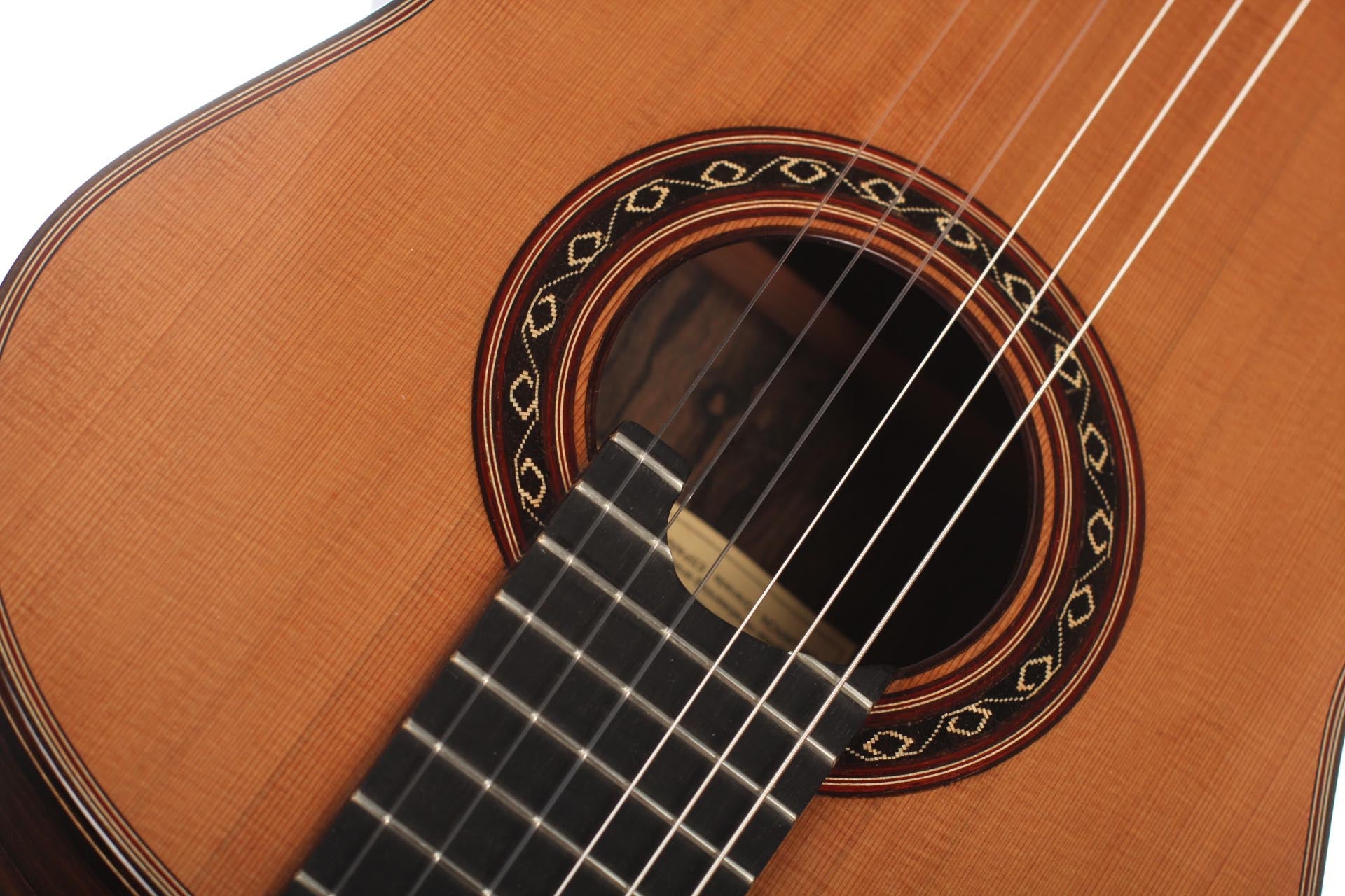 Ana Maria Espinosa Rodríguez learned the art of luthiery from René Baarslag. Her construction philosophy is mainly inspired by the instruments of Antonio de Torres and elements of these guitars can be found in hers. Ana Espinosa’s guitars are characterized by a powerful sound volume and rich tone. This new guitar was built in 2017. The top is made of cedar and back and sides are made of beautiful Ziricote. This particular guitar has a warm and profound tone and is very tender to play. This is overall an accomplished instrument with a textured sound and pleasing playability. The tuners are made by Rubner. A Hiscox Pro II hard-shell case is included. This guitar is Cites-free (CF)