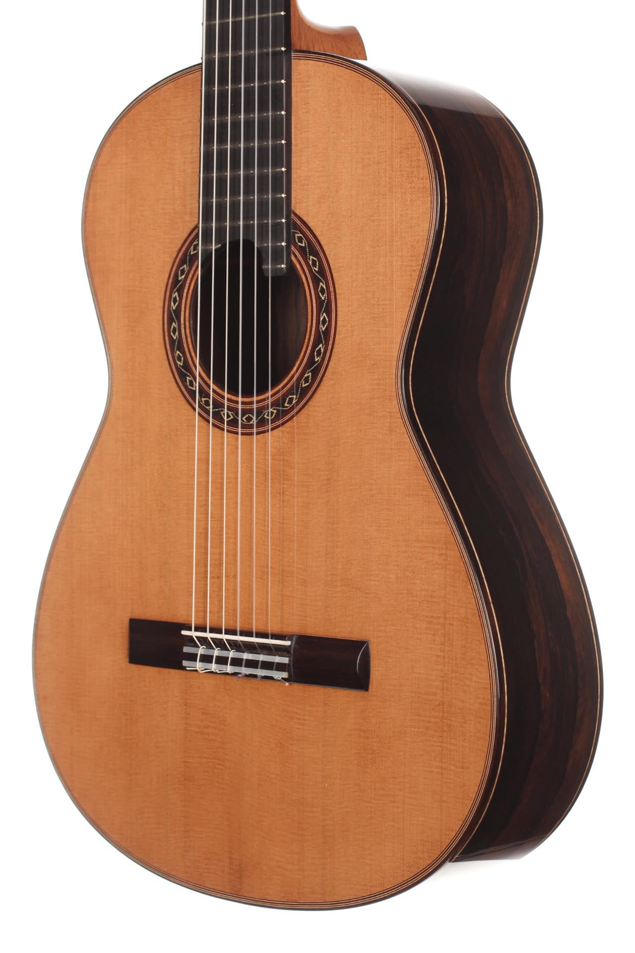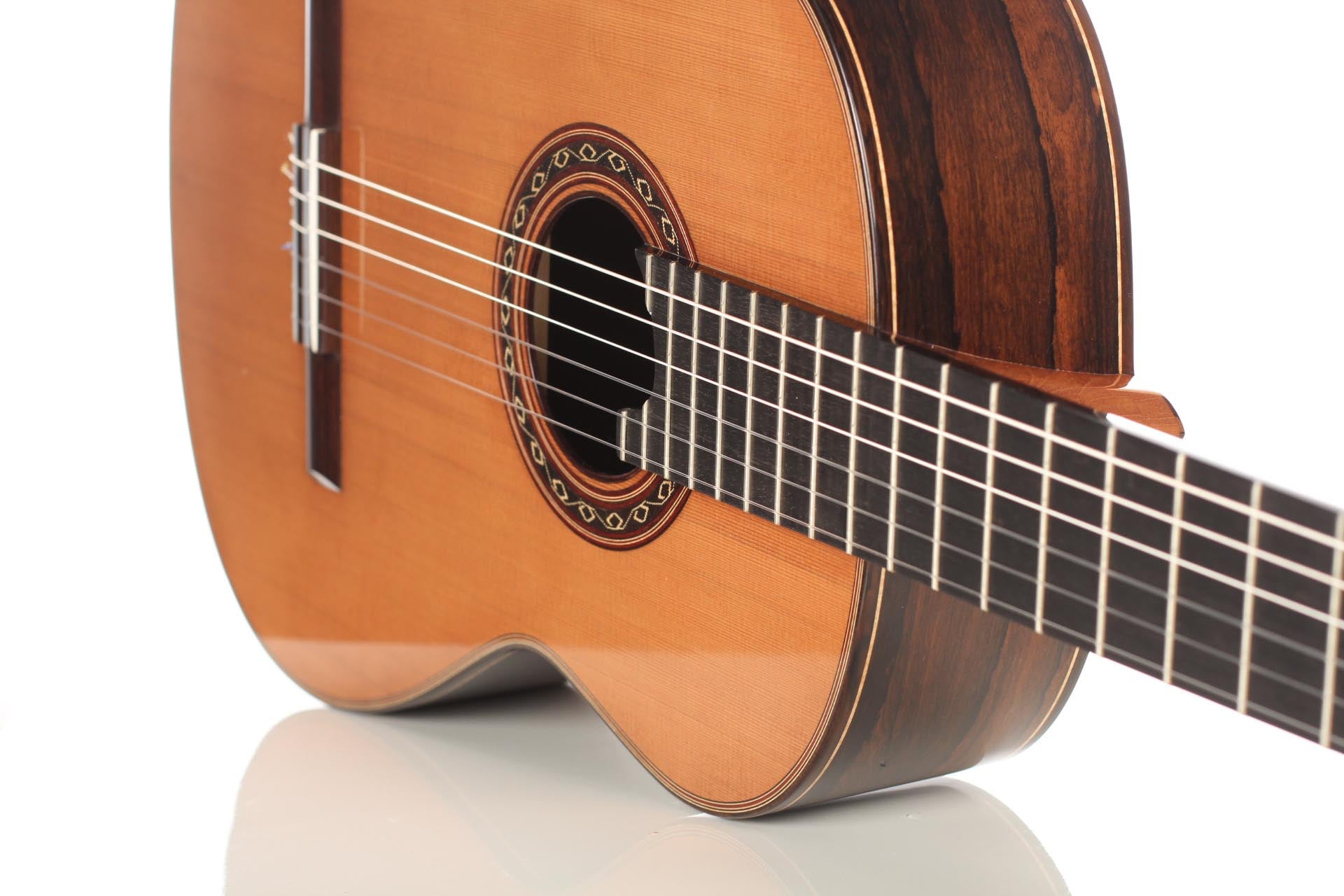 The classical guitar, with its soft nylon strings and characteristic timbre, has become a symbol of chamber music, Spanish tradition, and concert repertoire. Its modern form was shaped by Antonio de Torres in the 19th century, setting the standard for the body, fan bracing, and the 65-centimeter scale length that are still used today. Instruments in this category open up a rich palette from the refined Romantic miniatures of Tárrega to the majestic concertos of Rodrigo. Here you will find guitars that preserve historical continuity and at the same time inspire new interpretations.