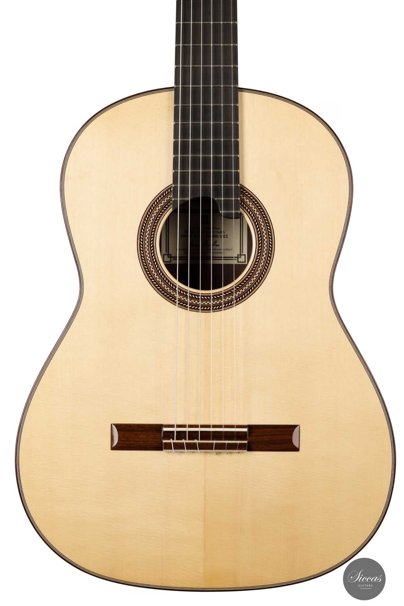 Price on requestLuthier: Fritz OberConstruction Year: 2019Construction Type: TraditionalTop: SpruceBack and Sides: Brazilian rosewood (CITES certified)Soundboard Finish: French polishBody Finish: French polishAir Body Frequency: C sharp / DWeight (g): 1345Tuner: Klaus SchellerCondition: Excellent -