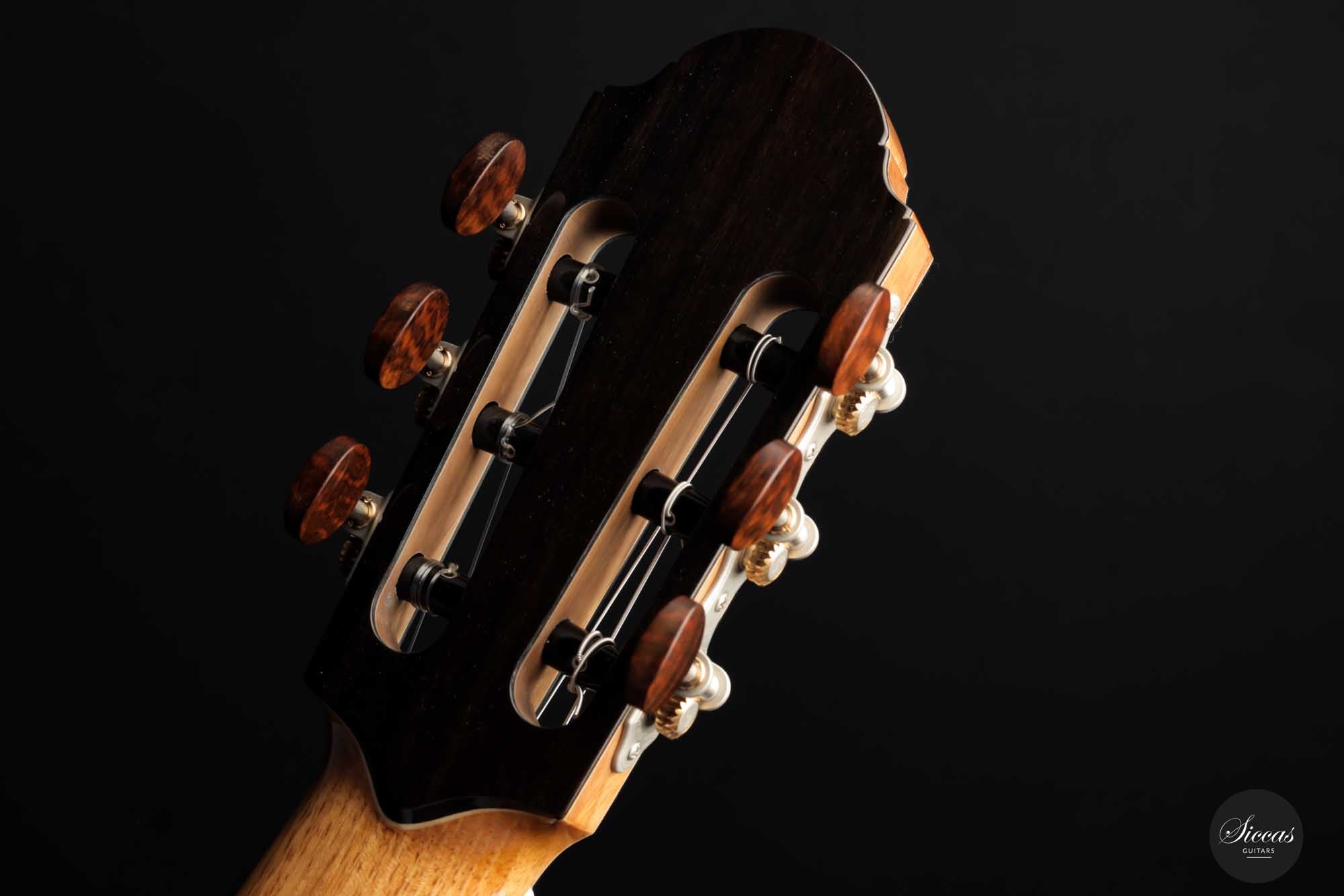 Andrea Marcellan built this exquisite "Gran Concerto" model guitar no. 69 in 2022 as a showcase guitar for the 2022 Roma Expo Guitar. This "Gran Concerto" model guitar was built to a similar specification to the twin sister guitar, number 70 from the 2022 REG limited edition model, to which he added some elegant aesthetical features making it unique. Andrea's guitars are built with remarkable attention to detail, showing his refined artistry as a great guitar maker.