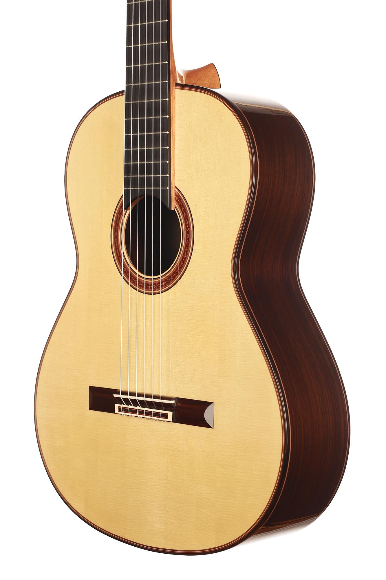 The classical guitar, with its soft nylon strings and characteristic timbre, has become a symbol of chamber music, Spanish tradition, and concert repertoire. Its modern form was shaped by Antonio de Torres in the 19th century, setting the standard for the body, fan bracing, and the 65-centimeter scale length that are still used today. Instruments in this category open up a rich palette from the refined Romantic miniatures of Tárrega to the majestic concertos of Rodrigo. Here you will find guitars that preserve historical continuity and at the same time inspire new interpretations.