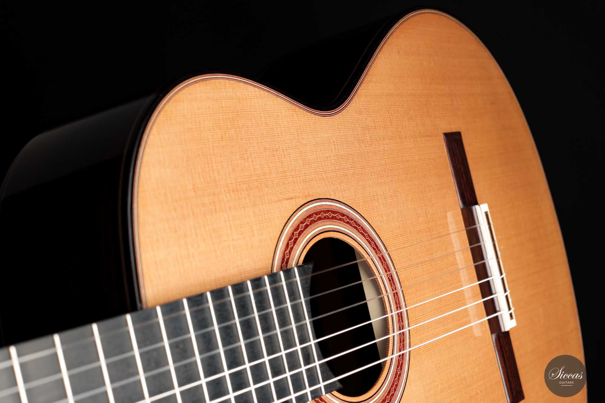 This brand-new Andreas Kirschner is our first guitar with a 63 cm scale, and what a phenomenal instrument! The volume, sustain, and warmth of sound are just mind-blowing. Adding to this, the unique playability provided by the 63 cm scale makes it a dream concert guitar.
