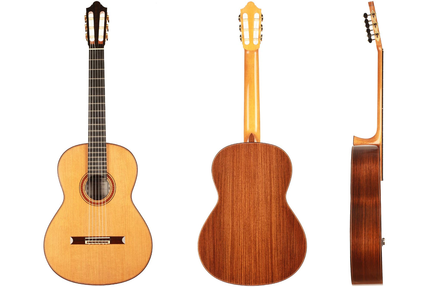 Price: 5.990 €Sale price 5.990 € Price:Unit price / per Tax free (0% DE)0 €Save: -5.990 €Luthier: Elvis PajaresConstruction Year: 2025Construction Type: Double TopTop: CedarBack and Sides: Indian rosewoodSoundboard Finish: French polishBody Finish: French polishAir Body Frequency: F / F sharpWeight (g): 1415Tuner: Kris BarnettCondition: New -