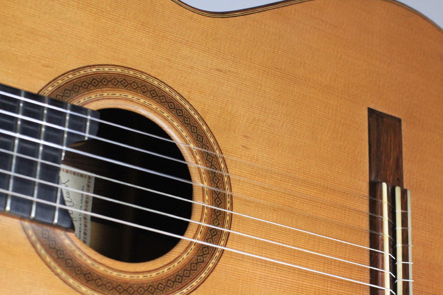 Luthier: José Luis RomanillosConstruction Year: 1979Construction Type: TraditionalTop: SpruceBack and Sides: Indian rosewoodSoundboard Finish: French polishBody Finish: French polishAir Body Frequency: G / G sharpWeight (g): 1410Tuner: Klaus SchellerCondition: Excellent