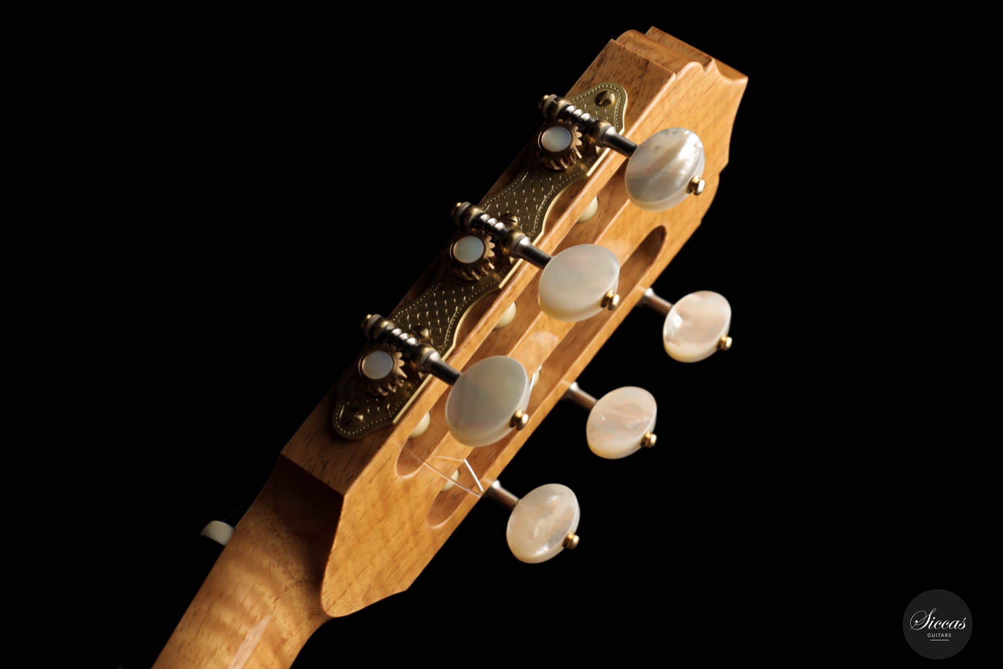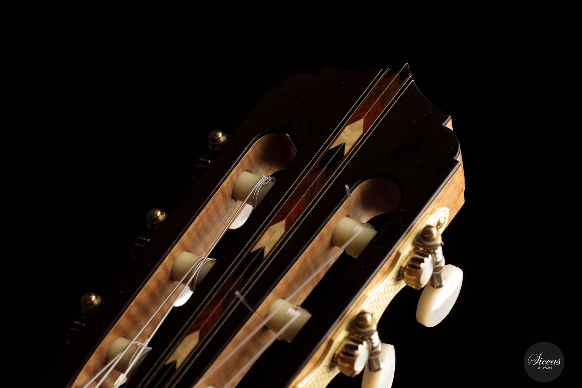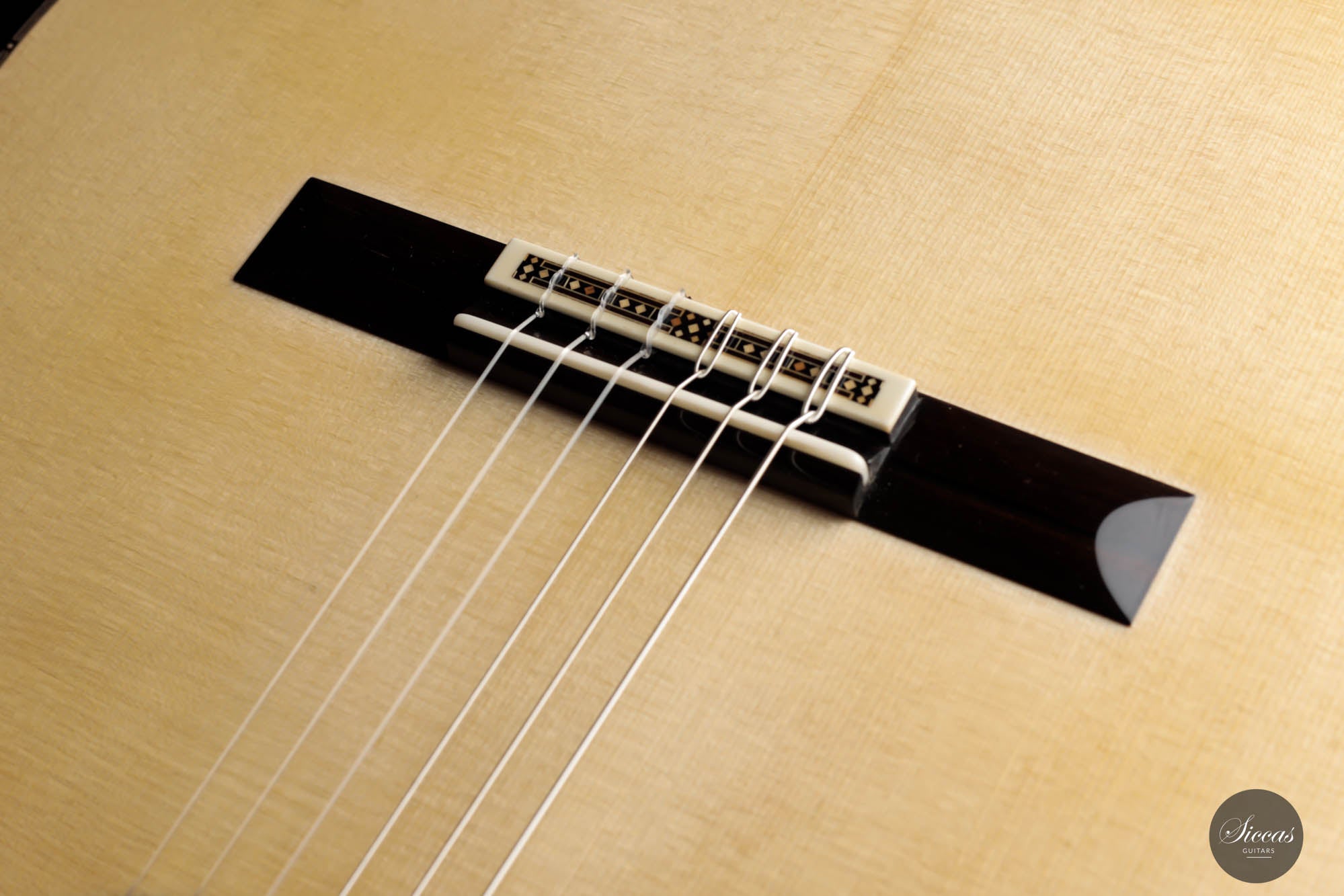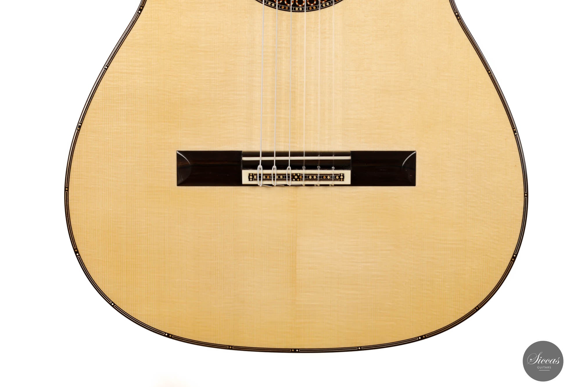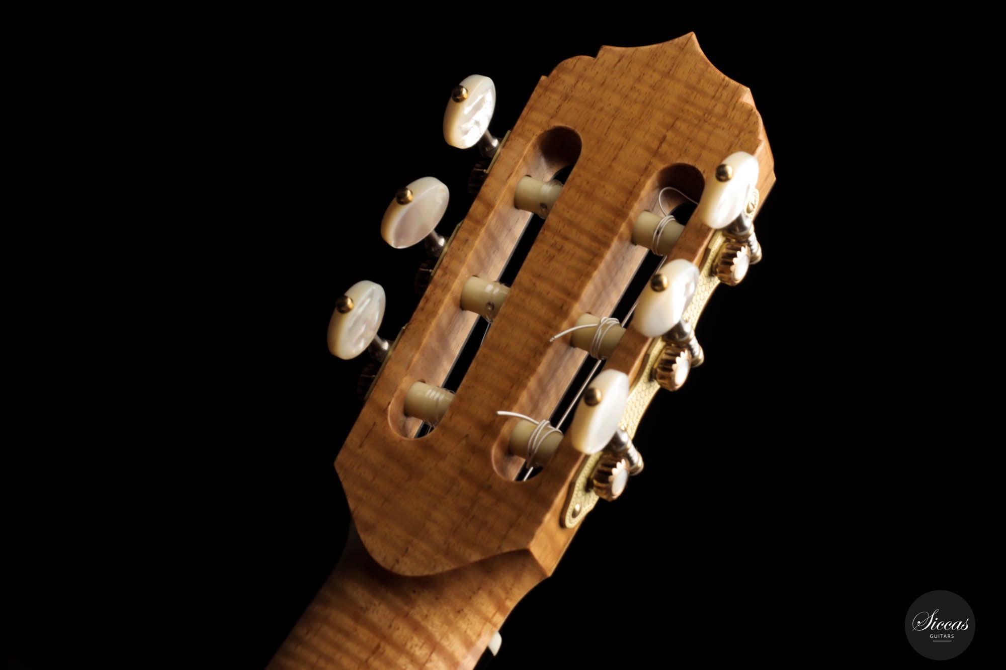 Unravel the unique characteristics of this guitar; a resonant Austrian spruce soundboard, striking Satinwood back, and sides, plus an enchanting flamed cedar neck. Its intricate headstock decoration takes inspiration from the 2005 Jose L. Romanillos masterpiece, "La Amistad". Adding a touch of opulence, the golden satinwood back is adorned with a replica of the Romanillos "La Adelita 1997" design.