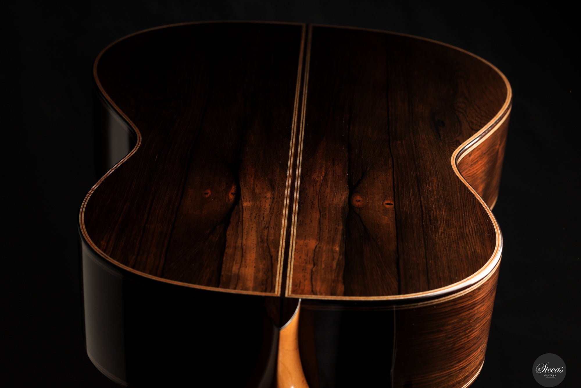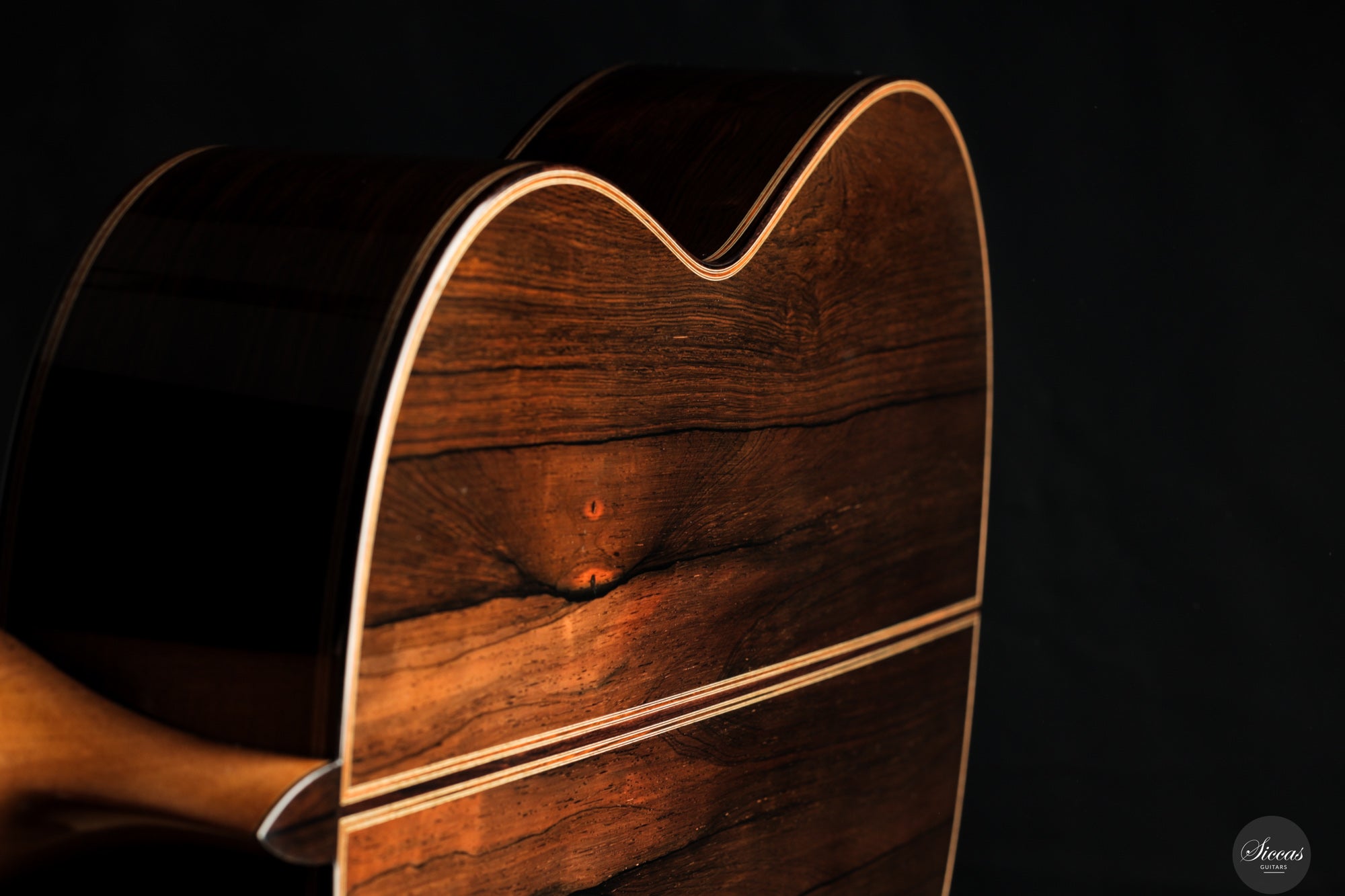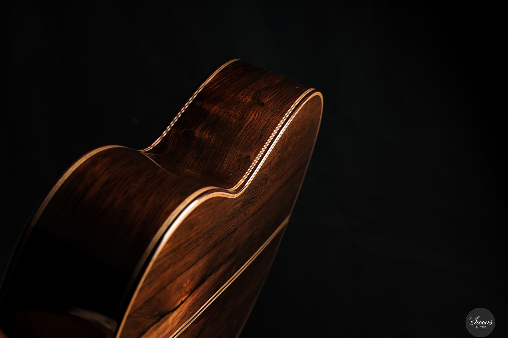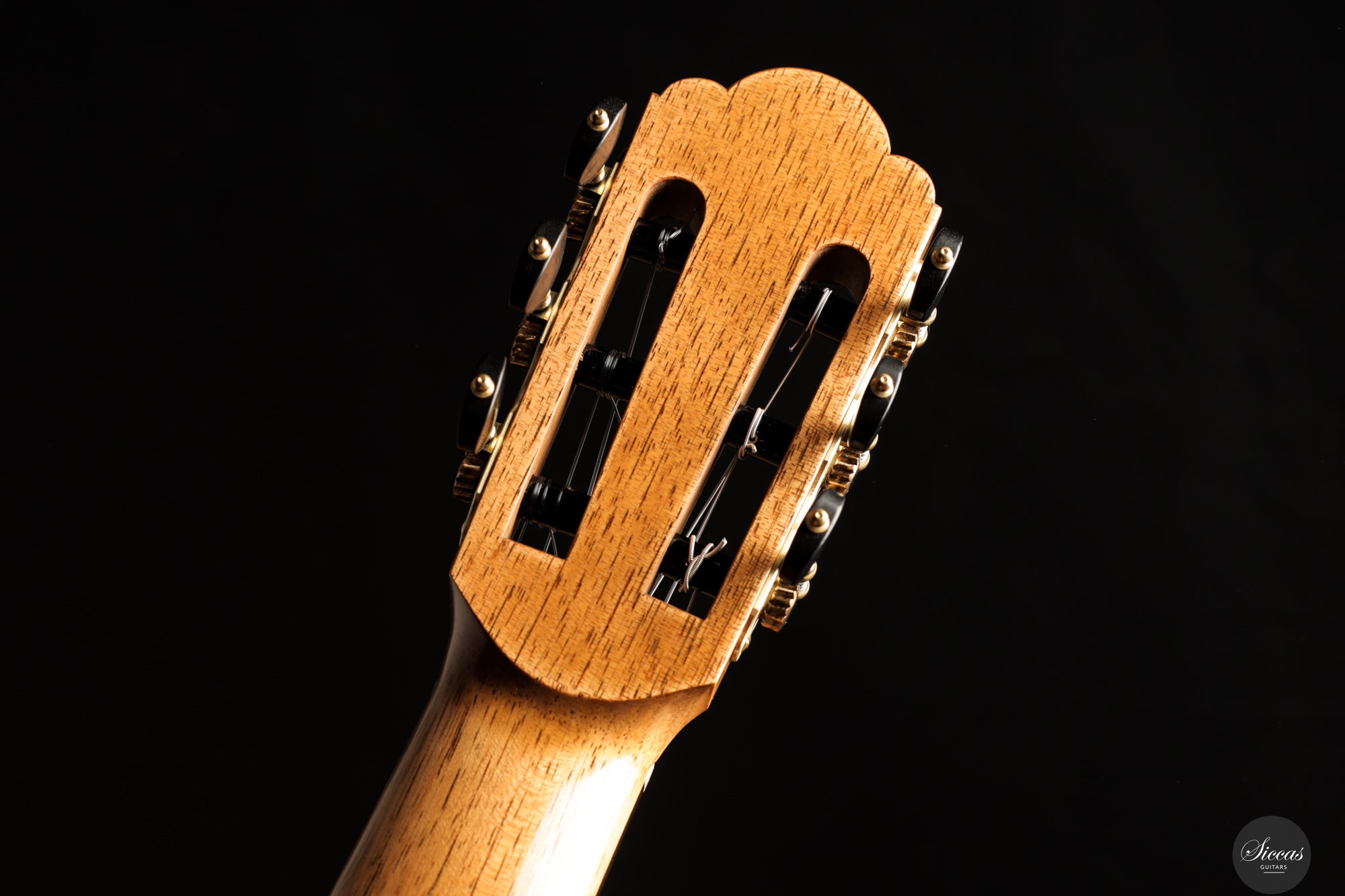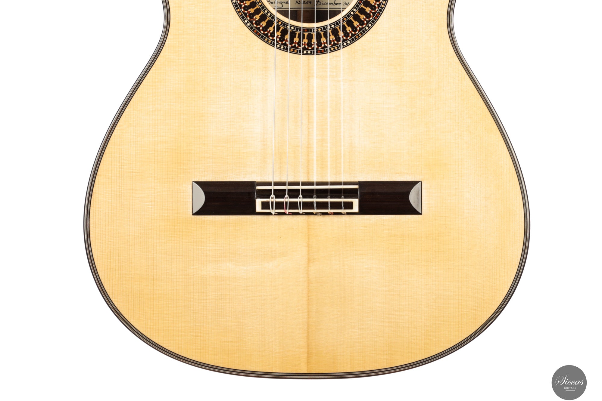 The tone reveals itself with clarity and ease. Each note emerges cleanly and carries a gentle bloom of soft overtones that lends the guitar a lyrical and expressive presence. The instrument breathes openly and reacts to the smallest variation of touch which allows vivid colour changes with minimal movement of the right hand. The Brazilian rosewood adds depth to the basses and a luminous quality to the trebles giving the guitar considerable range for shaping musical lines. The sustain is long and stable which allows melodies to unfold in a calm and unhurried way. Despite its generous projection the guitar preserves warmth, balance and refinement. It is a highly responsive concert instrument that rewards nuance and encourages expressive interpretation.