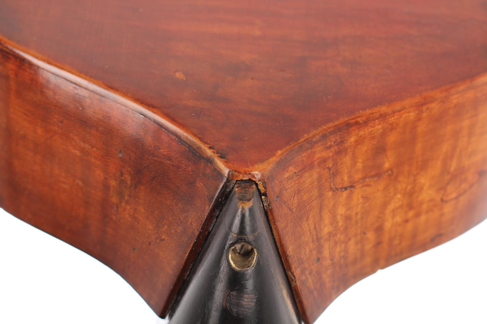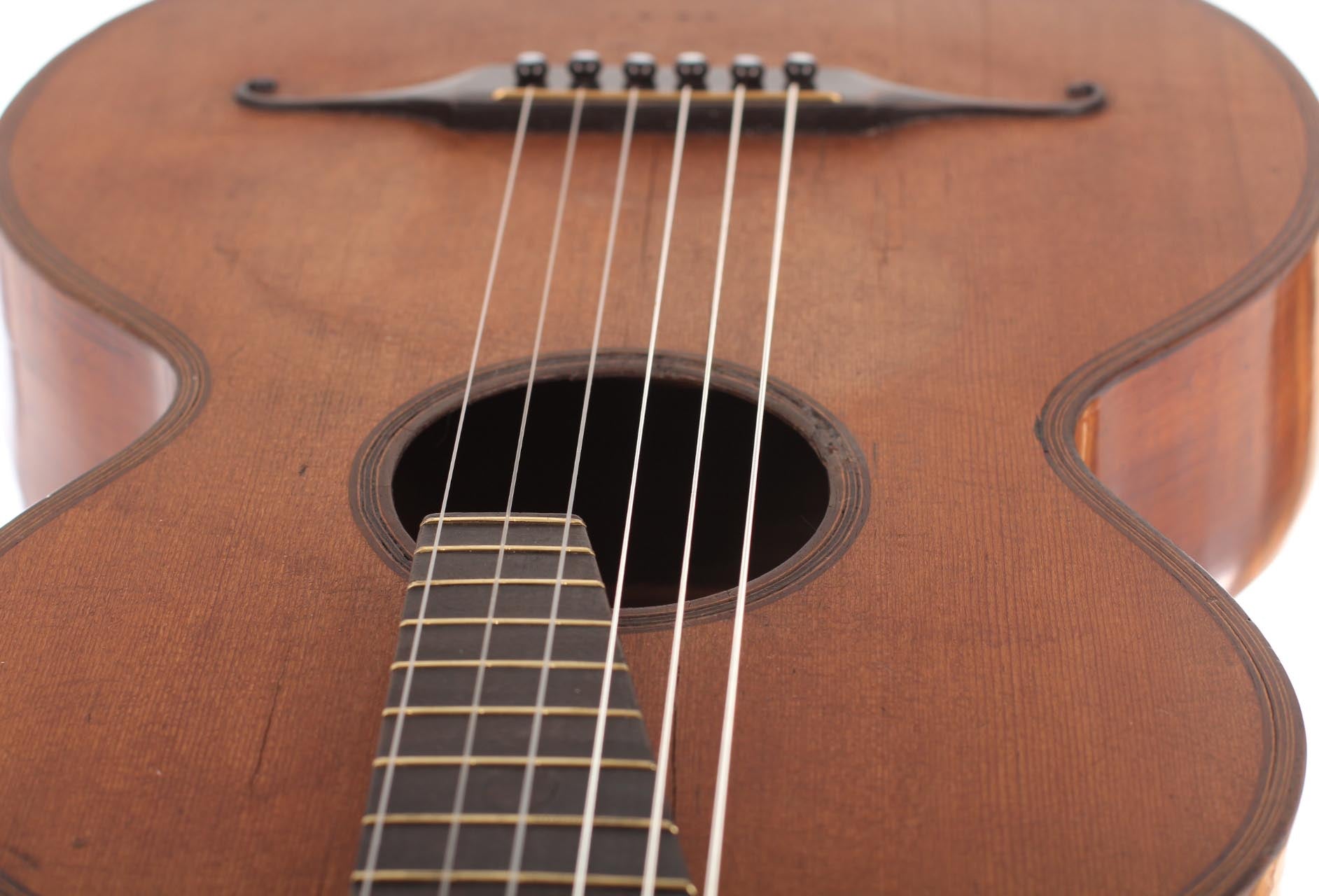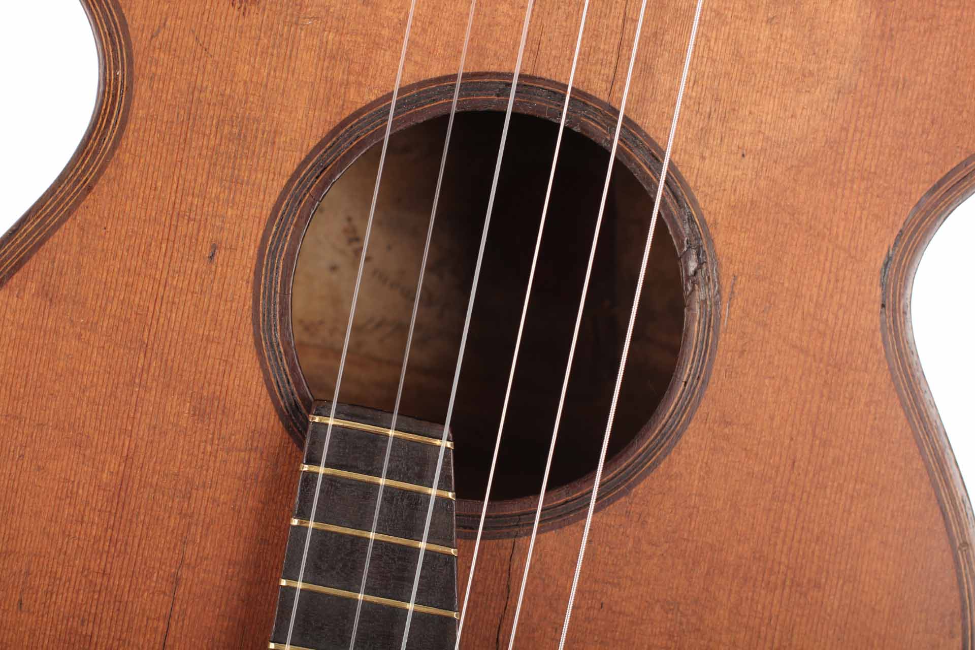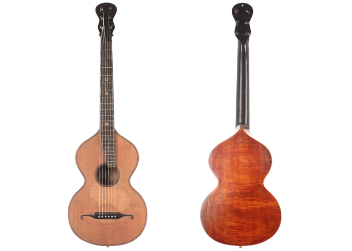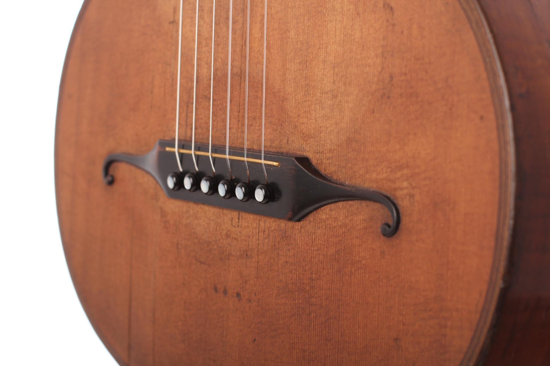 This wonderful guitar by Anton Stauffer & Comp., represents one of the models which were constructed by Stauffer with the reference “nach dem Modell des Luigi Legnani“ (=in accordance with the model by Luigi Legnani). This guitar was built in 1829 and has the serial no. 480. The top is made of spruce wood and has a matt finish. The guitar’s bridge is designed in a plain and modest manner and is a copy of an original bridge (made by Bernhard Kresse). The mother of pearl dots on the fretboard were added at some point in the past. The sides as well as the one-piece back are made of maple. It has some very well repaired cracks on the top and the sides. It is fully playable.