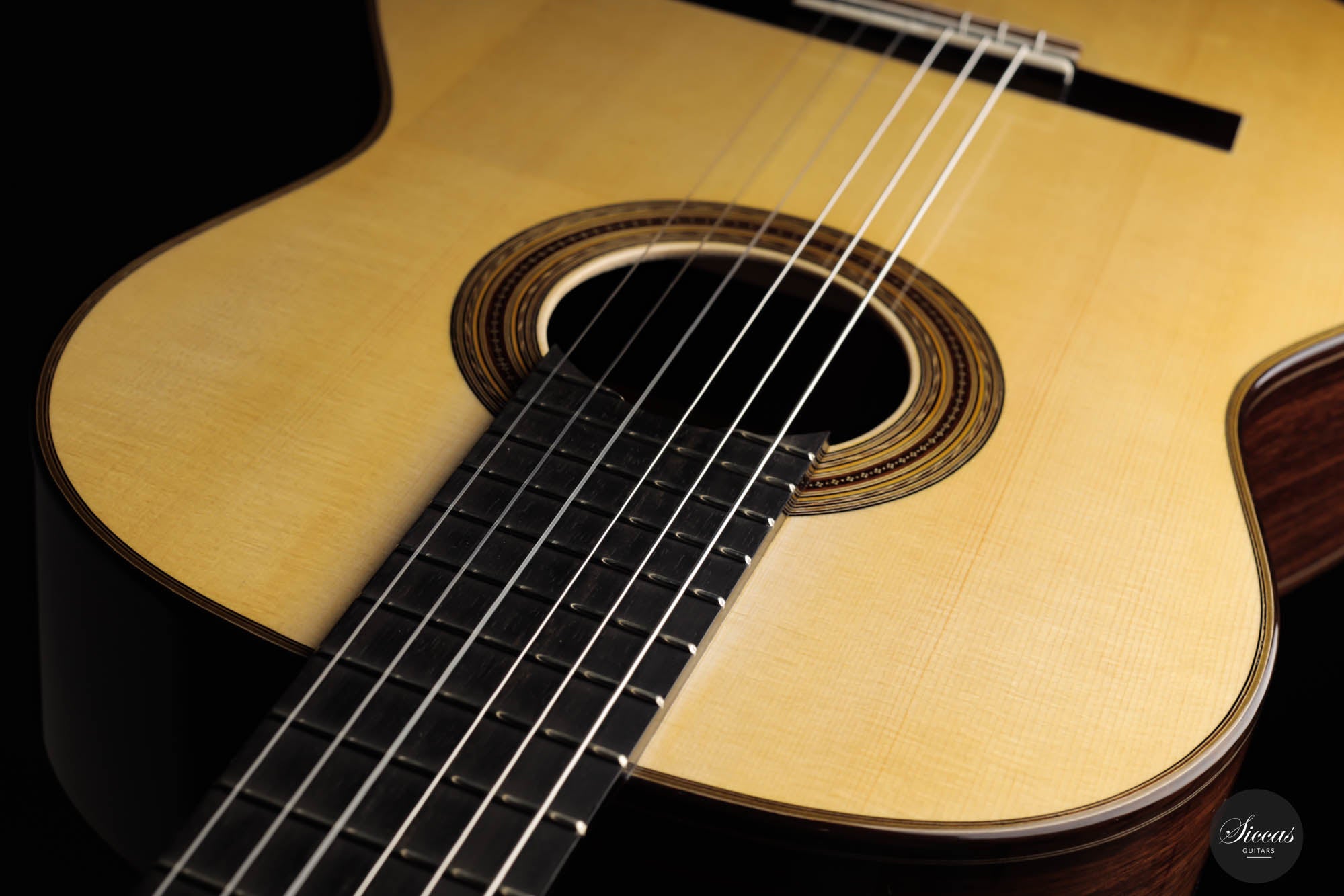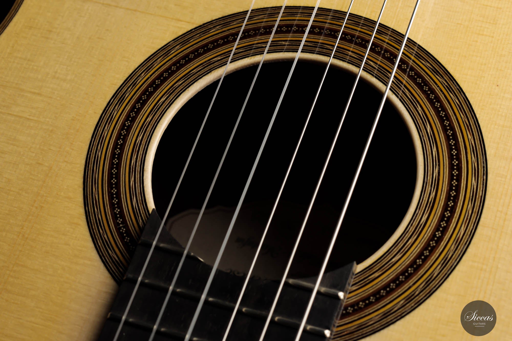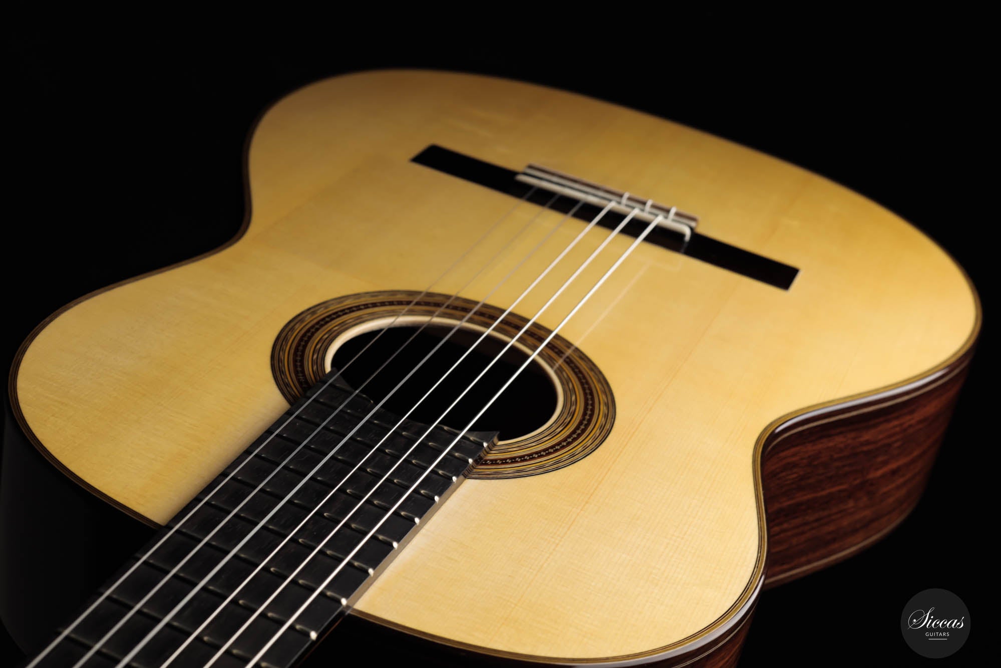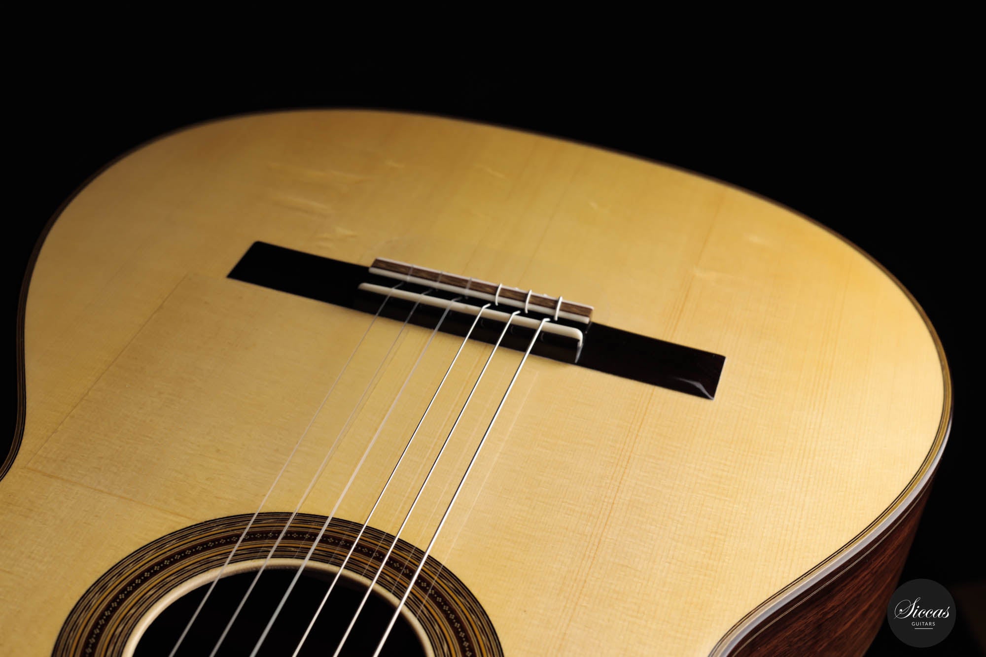 The 2023 Antonio Marchese Guitar No. 105 is a testimony to superior craftsmanship and acoustic brilliance. Constructed by the accomplished luthier Antonio Marchese, this guitar reflects an exquisite blend of traditional design and innovative acoustics. Featuring a stunning spruce top coupled with Indian rosewood back and sides, the instrument shines in both aesthetics and tonal quality. One standout attribute of the 2023 Antonio Marchese Guitar no. 105 is its exceptional French polish. Marchese's expertise in this technique is evident in the flawless finish, adding to the visual allure of the instrument. This meticulous detailing truly speaks volumes about Marchese's commitment to excellence and his mastery of the craft. Built on a traditional 7 fan brace design, this guitar embodies Marchese's personal vision of the perfect guitar sound. Its main resonance is in the F# range, resulting in deep, dark bass tones that beautifully complement the very singing and melodious trebles. This balance provides an enriching and expressive sound palette, offering guitarists a versatile instrument for various playing situations. In summary, the 2023 Antonio Marchese Guitar no. 105 exemplifies top-tier luthiery, marrying stunning visuals with superior sound quality. Its intricate design and remarkable acoustics make it an ideal choice for discerning guitarists, further cementing Antonio Marchese's status as a leading figure in guitar-making.