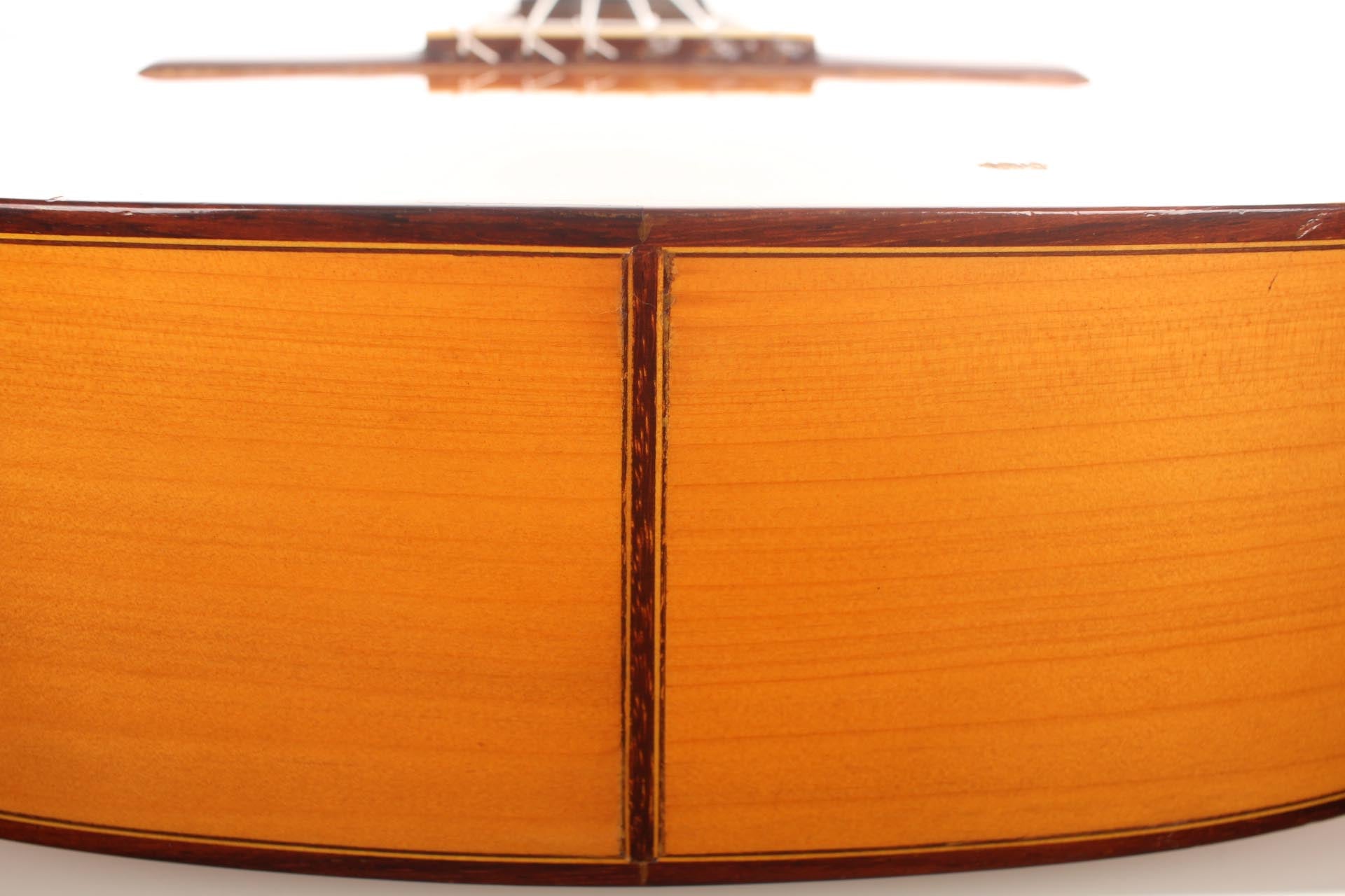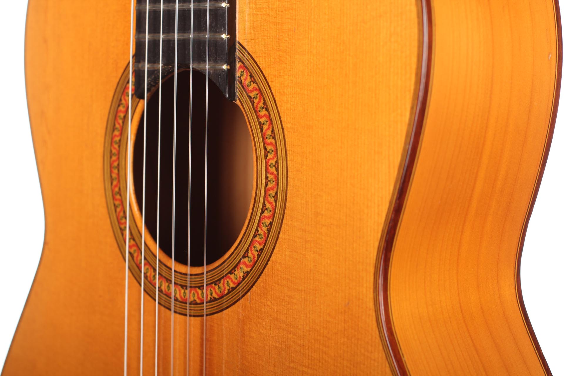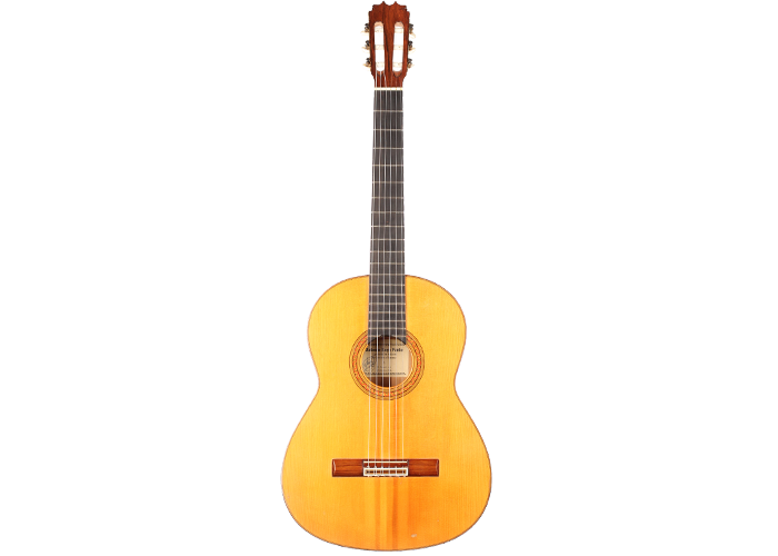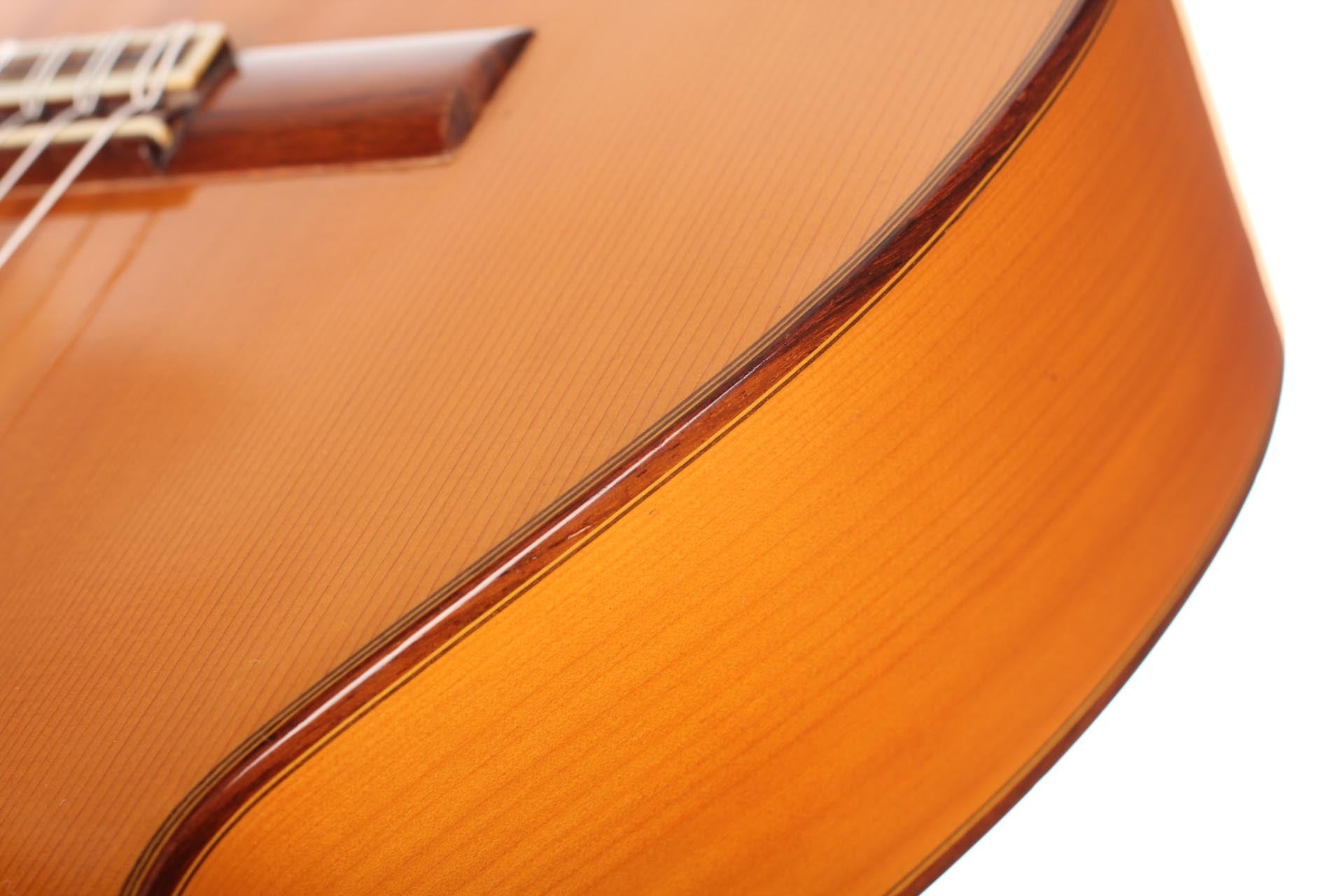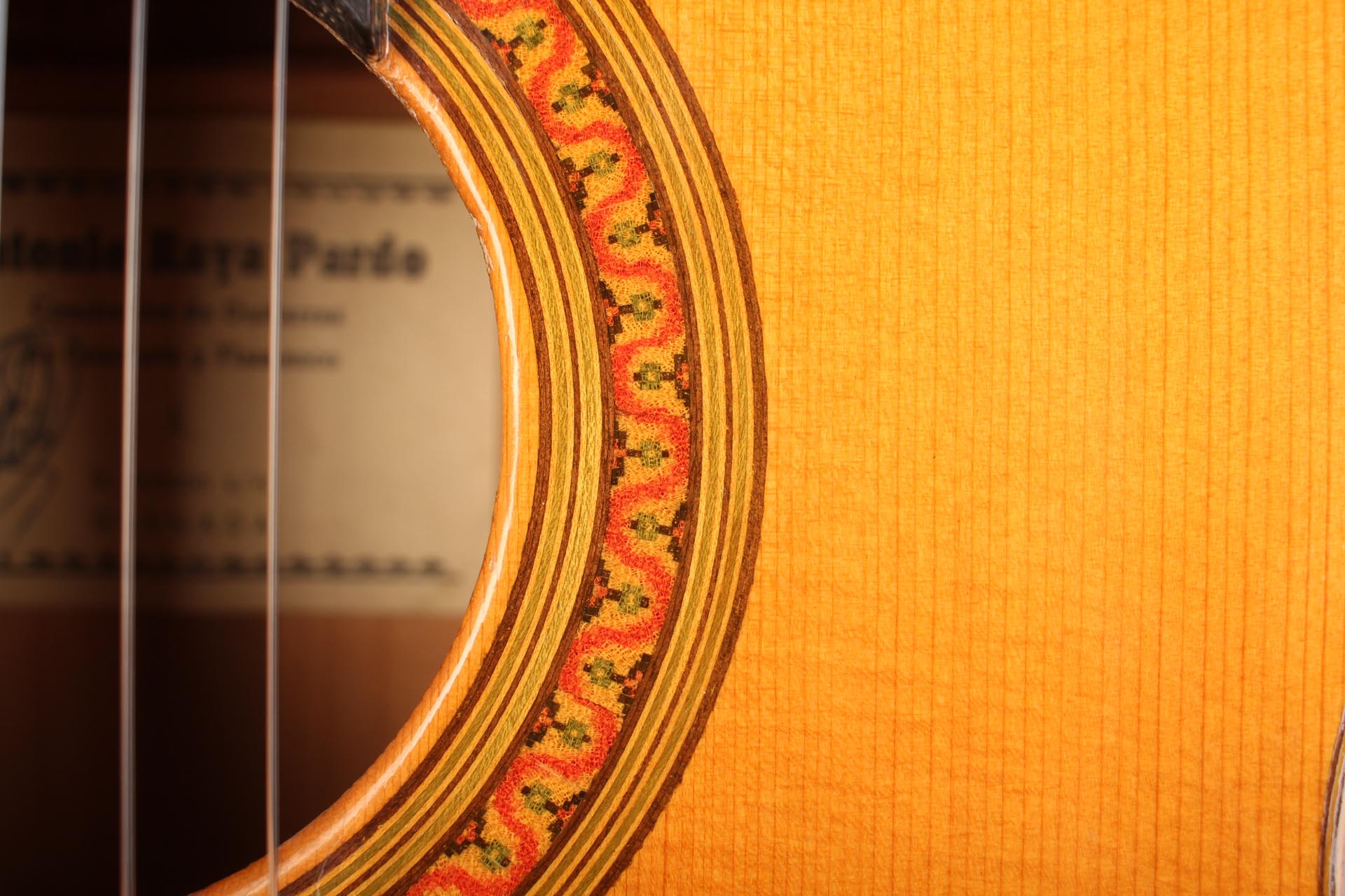 Antonio Raya Pardo was born in Huelva in 1950. At the age of 14, his family moved to Granada where he first worked as a weaver. After that time, he apprenticed to Eduardo Ferrer and later, also for a short period, to José Lopez Bellido. In 1973 he opened his own workshop. Today, he shares the workshop with his son Antonio Raya Ferrer. This traditional flamenco guitar was built in 1975. The top is made of spruce and back and sides are made of cypress wood. The whole guitar is French-polished. This flamenco guitar has a genuine flamenco sound with a very strong basses and a penetrating crisp treble. This is a real professional quality guitar that is suitable for solo performance and dance accompaniment.