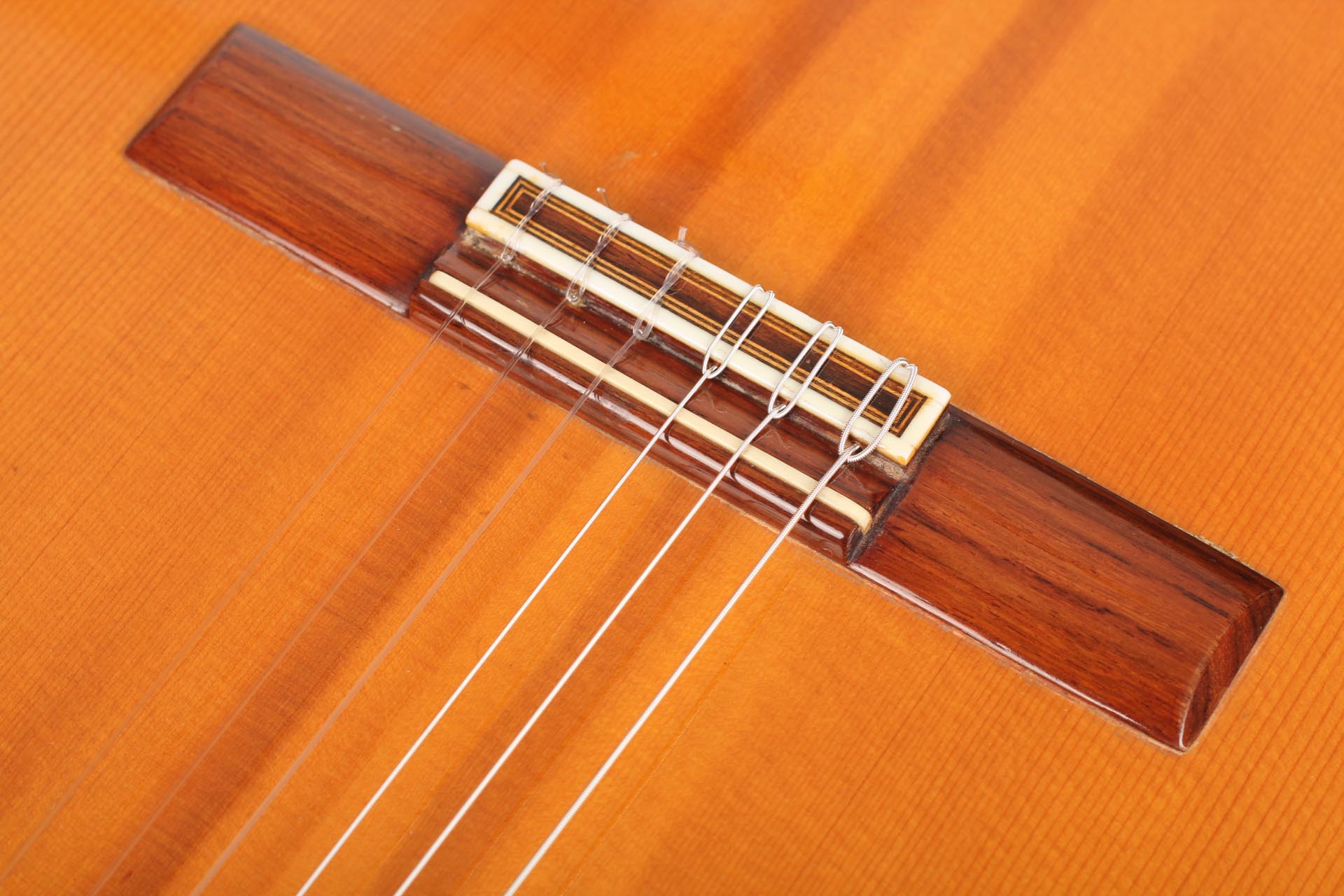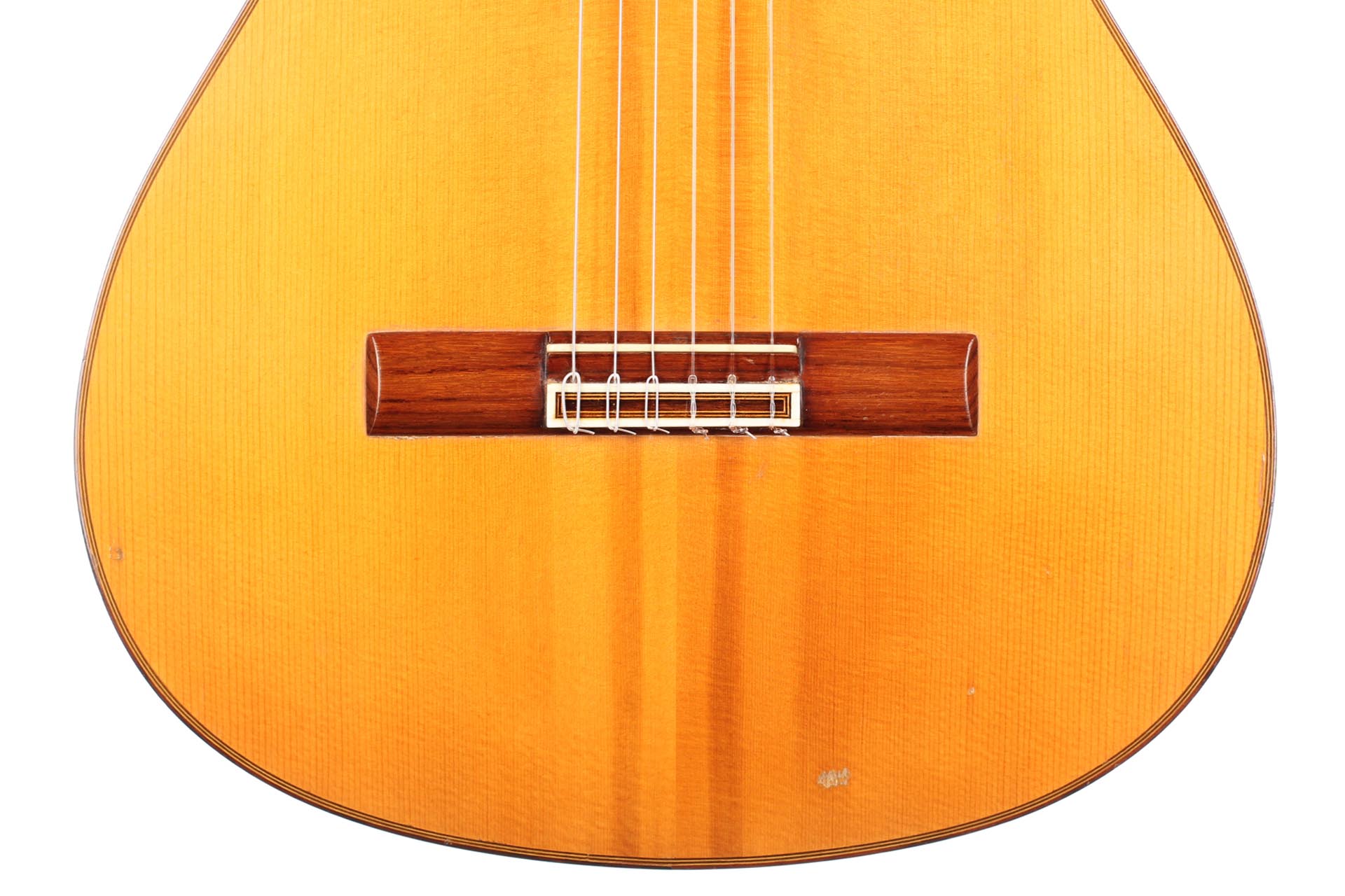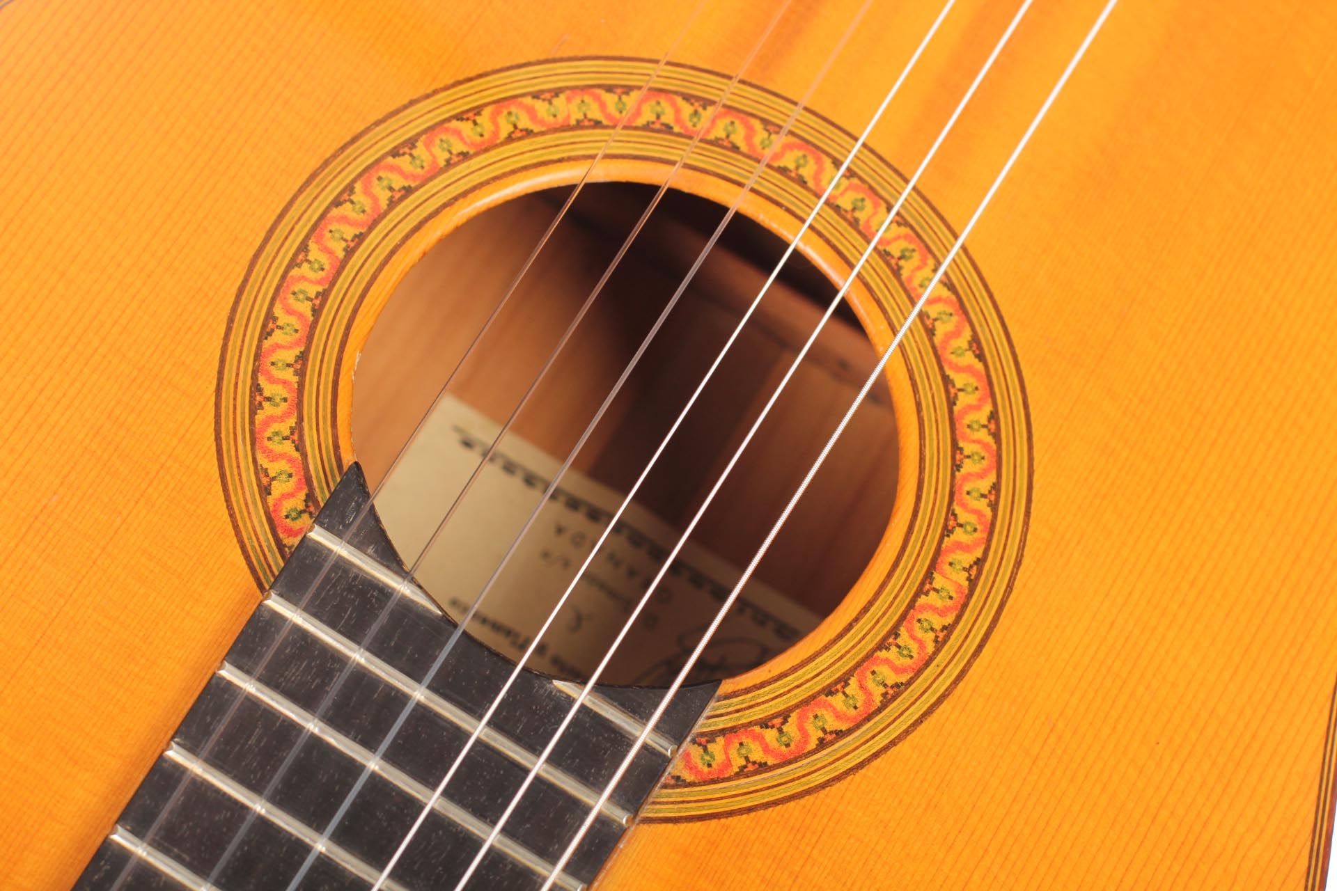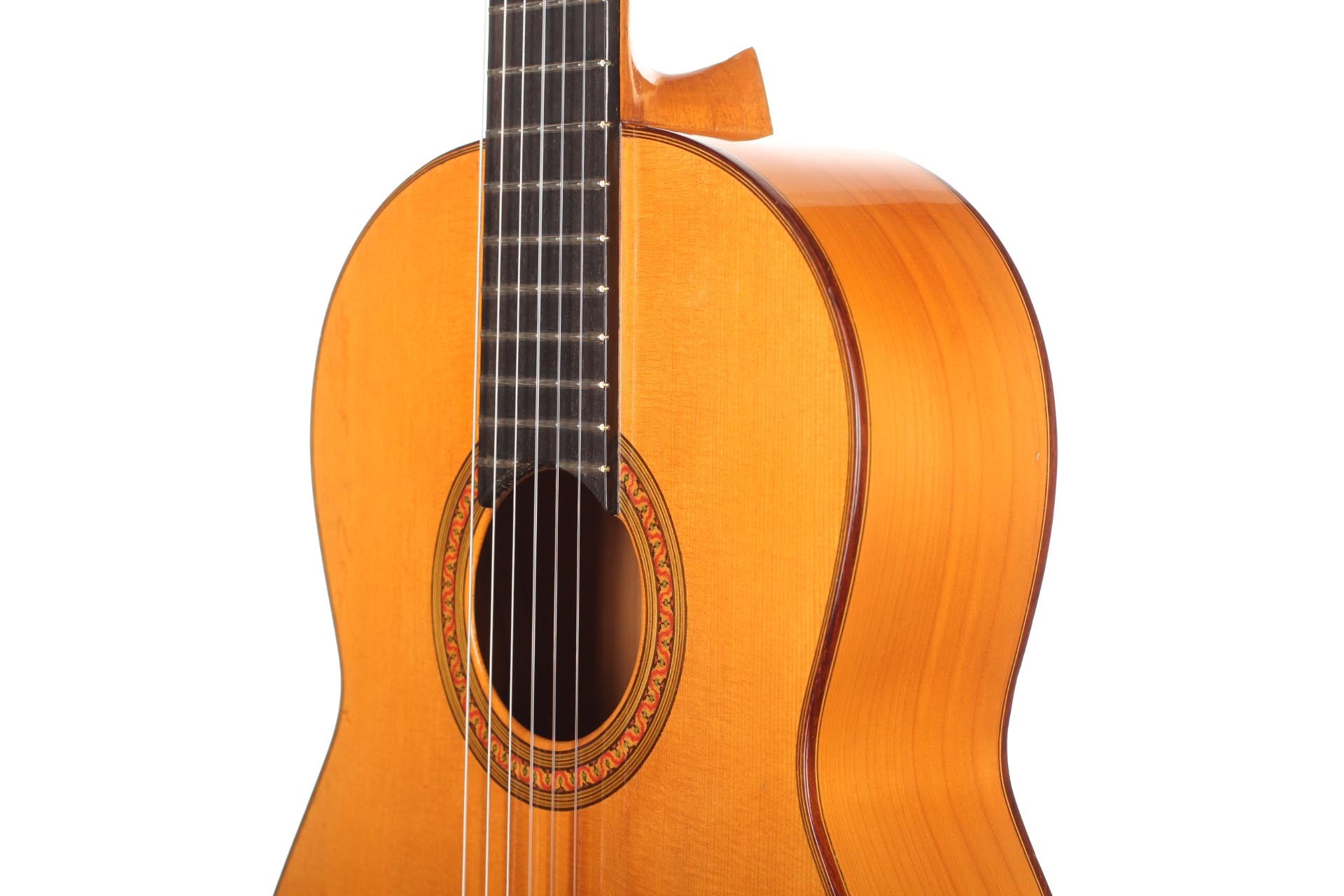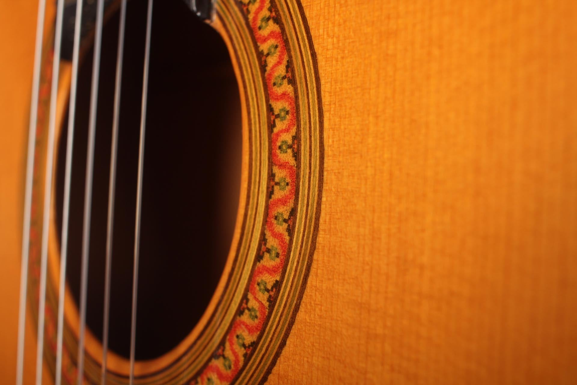 Antonio Raya Pardo was born in Huelva in 1950. At the age of 14, his family moved to Granada where he first worked as a weaver. After that time, he apprenticed to Eduardo Ferrer and later, also for a short period, to José Lopez Bellido. In 1973 he opened his own workshop. Today, he shares the workshop with his son Antonio Raya Ferrer. This traditional flamenco guitar was built in 1975. The top is made of spruce and back and sides are made of cypress wood. The whole guitar is French-polished. This flamenco guitar has a genuine flamenco sound with a very strong basses and a penetrating crisp treble. This is a real professional quality guitar that is suitable for solo performance and dance accompaniment.