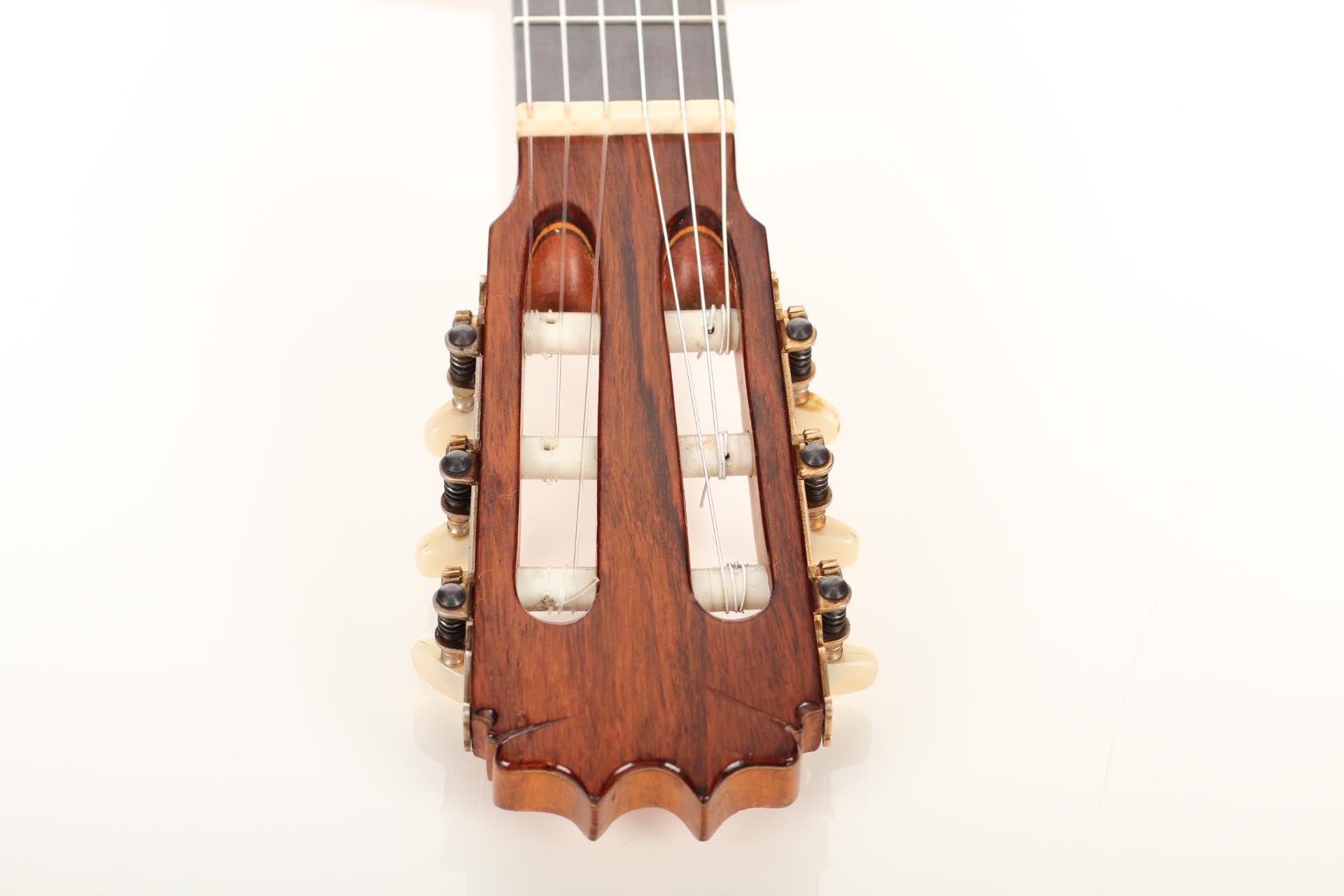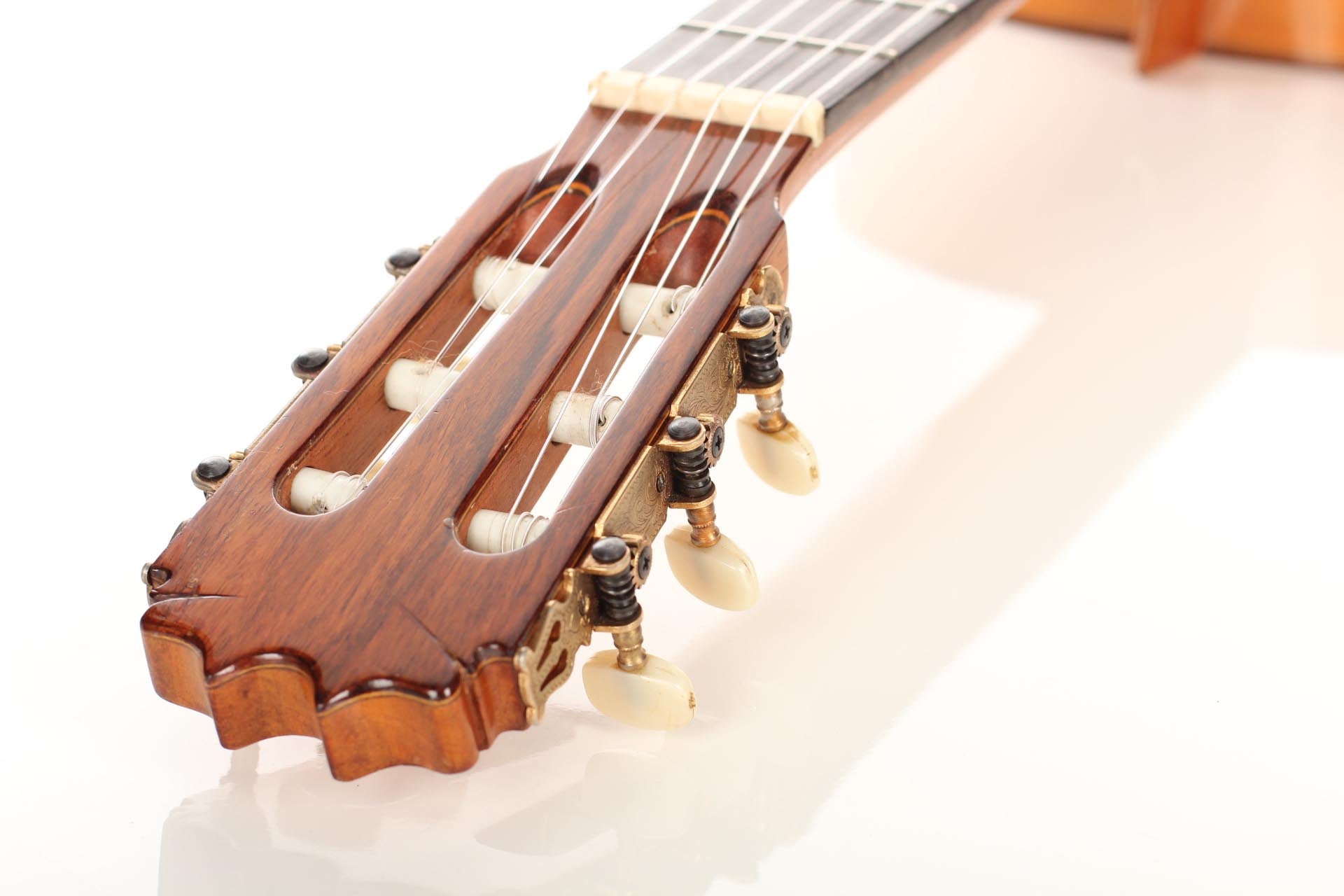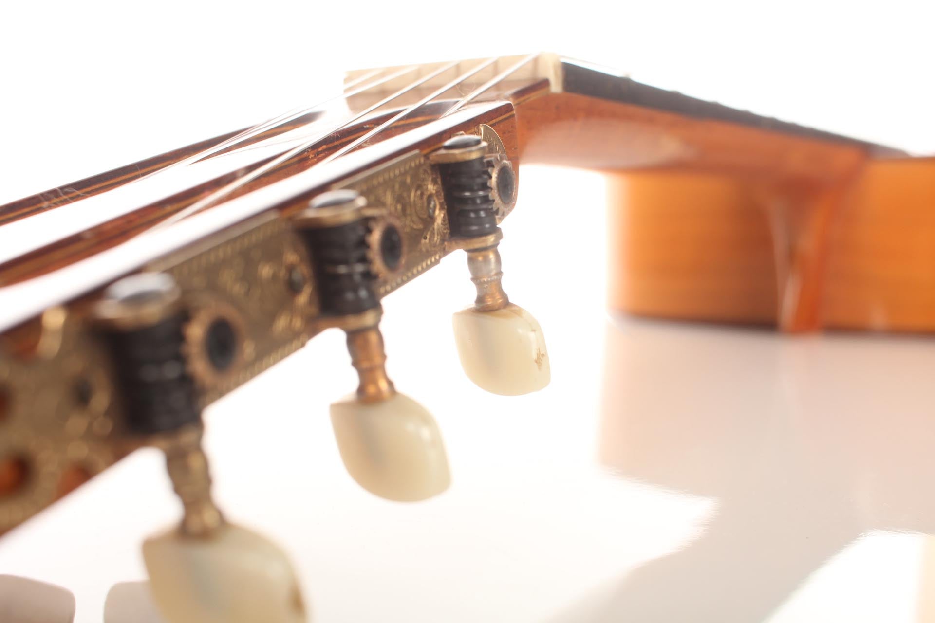 The tuners are made by Fustero. There are some play marks but no cracks at all. A hard-shell case is included.