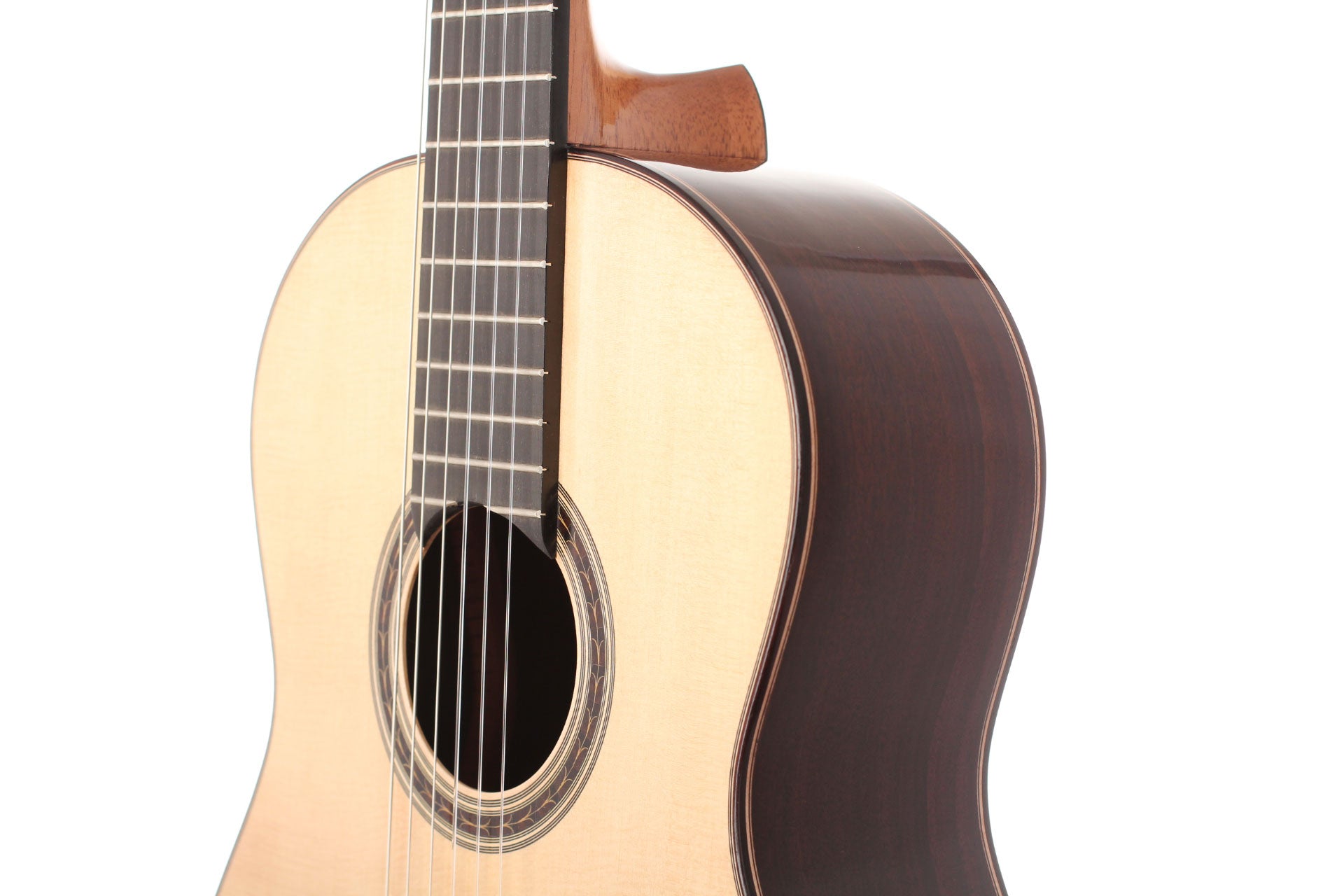 The classical guitar, with its soft nylon strings and characteristic timbre, has become a symbol of chamber music, Spanish tradition, and concert repertoire. Its modern form was shaped by Antonio de Torres in the 19th century, setting the standard for the body, fan bracing, and the 65-centimeter scale length that are still used today. Instruments in this category open up a rich palette from the refined Romantic miniatures of Tárrega to the majestic concertos of Rodrigo. Here you will find guitars that preserve historical continuity and at the same time inspire new interpretations.Look all products of the collection -