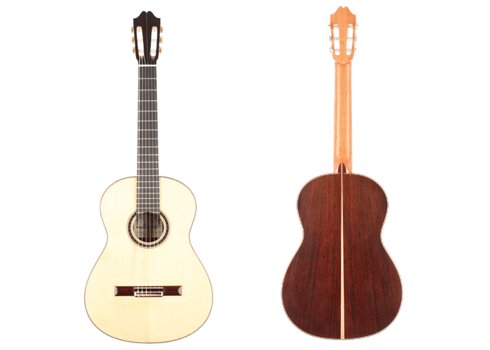 Price on requestLuthier: Fritz OberConstruction Year: 2019Construction Type: TraditionalTop: SpruceBack and Sides: Brazilian rosewood (CITES certified)Soundboard Finish: French polishBody Finish: French polishAir Body Frequency: C sharp / DWeight (g): 1345Tuner: Klaus SchellerCondition: Excellent -