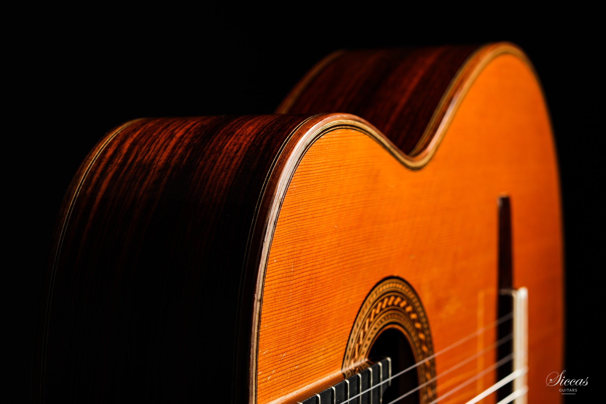 It is incredible how little effort one needs to put into the right hand when playing this guitar, in order to produce a room-filling tone, so that the player has the feeling to be completely surrounded by the sound of this instrument. It convinces by a warm dark character and very good separation of the voices. In addition, the balance between bass and treble is also consistently even. A really wonderful and inspiring instrument that brings a lot of satisfaction and supports the player in every respect.