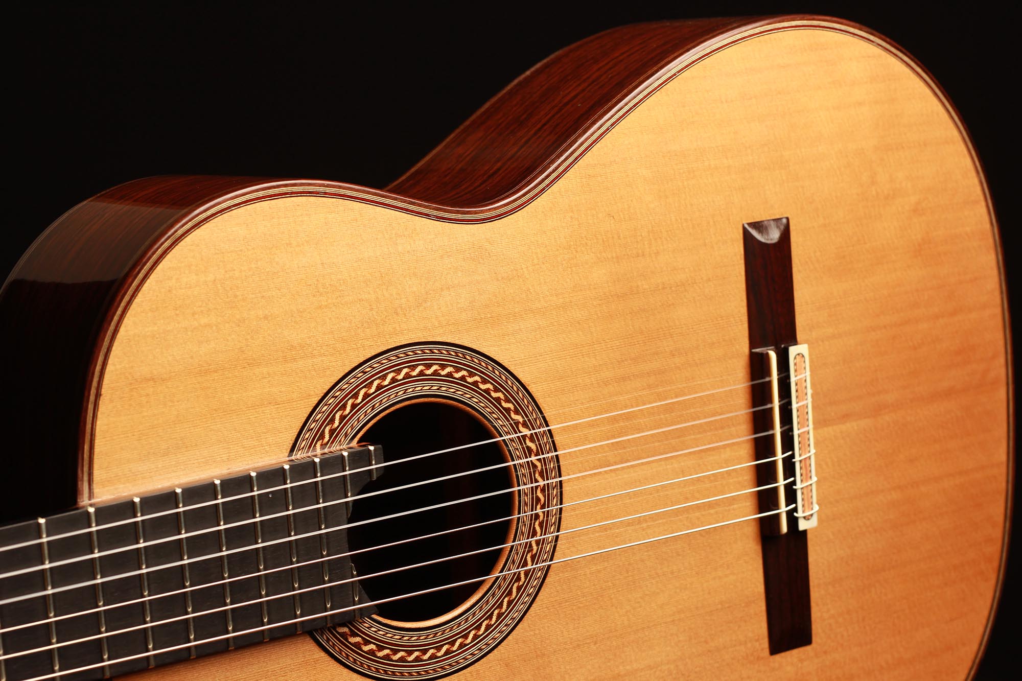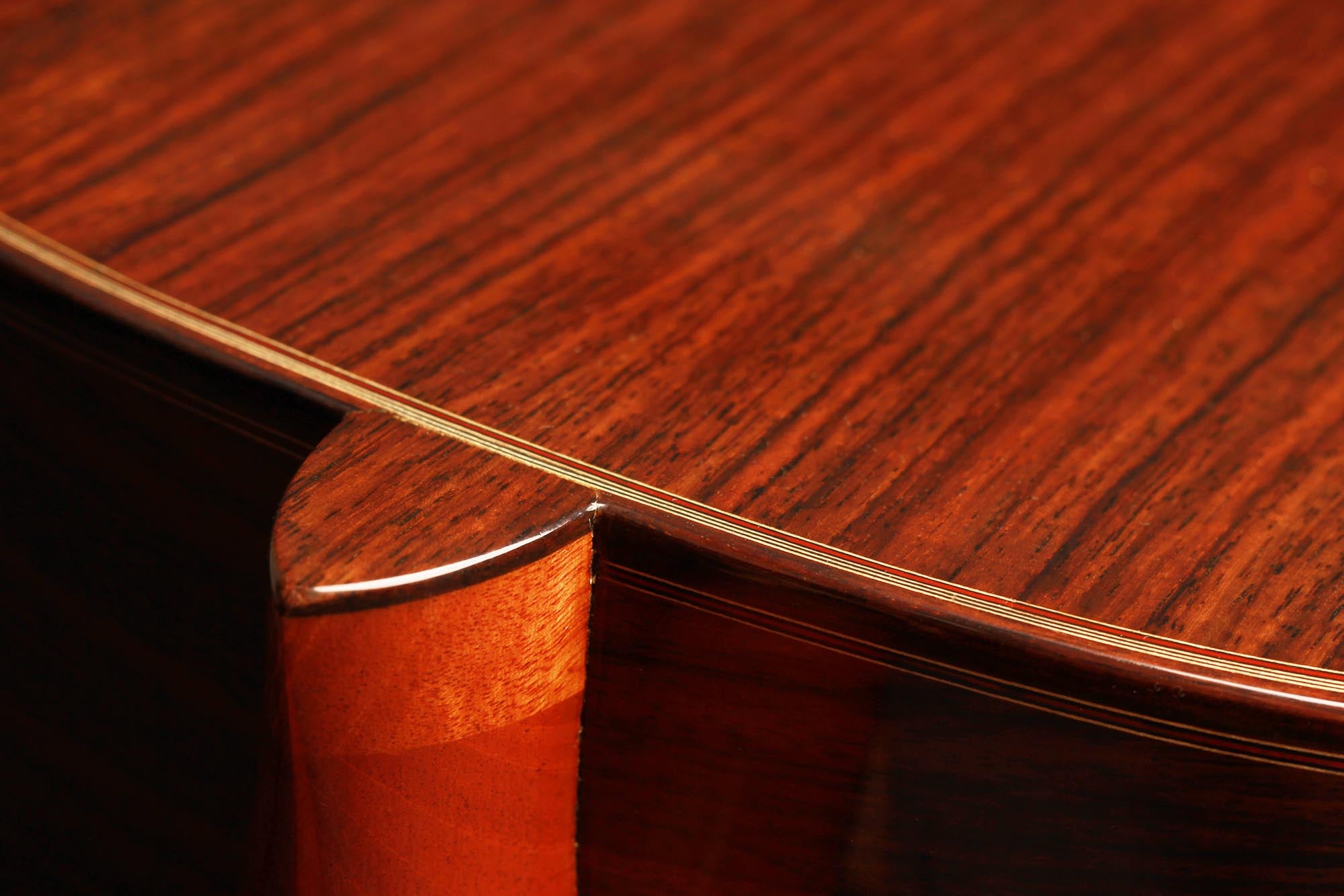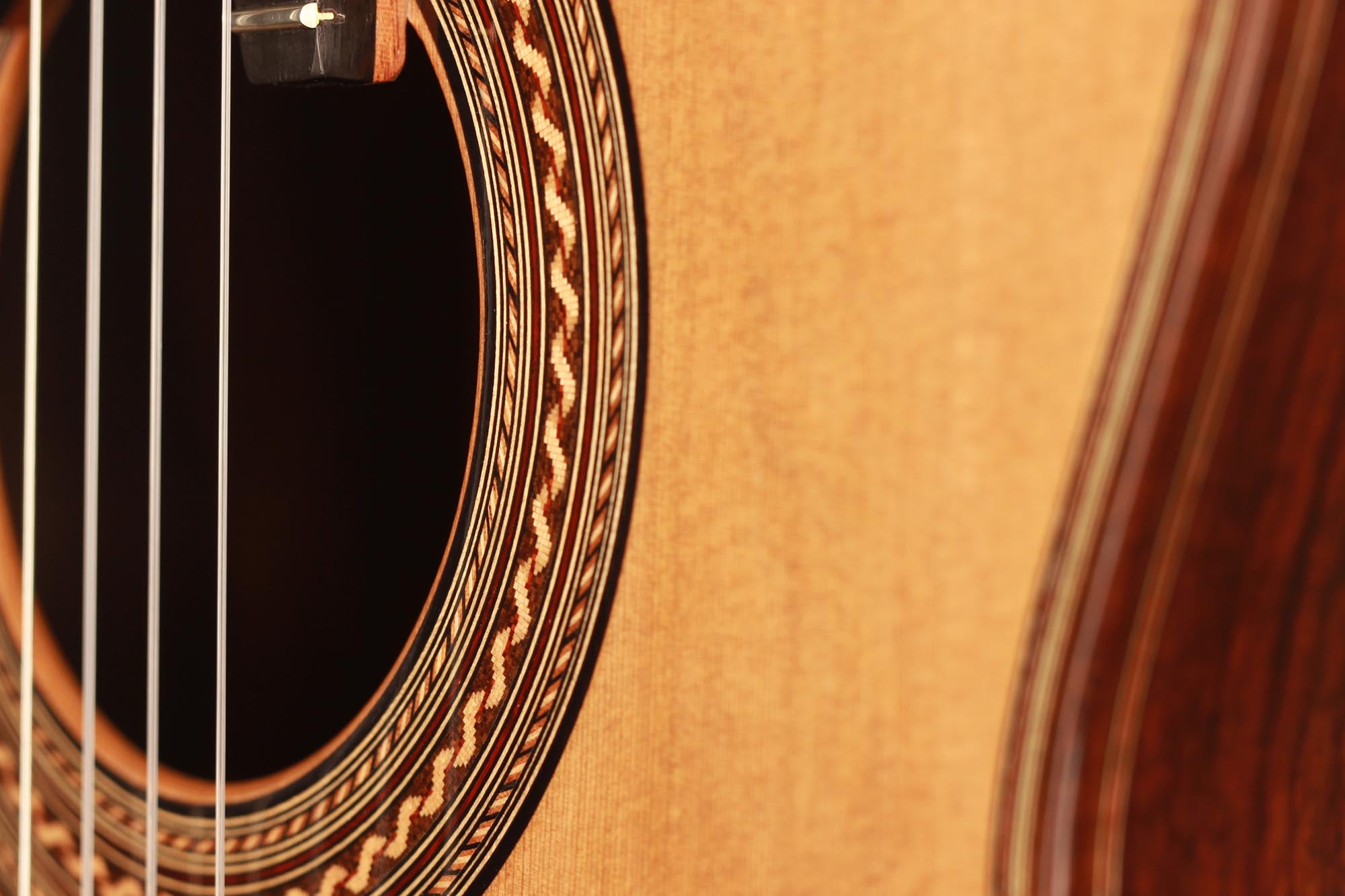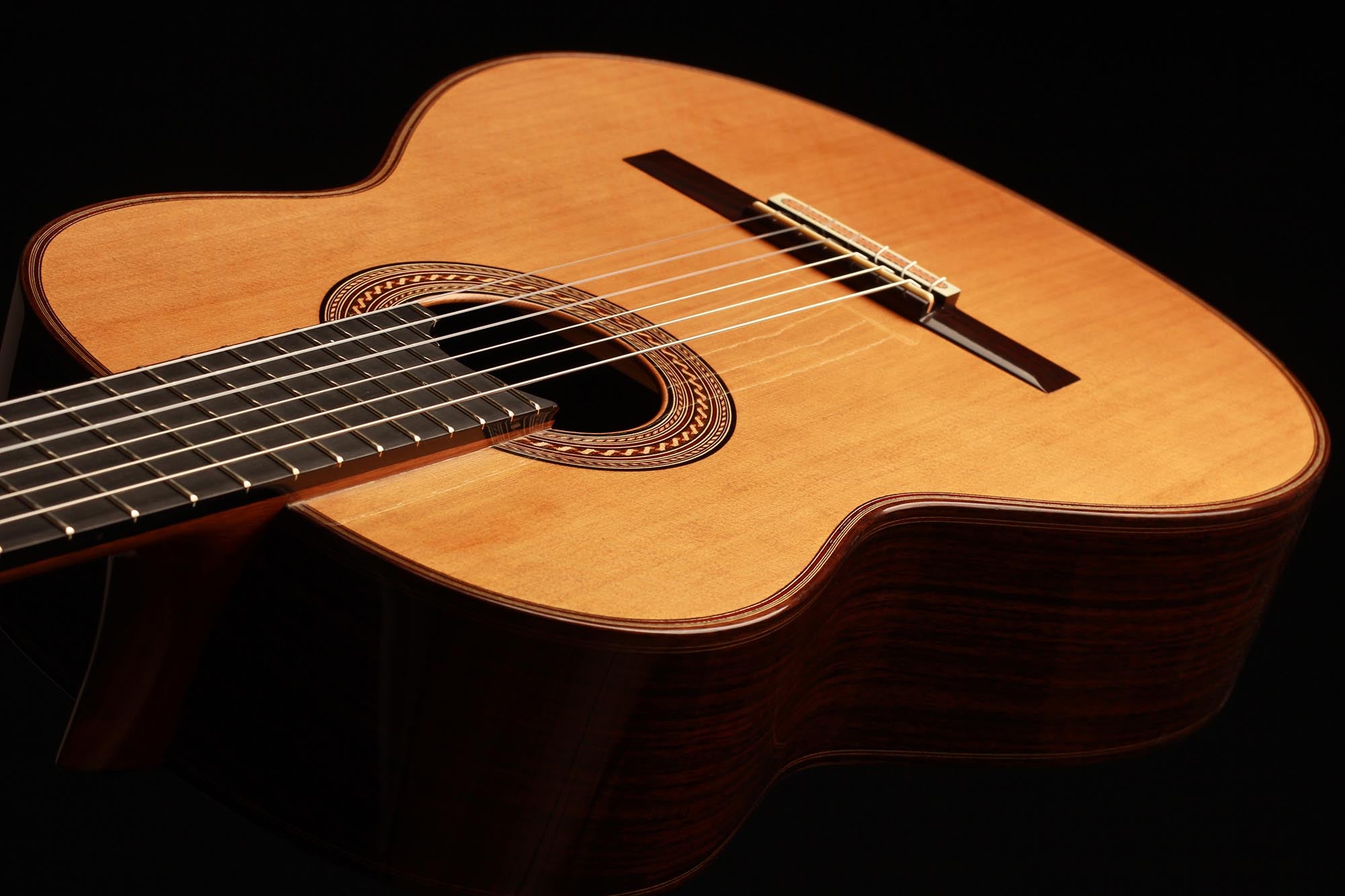 It is astonishing how little effort one needs to put into the right hand when playing this guitar, in order to produce a room-filling tone, so that the player has the feeling to be completely surrounded by the sound of this instrument. It convinces by a warm dark character and very good separation of the voices. In addition, the balance between bass and treble is also consistently even. A really wonderful and inspiring instrument that brings a lot of satisfaction and supports the player in every respect.