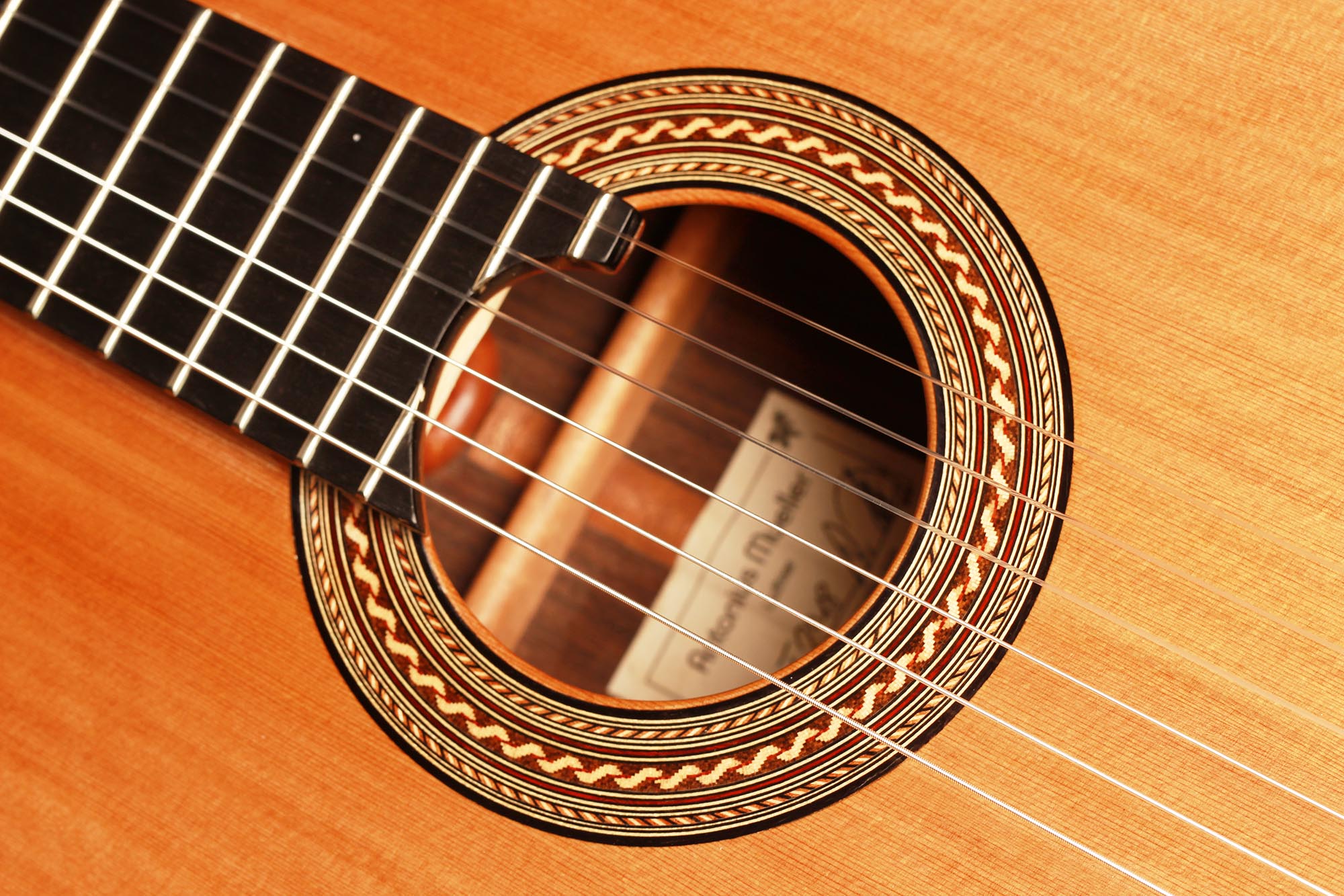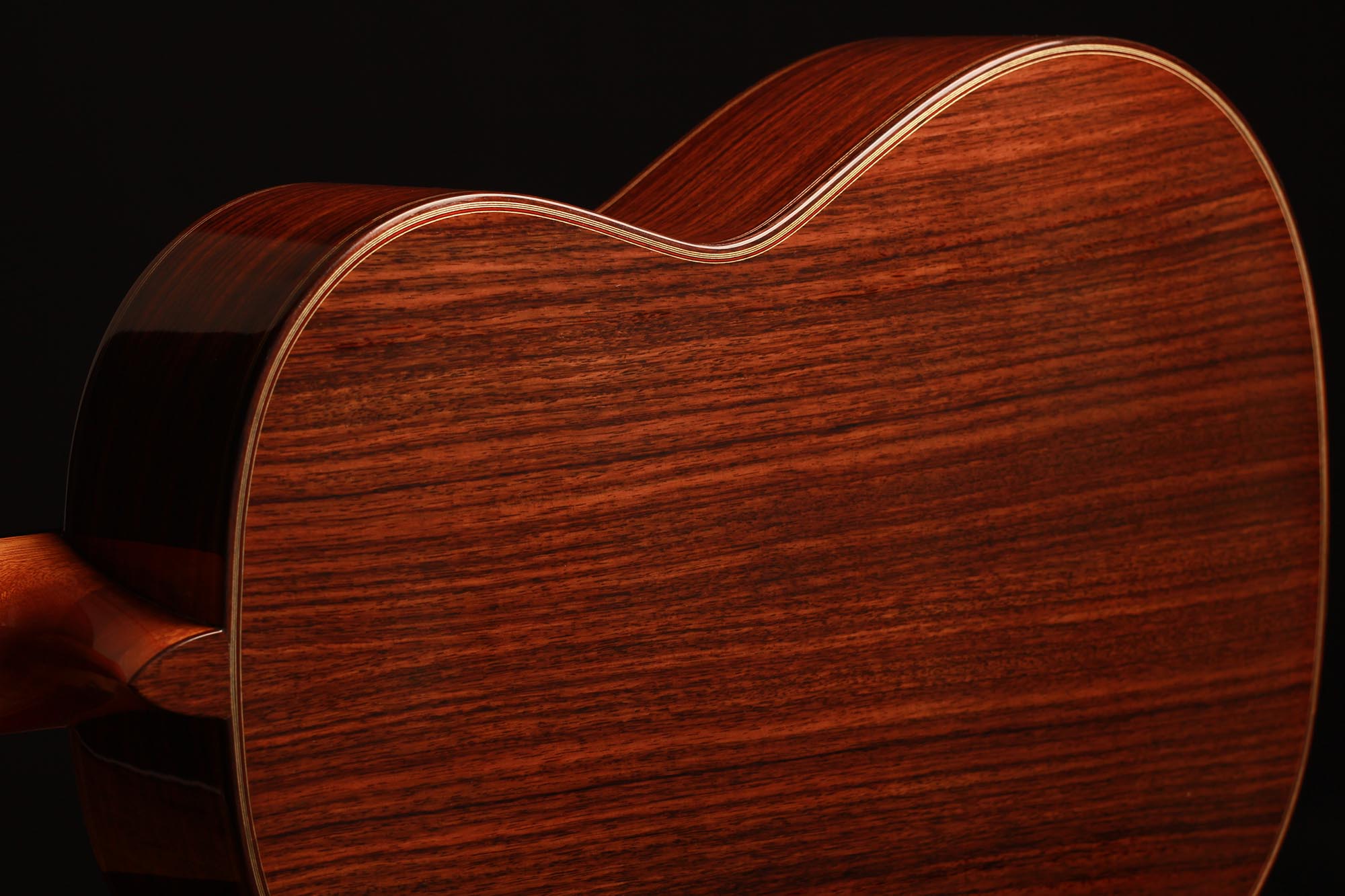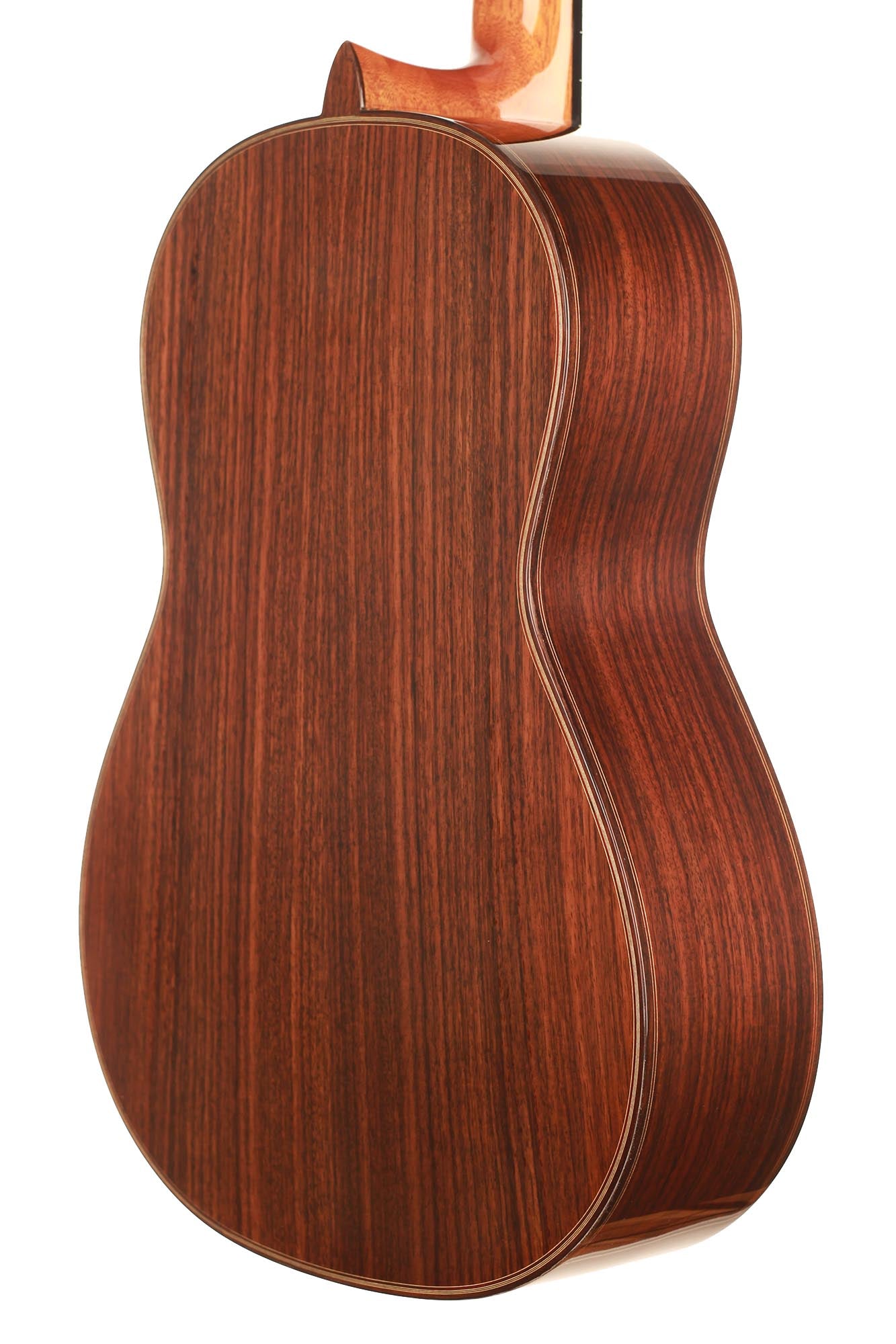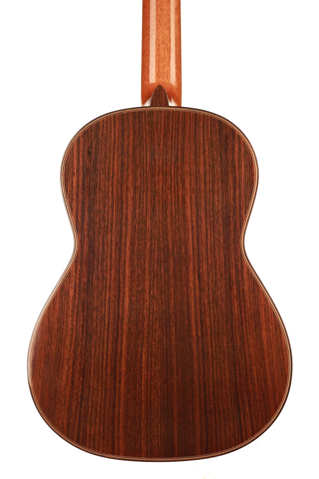 It is astonishing how little effort one needs to put into the right hand when playing this guitar, in order to produce a room-filling tone, so that the player has the feeling to be completely surrounded by the sound of this instrument. It convinces by a warm dark character and very good separation of the voices. In addition, the balance between bass and treble is also consistently even. A really wonderful and inspiring instrument that brings a lot of satisfaction and supports the player in every respect.