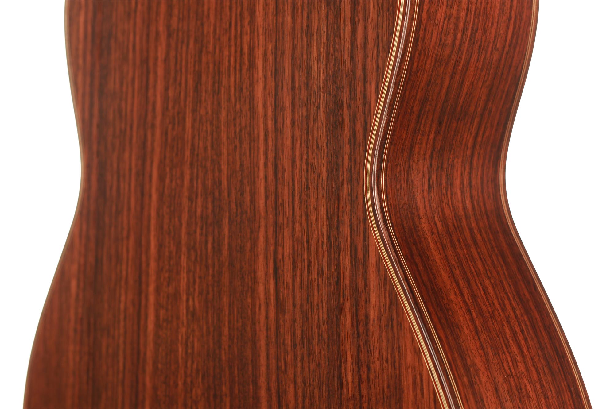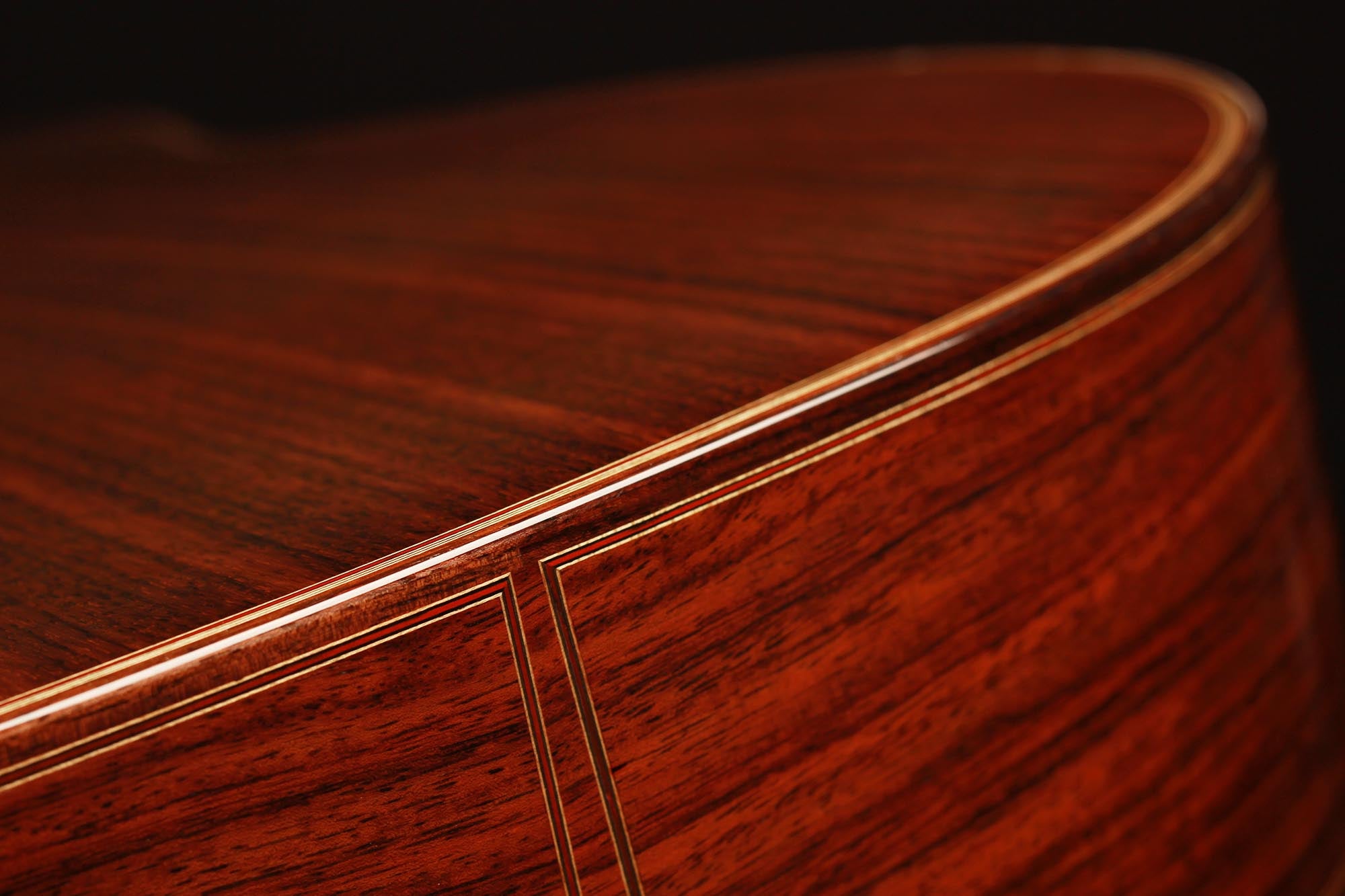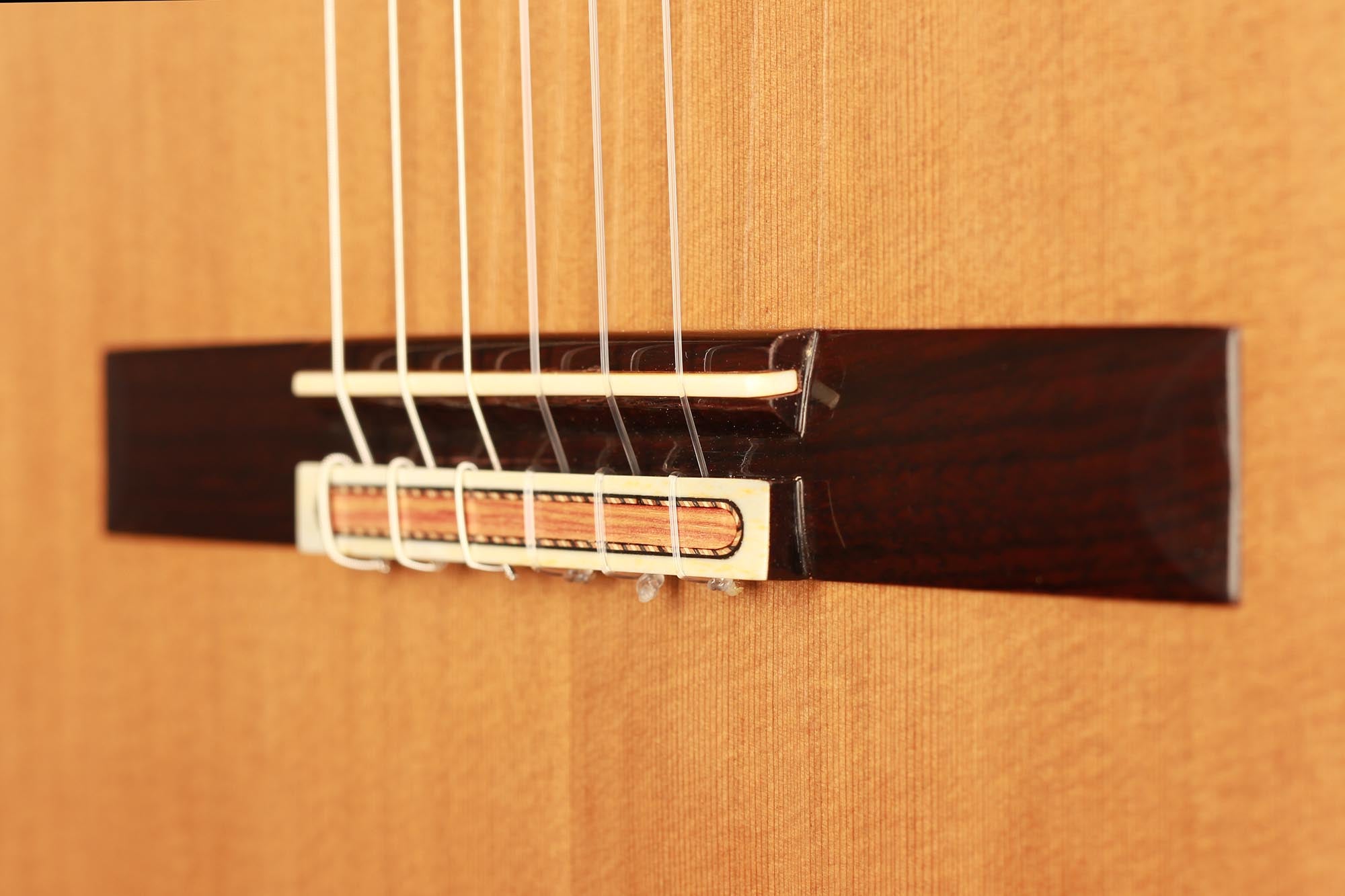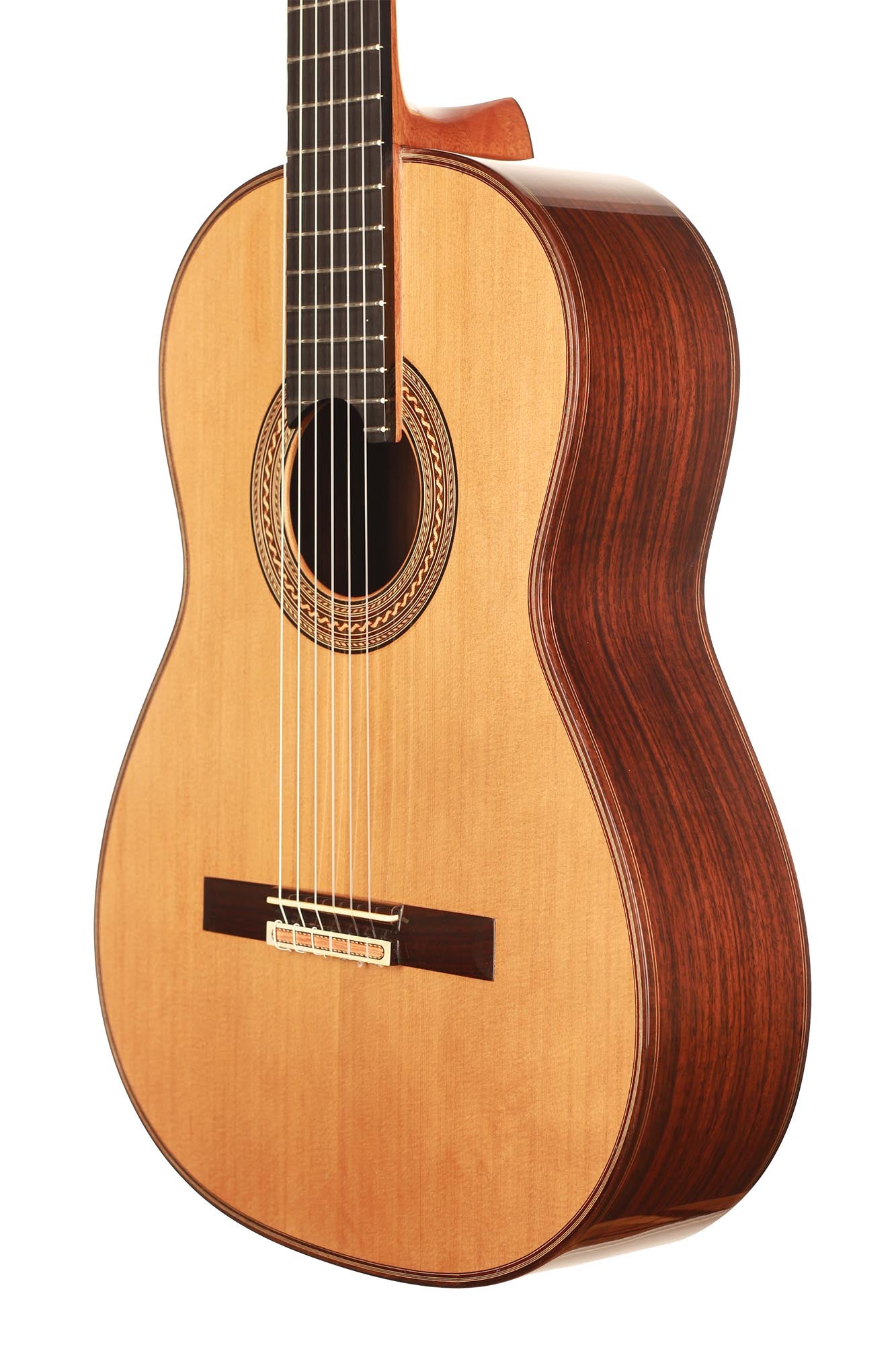 It is astonishing how little effort one needs to put into the right hand when playing this guitar, in order to produce a room-filling tone, so that the player has the feeling to be completely surrounded by the sound of this instrument. It convinces by a warm dark character and very good separation of the voices. In addition, the balance between bass and treble is also consistently even. A really wonderful and inspiring instrument that brings a lot of satisfaction and supports the player in every respect.
