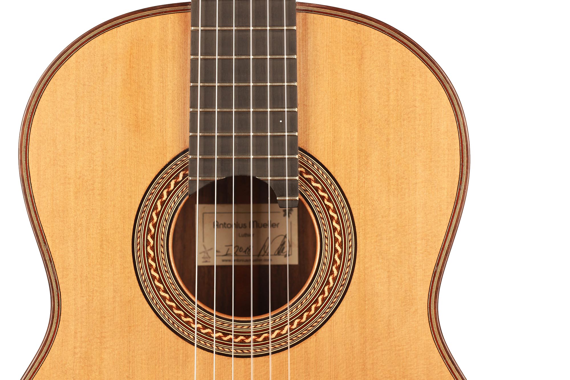 Antonius Müller was born in 1960 in Taunus. After finishing secondary school in 1976, he began a three-year apprenticeship with Dieter Hopf under the guidance of Dragan Musulin and concluded it in 1979. After completing his military service, he returned to work for Dieter Hopf and Reinholt Seiffert, where he also met Franz Ulrich Albert. After receiving his master diploma, together with Franz Ulrich Albert he opened a workshop under the name "Albert & Müller". Today, Antonius Müller's double-top guitars have become highly sought after, not only among professional artists because of their sound and expressiveness and their dynamic range, and therefore the waiting time for a new guitar is 12 years.