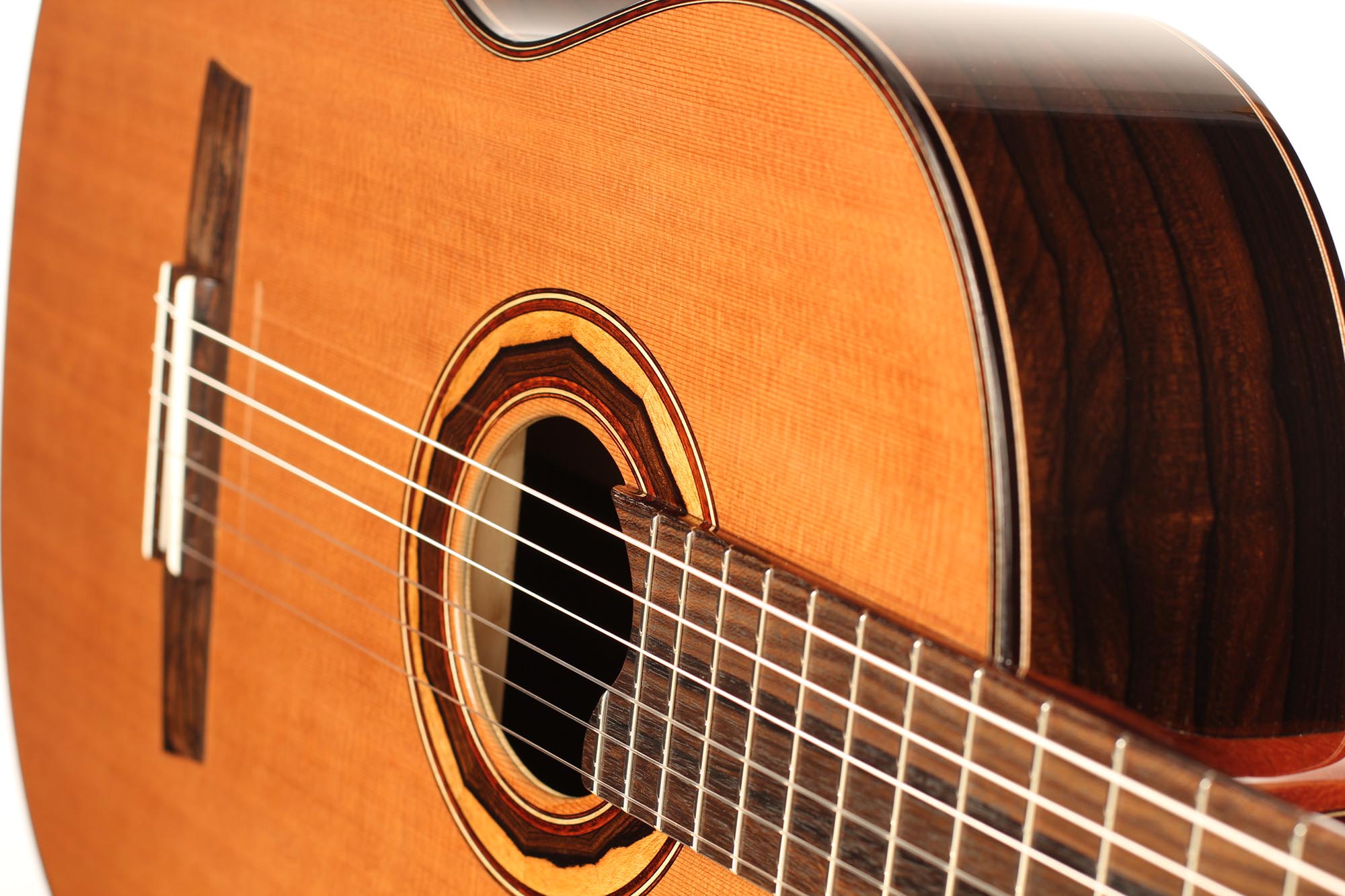 Back and sides are manufactured of finest ziricote and the top is made of excellent cedar. Along with the thin cedar top the 1a Doubletop achieves a very good response with full sound and good separation. This guitar satisfies highest demands, it is recommended for conscious players and can completely unfold, especially in slow and carried pieces.