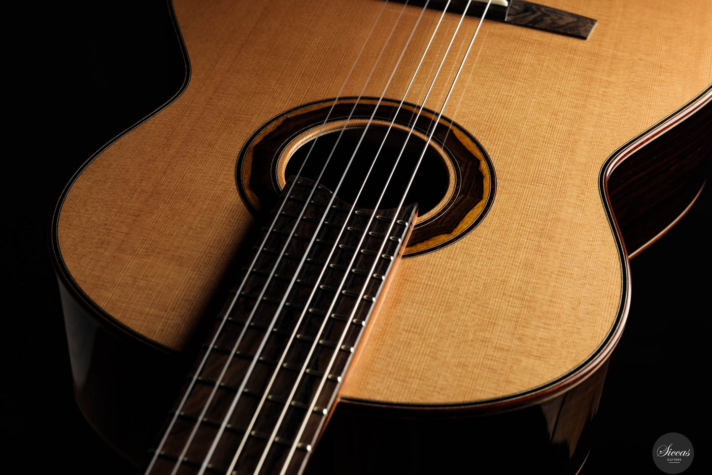 The classical guitar, with its soft nylon strings and characteristic timbre, has become a symbol of chamber music, Spanish tradition, and concert repertoire. Its modern form was shaped by Antonio de Torres in the 19th century, setting the standard for the body, fan bracing, and the 65-centimeter scale length that are still used today. Instruments in this category open up a rich palette from the refined Romantic miniatures of Tárrega to the majestic concertos of Rodrigo. Here you will find guitars that preserve historical continuity and at the same time inspire new interpretations.