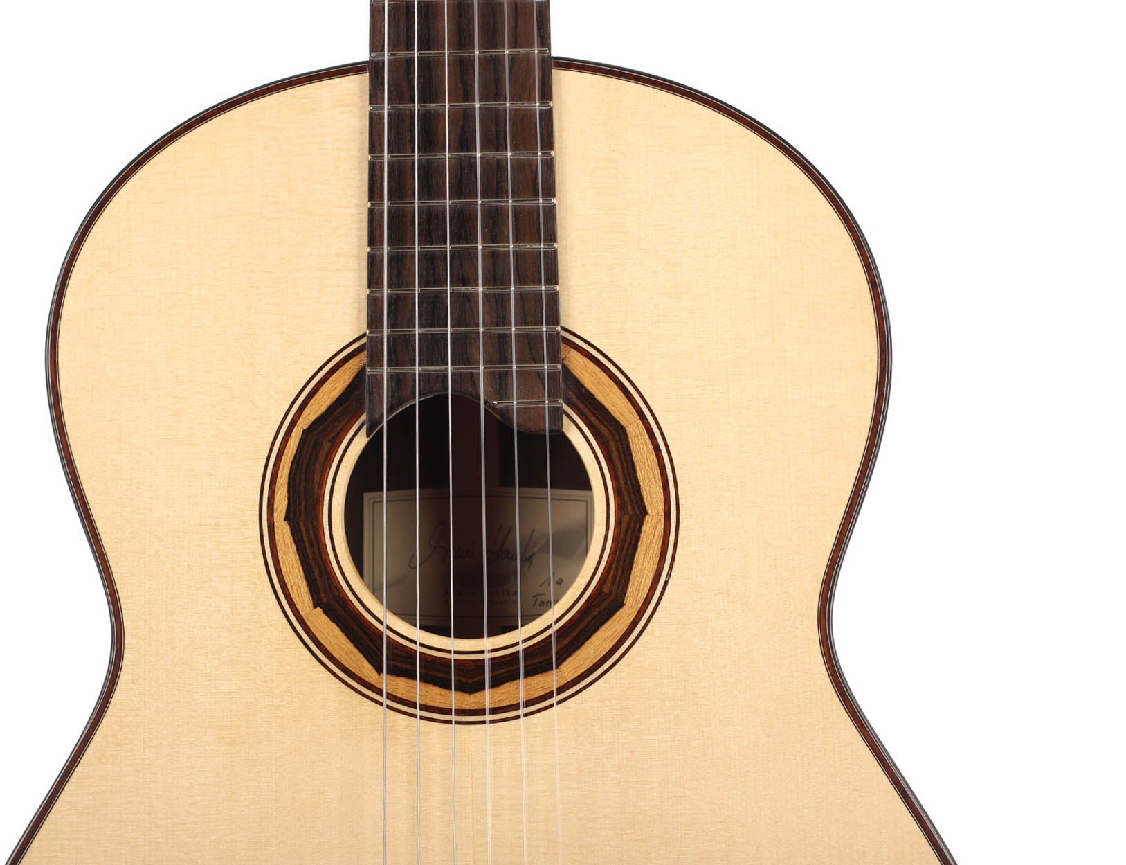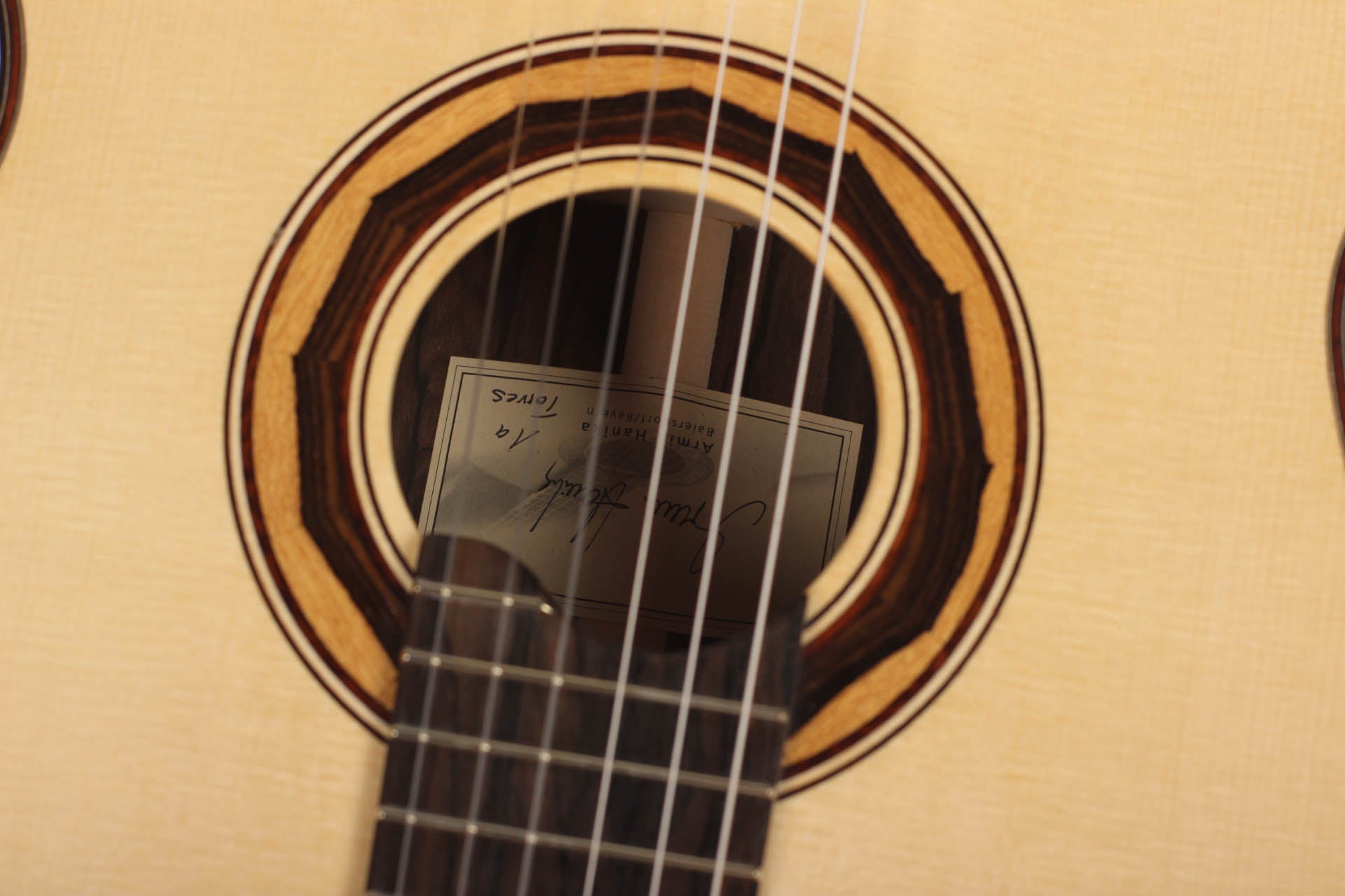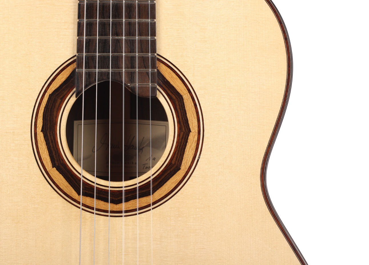 Back and sides are manufactured of finest ziricote and the top is made of excellent spruce. Along with the thin spruce top the 1a Torres achieves a very good response with full sound and good separation. This guitar satisfies highest demands; it is recommended for conscious players and can completely unfold especially in slow and carried pieces.