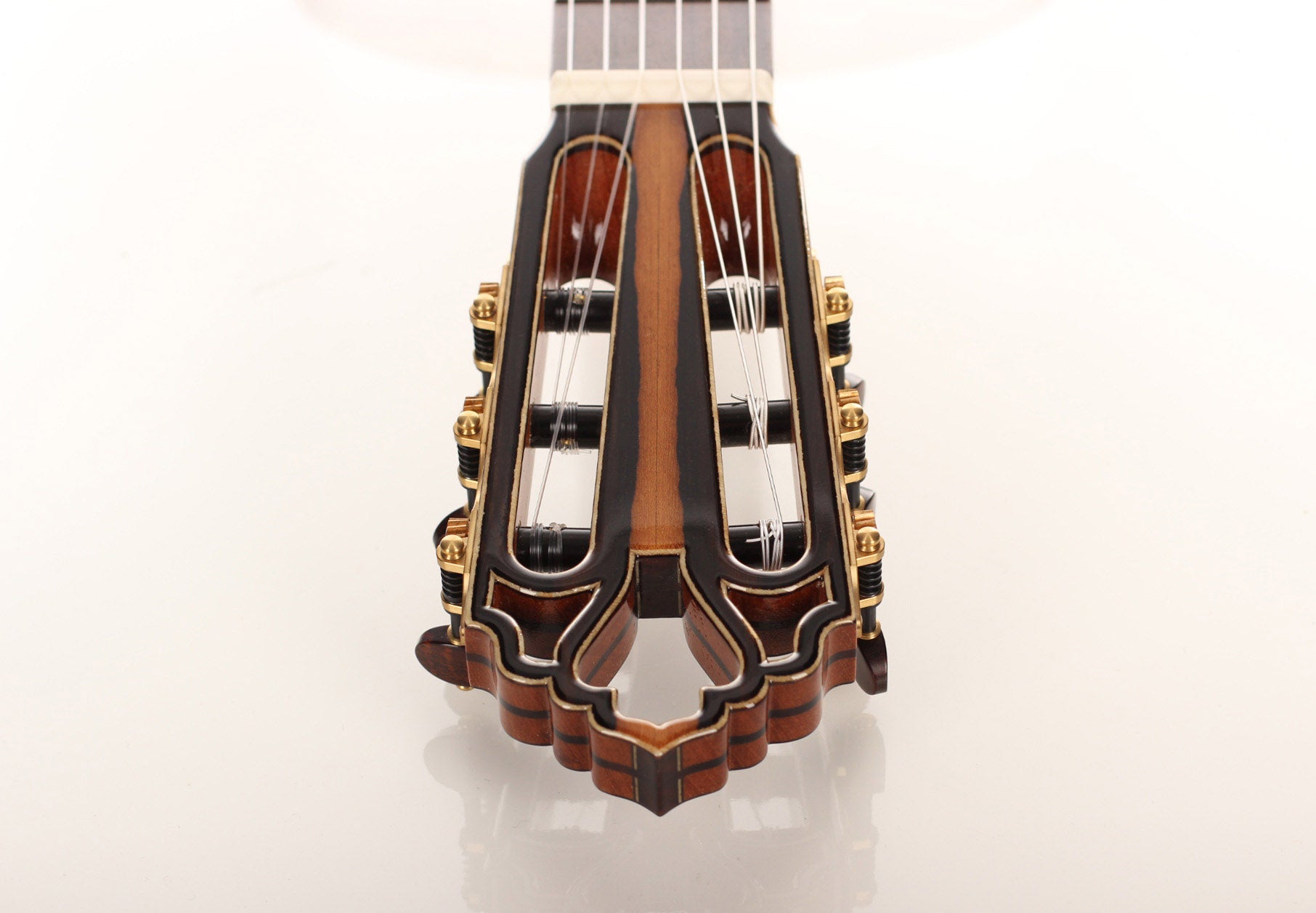 The classical guitar, with its soft nylon strings and characteristic timbre, has become a symbol of chamber music, Spanish tradition, and concert repertoire. Its modern form was shaped by Antonio de Torres in the 19th century, setting the standard for the body, fan bracing, and the 65-centimeter scale length that are still used today. Instruments in this category open up a rich palette from the refined Romantic miniatures of Tárrega to the majestic concertos of Rodrigo. Here you will find guitars that preserve historical continuity and at the same time inspire new interpretations.Look all products of the collection -