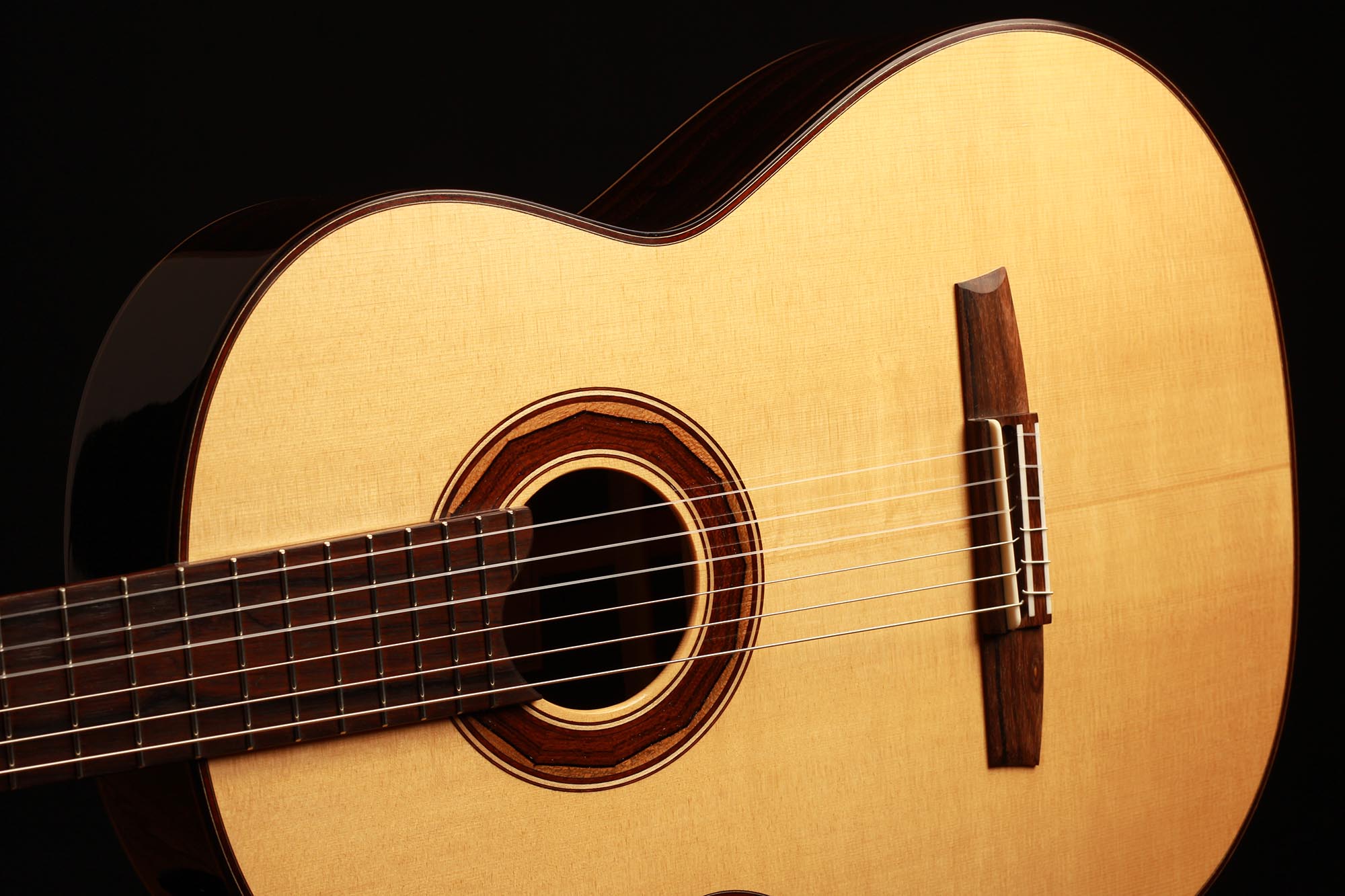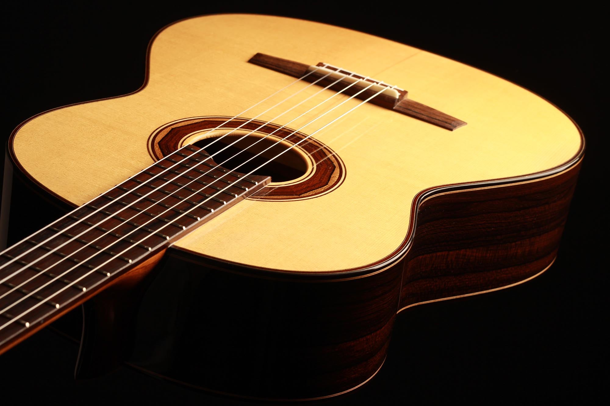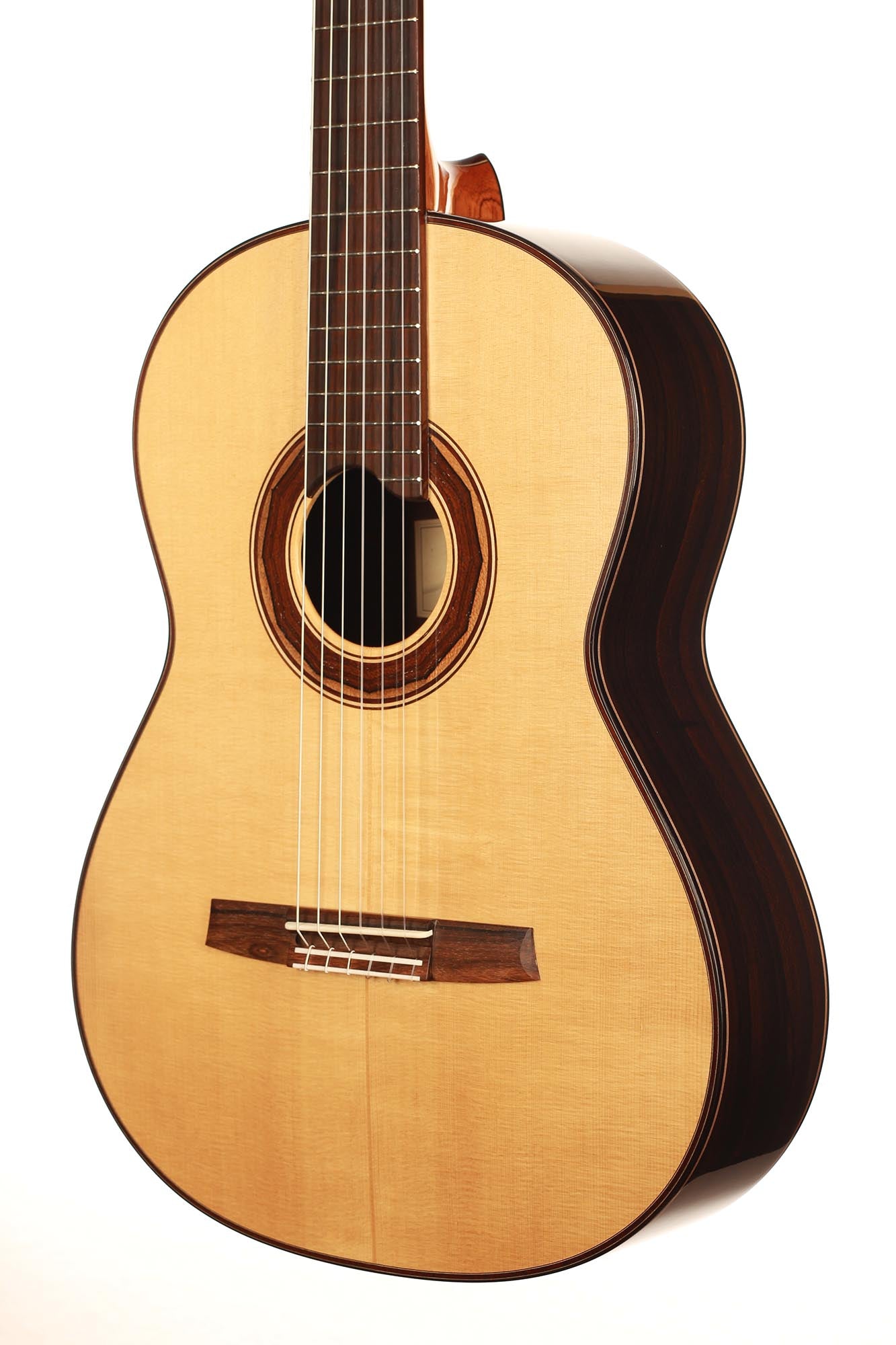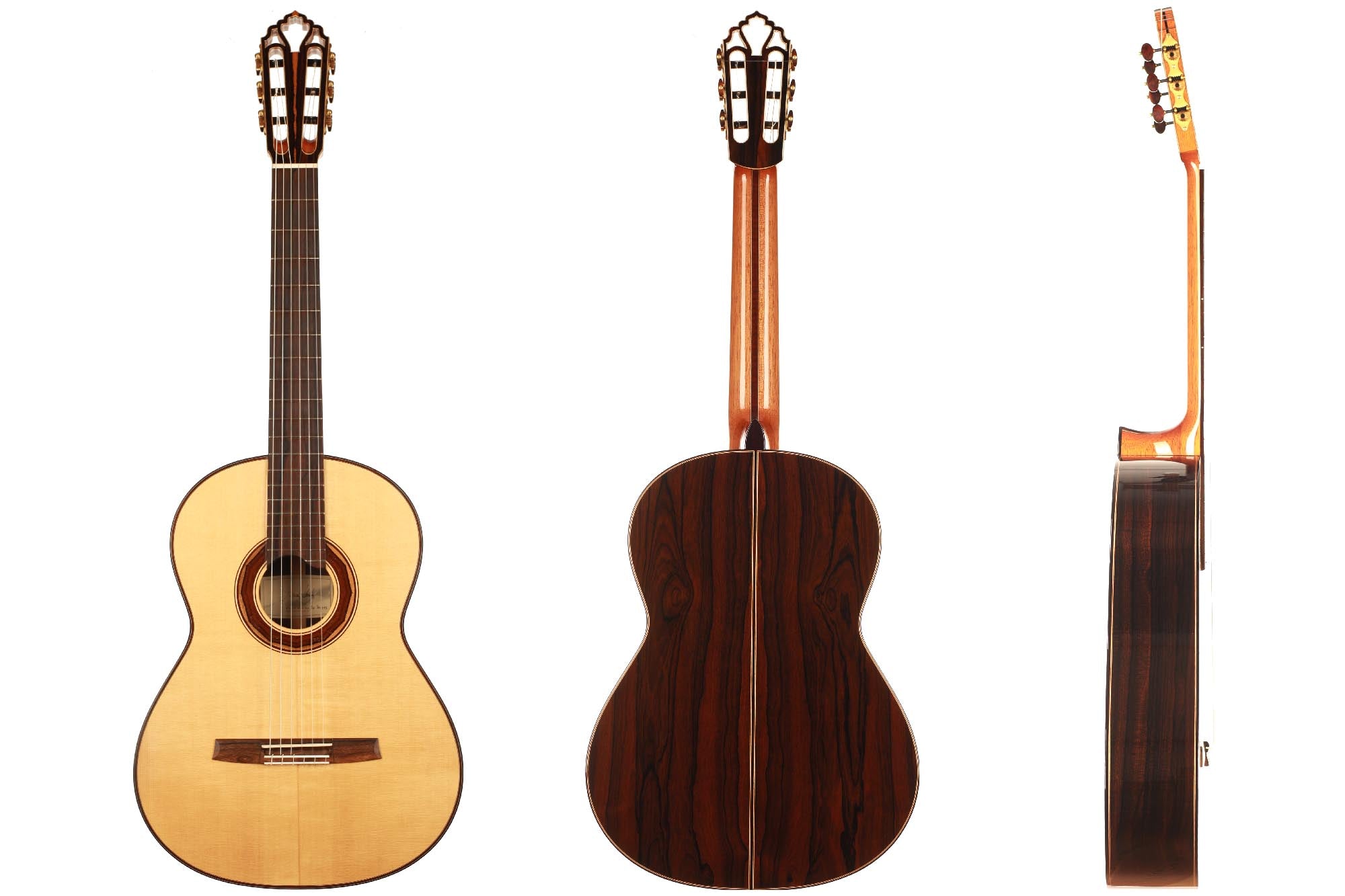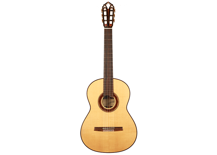 This guitar is made of high-quality massive tone woods and has a high gloss French polish finish on the top. The body has a gloss finish with a UV-curing acrylic lacquer. The Klaus Scheller machine heads, the cedro neck reinforced with best hardwood, the quality ebony fingerboard and 3-ply rosewood-maple-ziricote headstock shows the high quality of the 1a Torres. It is built without any protected woods and therefore CITES-Free.