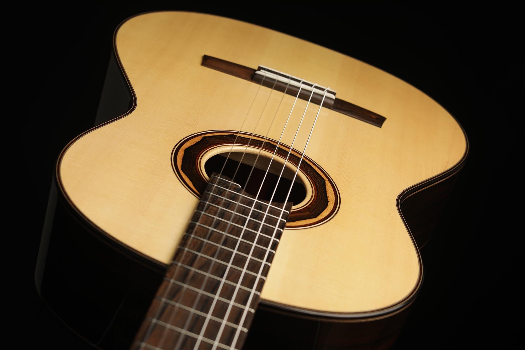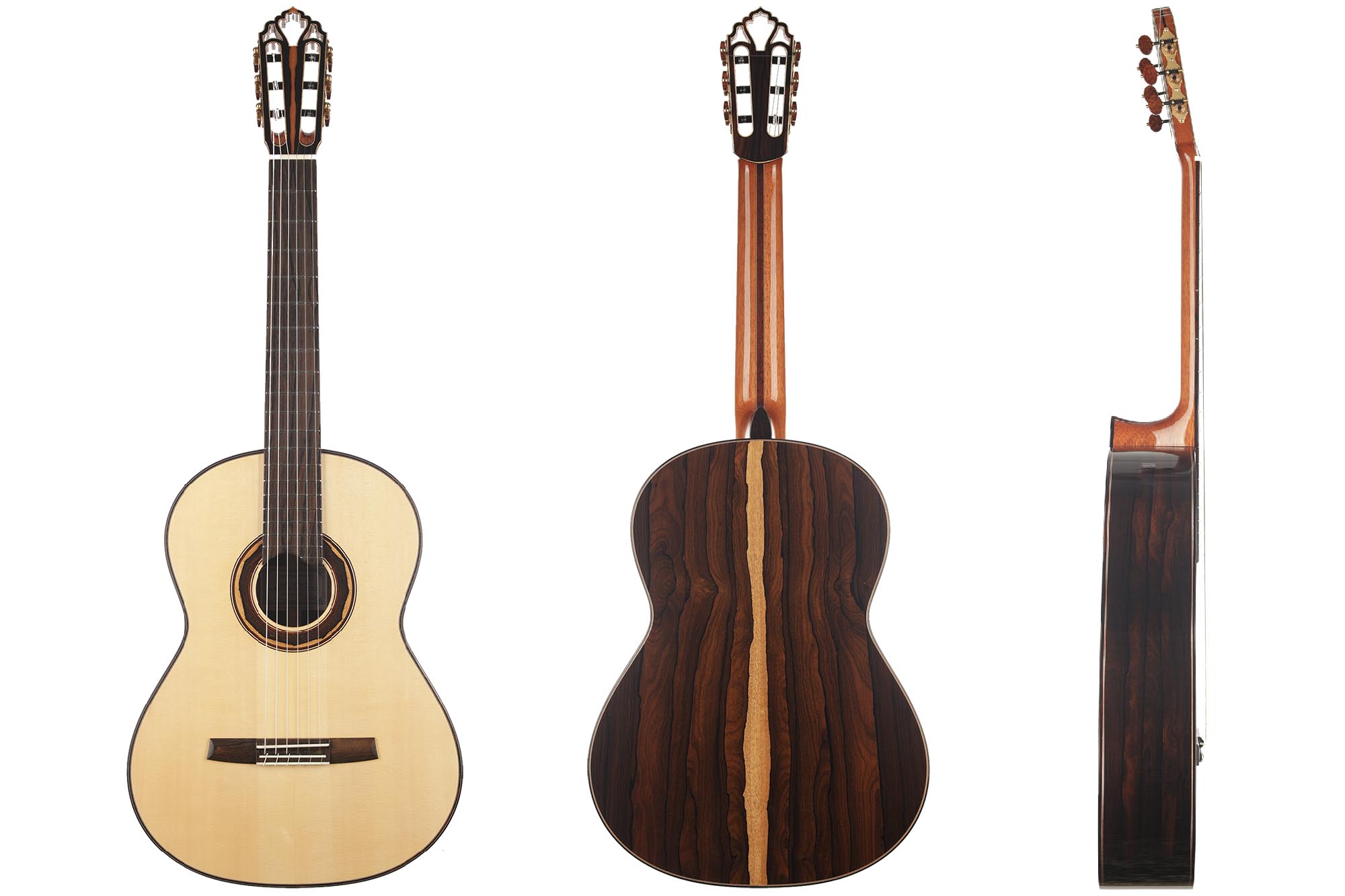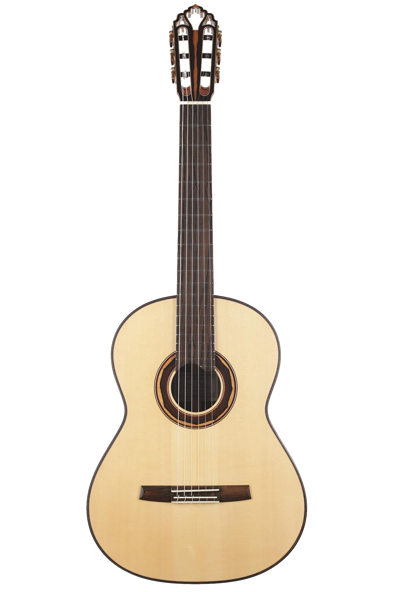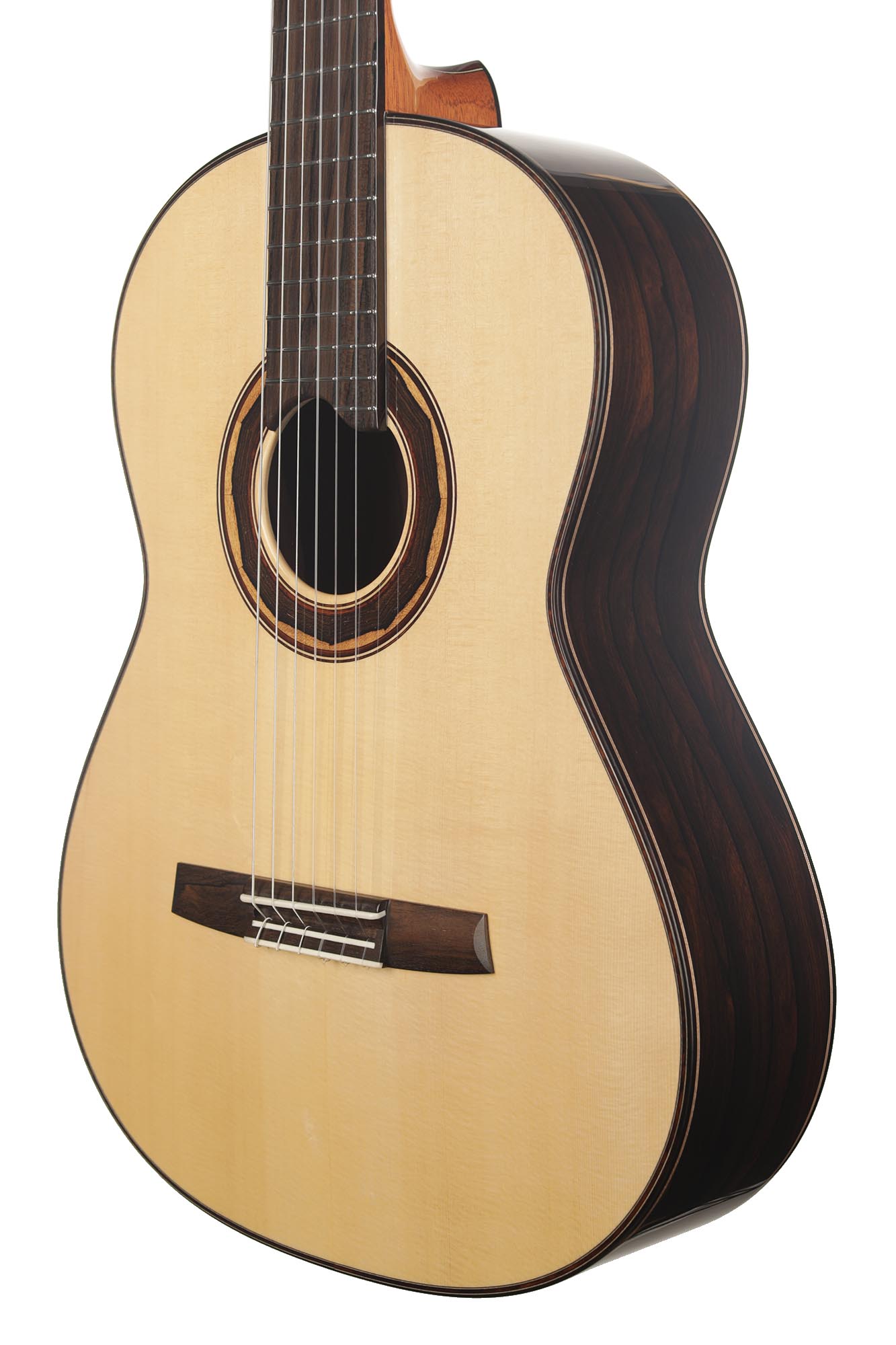 The guitar is made of high-quality massive tonewoods and has a high gloss French polish finish on the top. The body has a gloss finish with UV-curing acrylic lacquer. The Klaus Scheller machine heads with bushes and snakewood pegs, the Cedro neck reinforced with the best hardwood, the quality ebony fingerboard, and 3-ply rosewood-maple-ziricote headstock shows the high quality of the 1a Torres. A CCCase carbon case included. This guitar is CITES-free (CF).