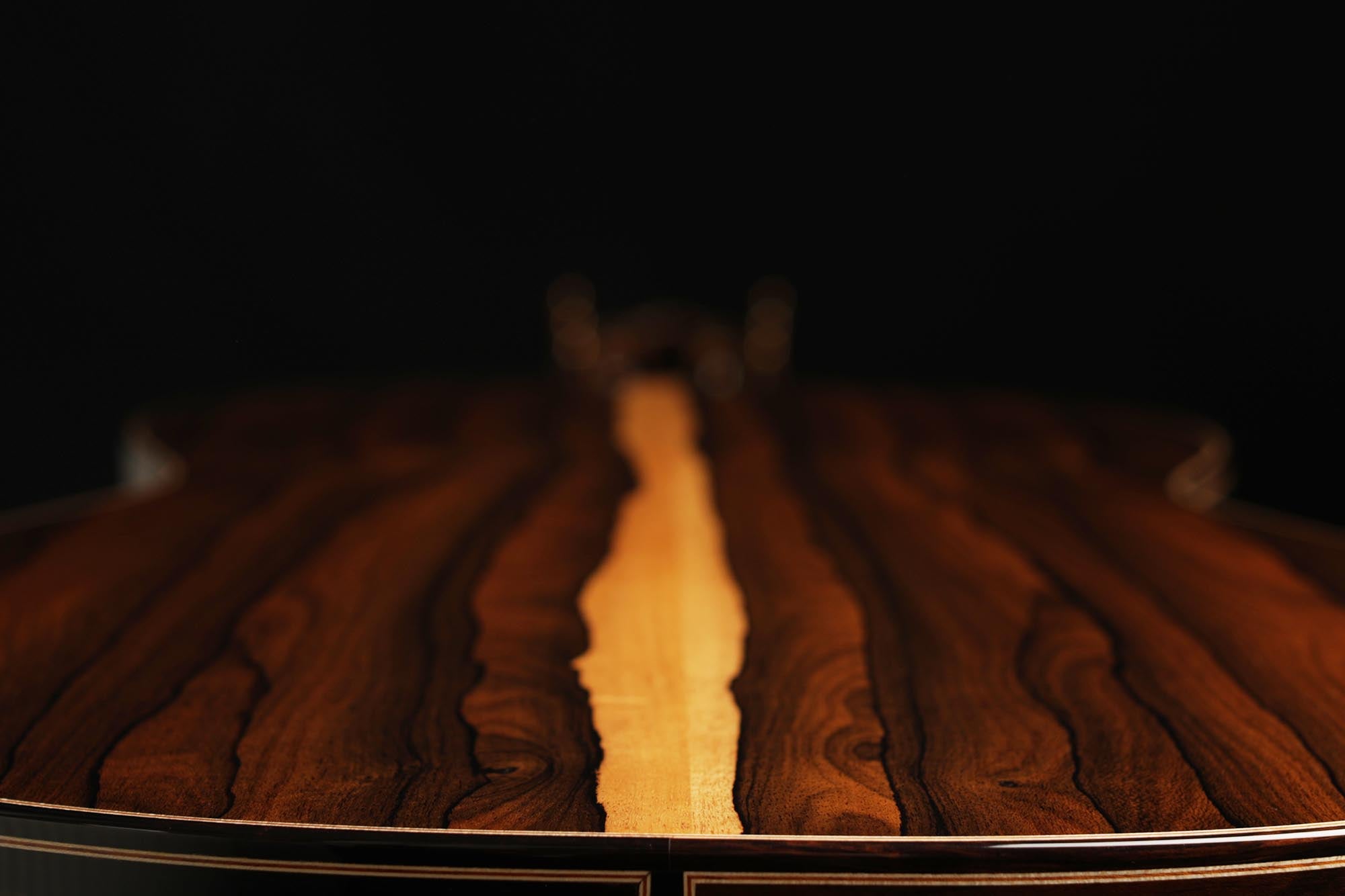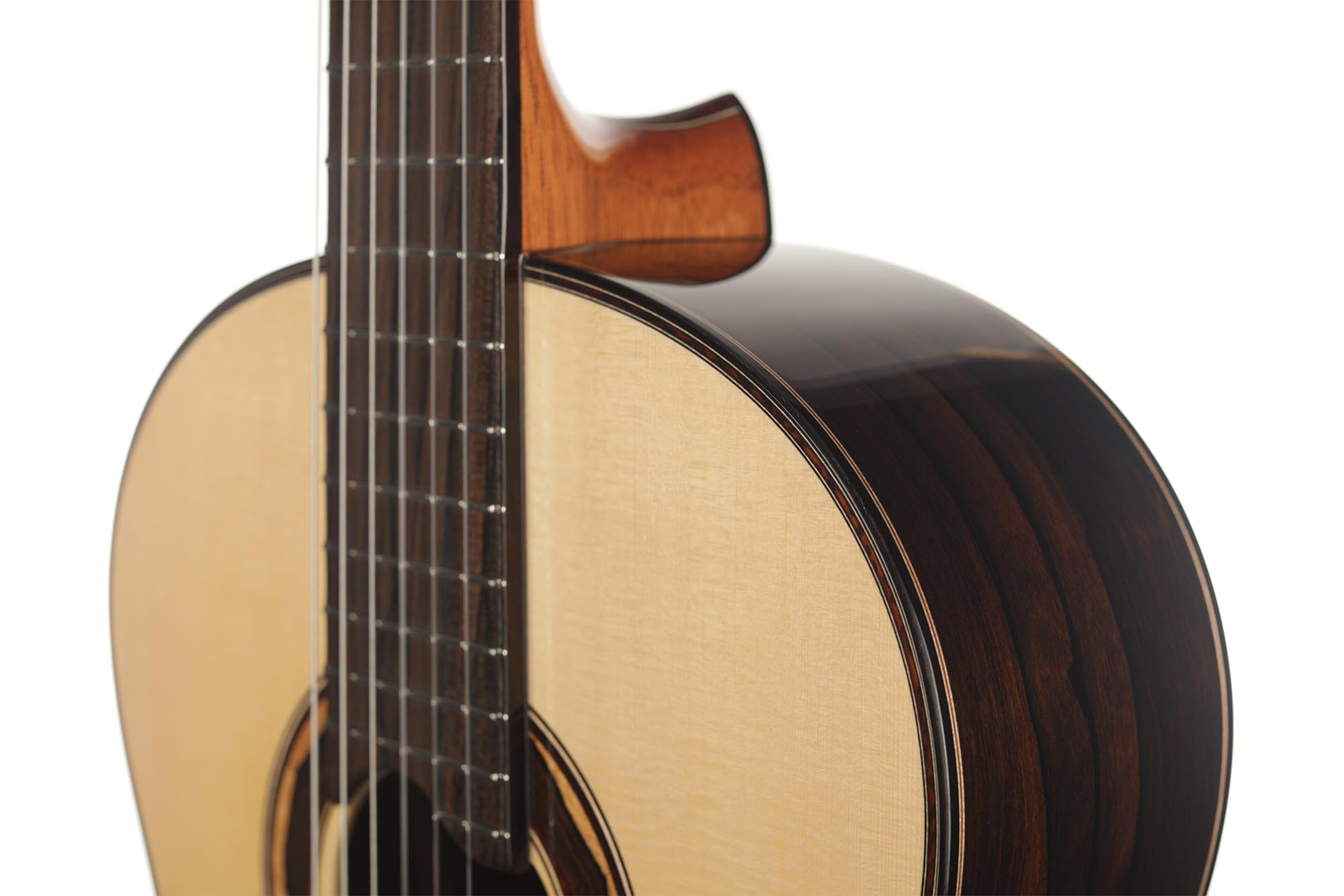 The 1a models are Armin Hanika’s most beautiful and sophisticated models. Back and sides of this 1a Torres are manufactured of finest Ziricote and the top is made of excellent spruce. Along with the thin spruce top, the 1a Torres achieves a very good response with full sound and good separation. This guitar satisfies the highest demands; it is recommended for conscious players and can completely unfold especially in slow and carried pieces.