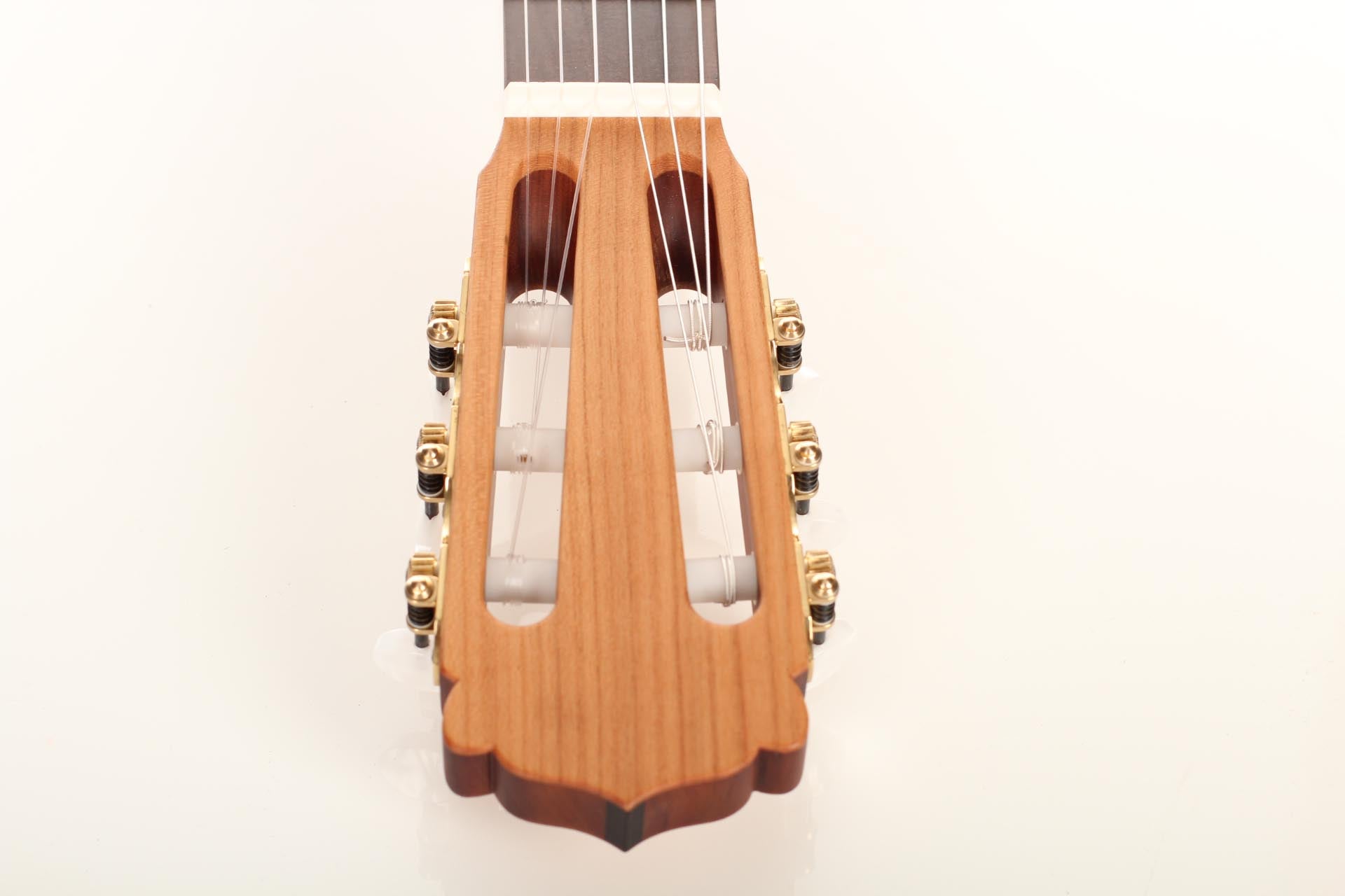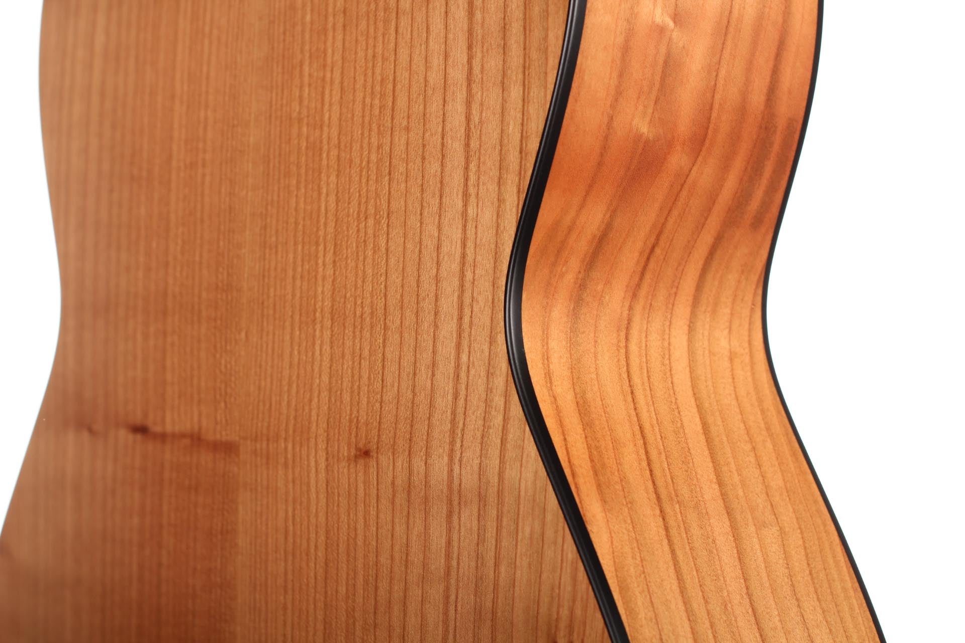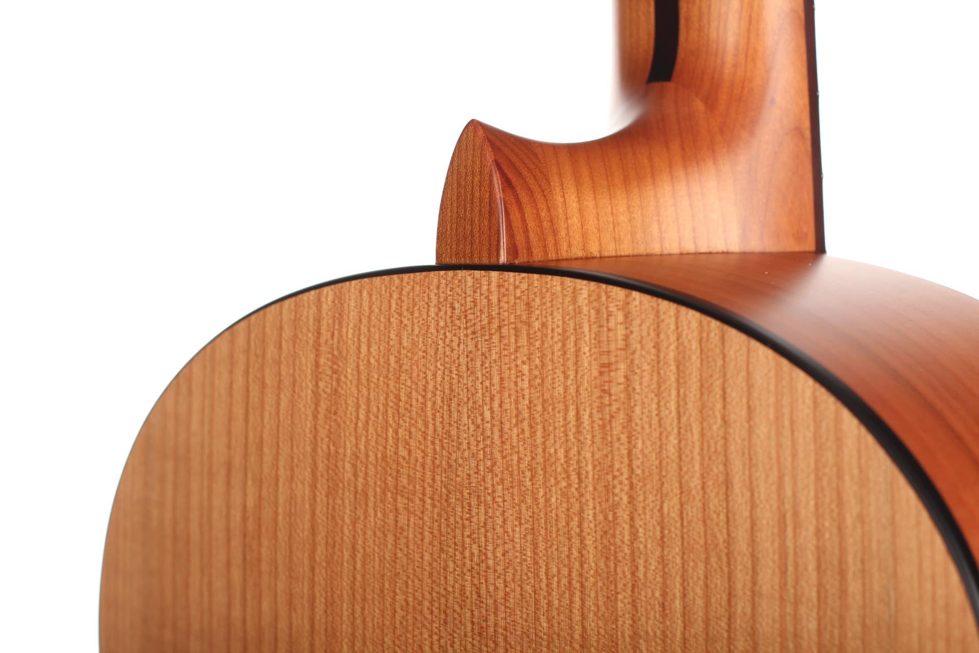 The guitar is made of high quality massive tone woods and has a high gloss finish on back and sides. The Rubner machine heads, the cherry wood neck reinforced with best hardwood, the quality fingerboard show the high quality of 50 KF N. The body has a gloss finish with a UV-curing acrylic lacquer and the top has a matt finish. This guitar is Cites-free (CF).