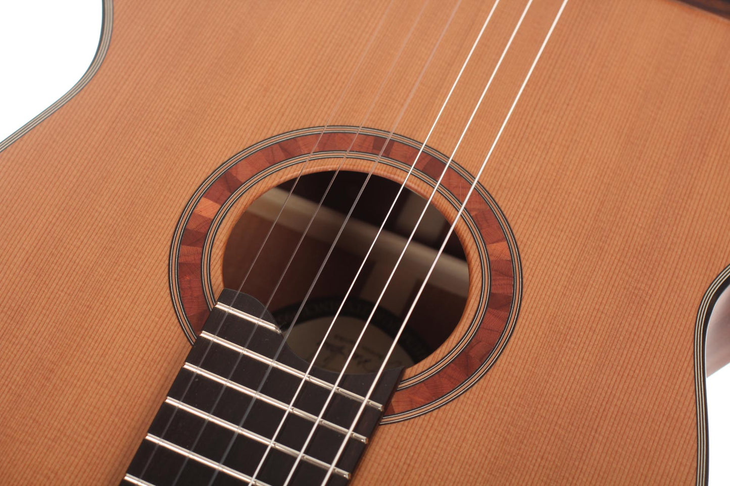 Price: 5.990 €Sale price 5.990 € Price:Unit price / per Tax free (0% DE)0 €Save: -5.990 €Luthier: Elvis PajaresConstruction Year: 2025Construction Type: Double TopTop: CedarBack and Sides: Indian rosewoodSoundboard Finish: French polishBody Finish: French polishAir Body Frequency: F / F sharpWeight (g): 1415Tuner: Kris BarnettCondition: New -