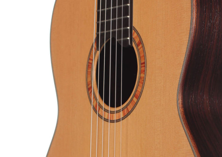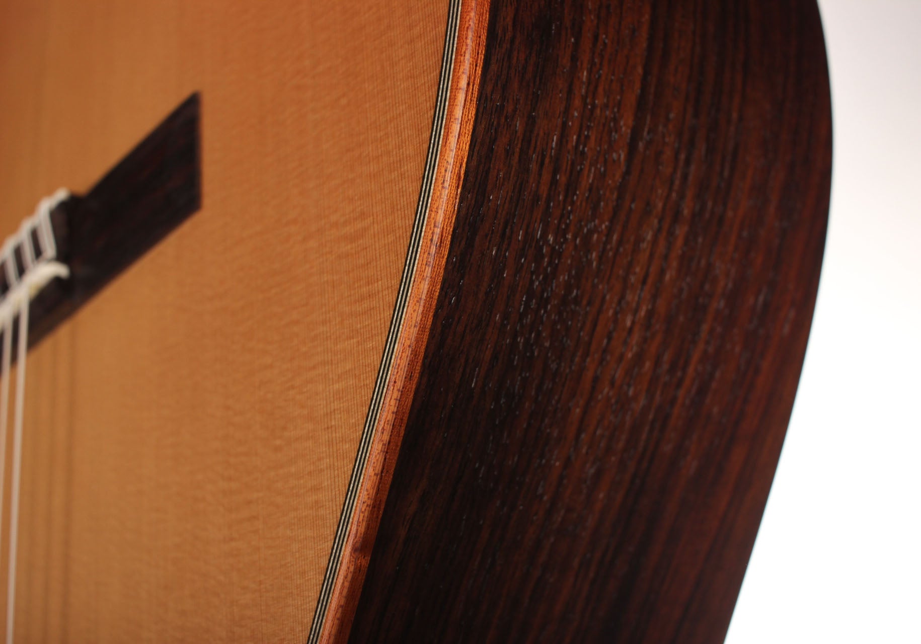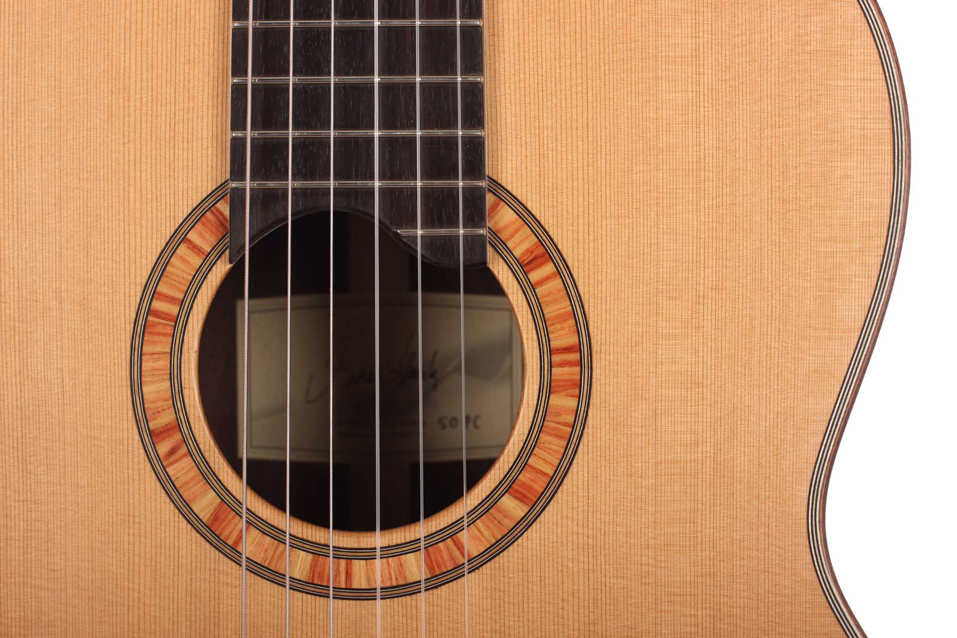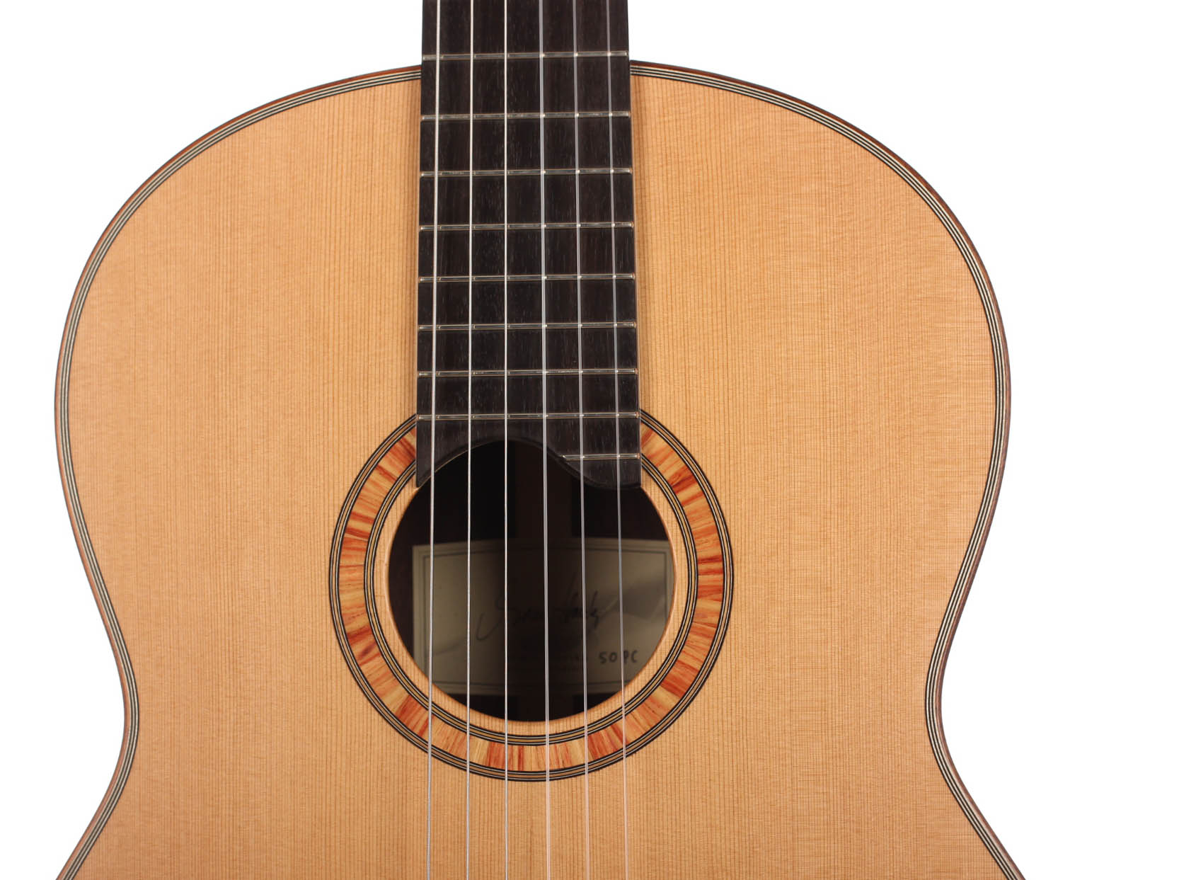Back and sides of this guitar are made of high quality East Indian rosewood and the top is made of excellent cedar. Rosewood is considered one of the most universal tone woods for guitars, along with the thin spruce top the 50 PC gets a very good attack with full sound and a separated sharp sound. Response and sustain in of this guitar are perfectly balanced, what makes it the perfect instrument for many different type of players.