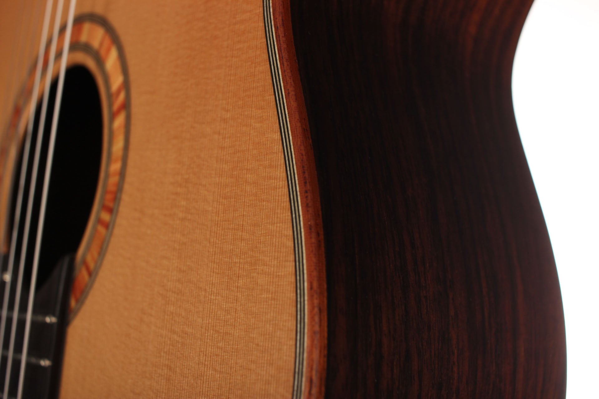 Price: 5.990 €Sale price 5.990 € Price:Unit price / per Tax free (0% DE)0 €Save: -5.990 €Luthier: Elvis PajaresConstruction Year: 2025Construction Type: Double TopTop: CedarBack and Sides: Indian rosewoodSoundboard Finish: French polishBody Finish: French polishAir Body Frequency: F / F sharpWeight (g): 1415Tuner: Kris BarnettCondition: New -
