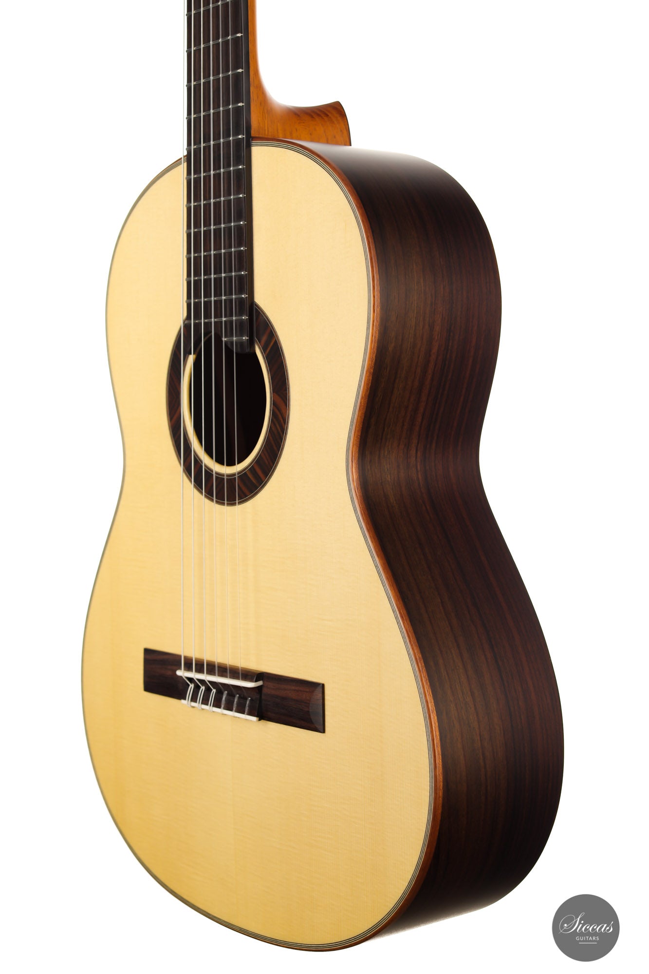The classical guitar, with its soft nylon strings and characteristic timbre, has become a symbol of chamber music, Spanish tradition, and concert repertoire. Its modern form was shaped by Antonio de Torres in the 19th century, setting the standard for the body, fan bracing, and the 65-centimeter scale length that are still used today. Instruments in this category open up a rich palette from the refined Romantic miniatures of Tárrega to the majestic concertos of Rodrigo. Here you will find guitars that preserve historical continuity and at the same time inspire new interpretations.